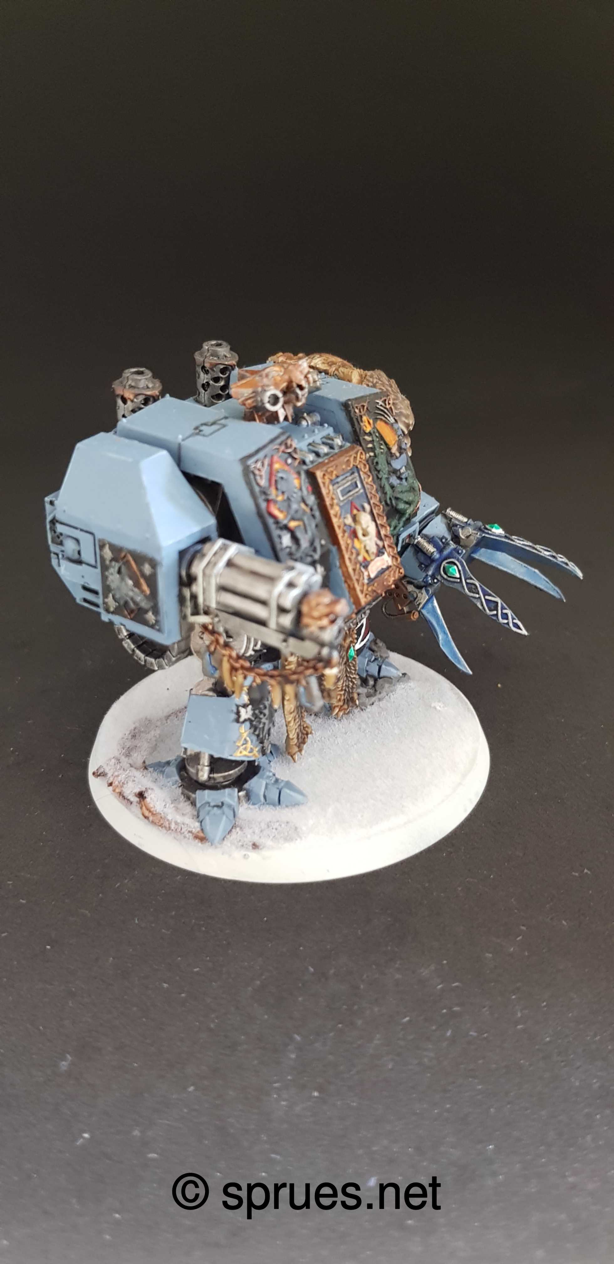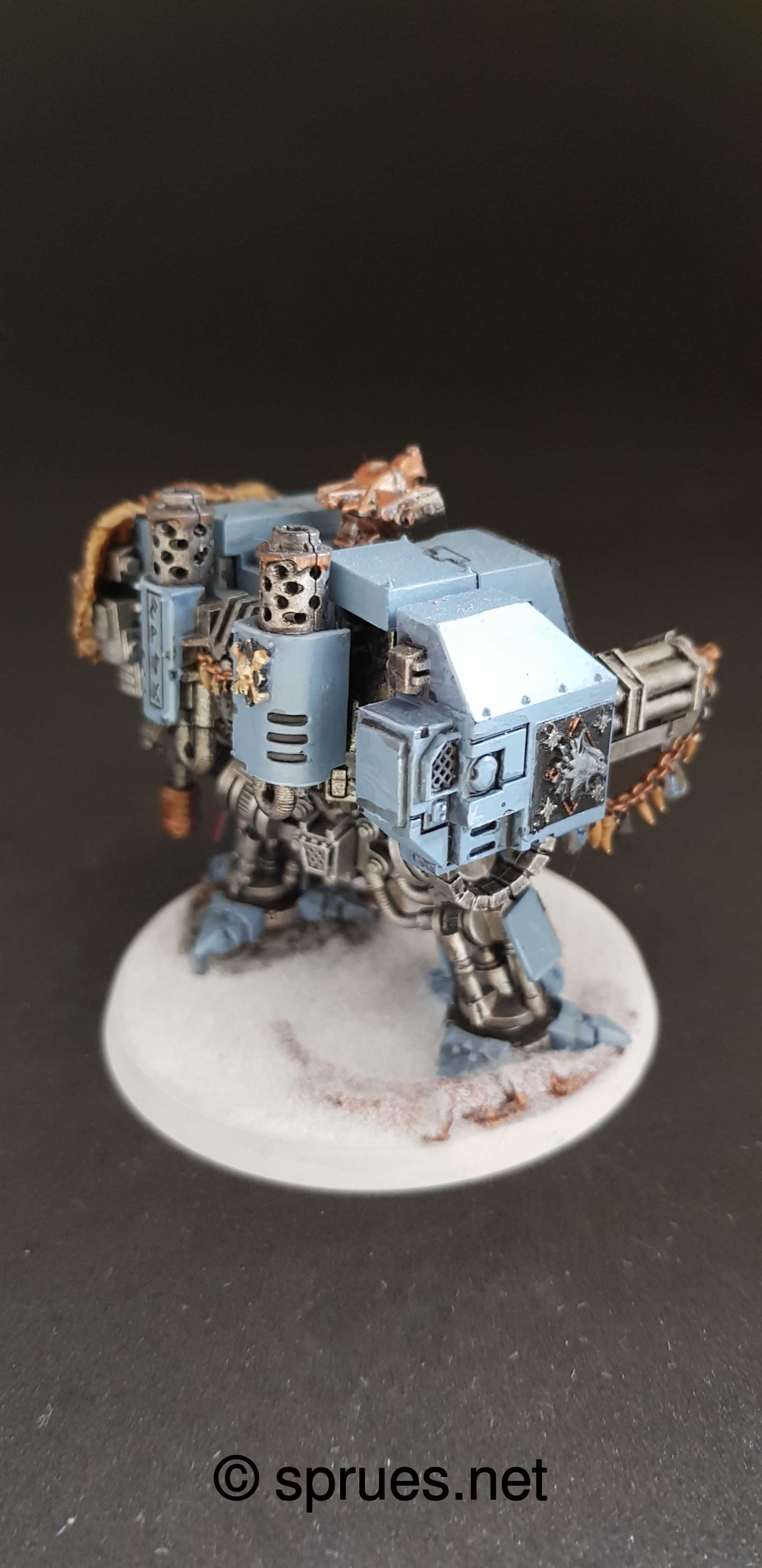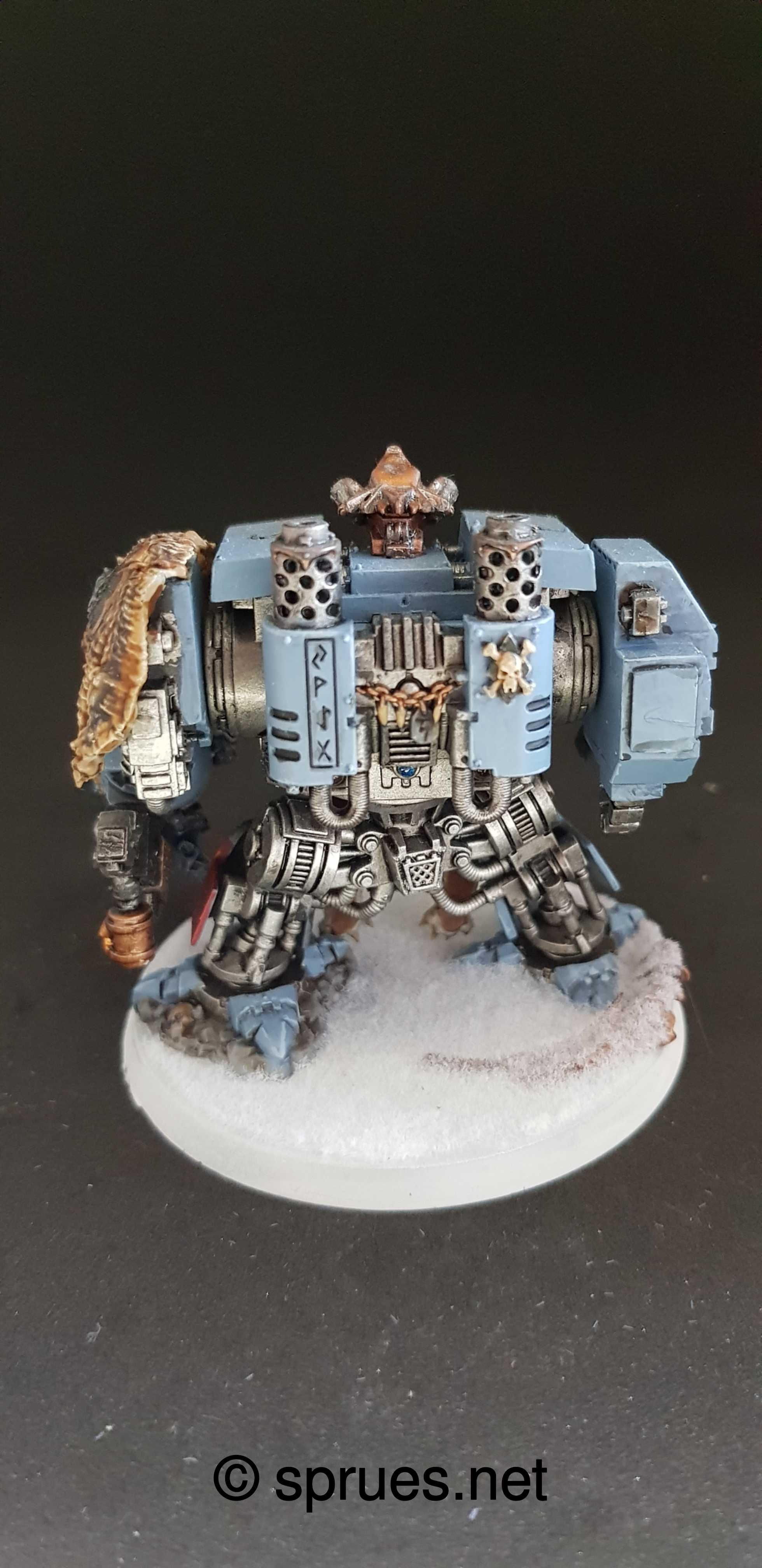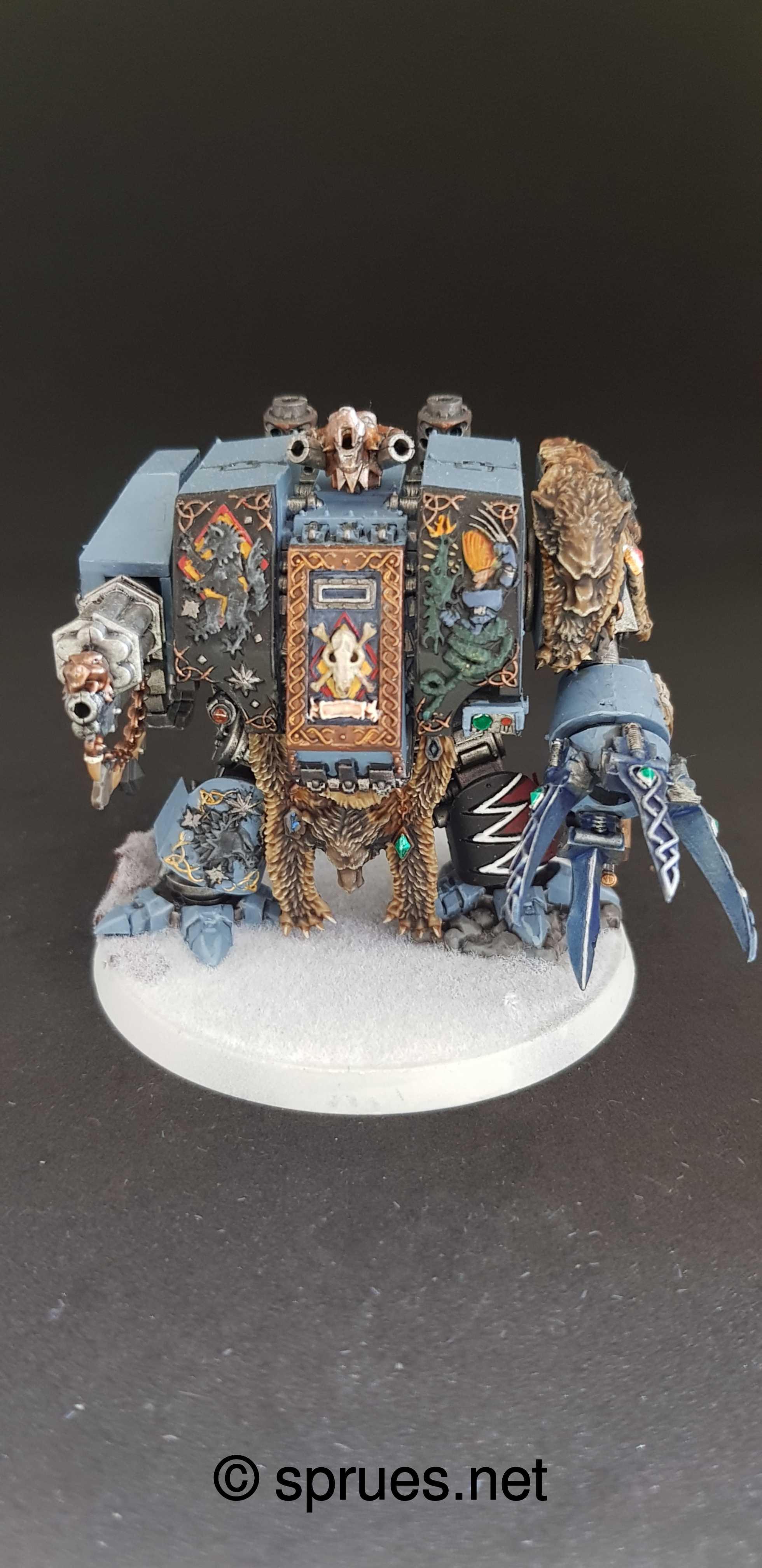 Bjorn the Fell-Handed was painted over two months. The color scheme and also his weapons were selected based on the Space Wolves Codex from 7. Edition. Sadly the sensor on his right arm was removed during the modeling process. However painting the wolf, dragon and Space Wolf, including all the Gold and Silver details was really funny. Up to this point I thought painting bigger models is easier, related to the fact that they tend to contain less small details. At least the Dreadnought from #DeathCompany was simpler to paint - not Bjorn.