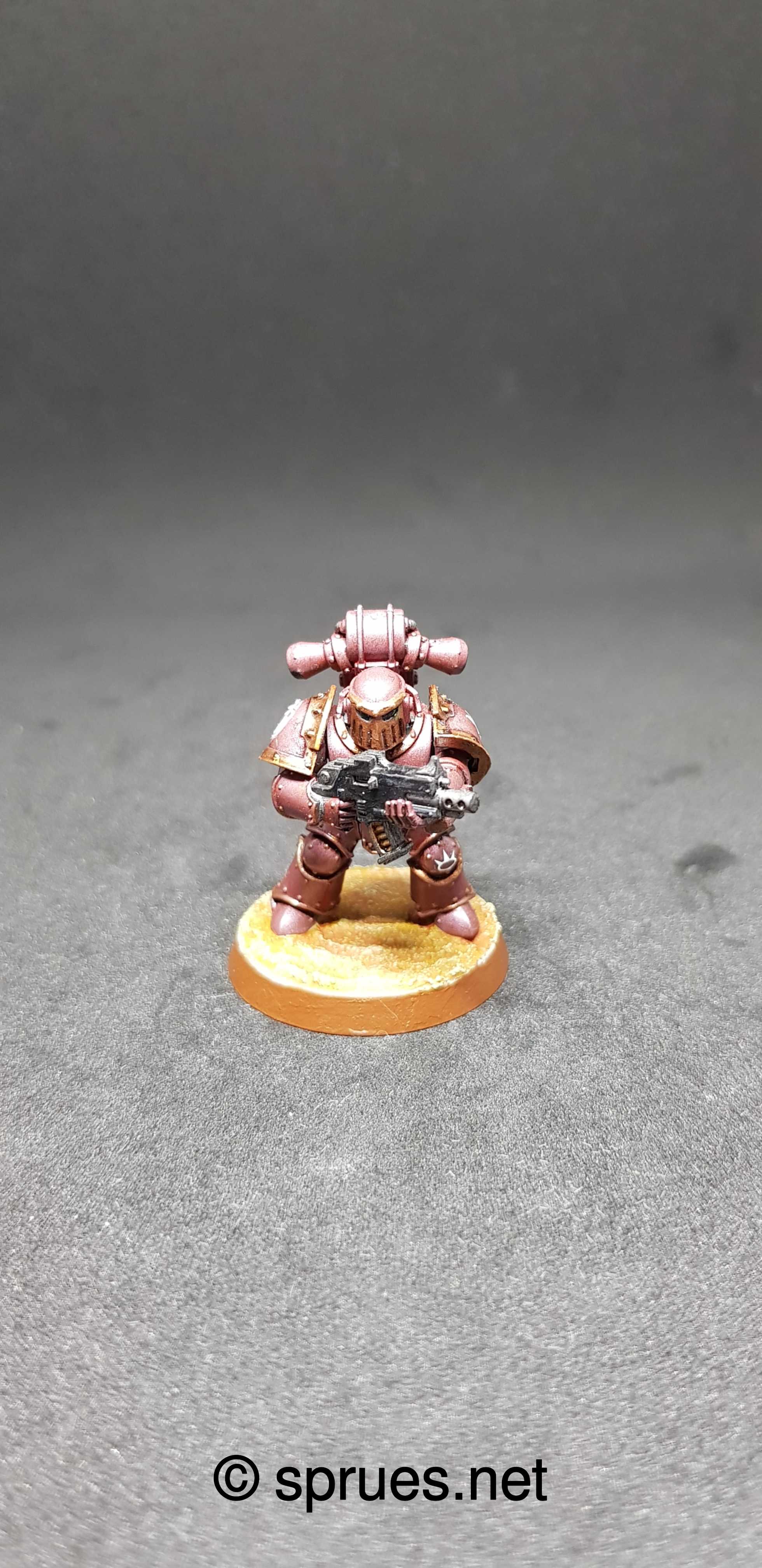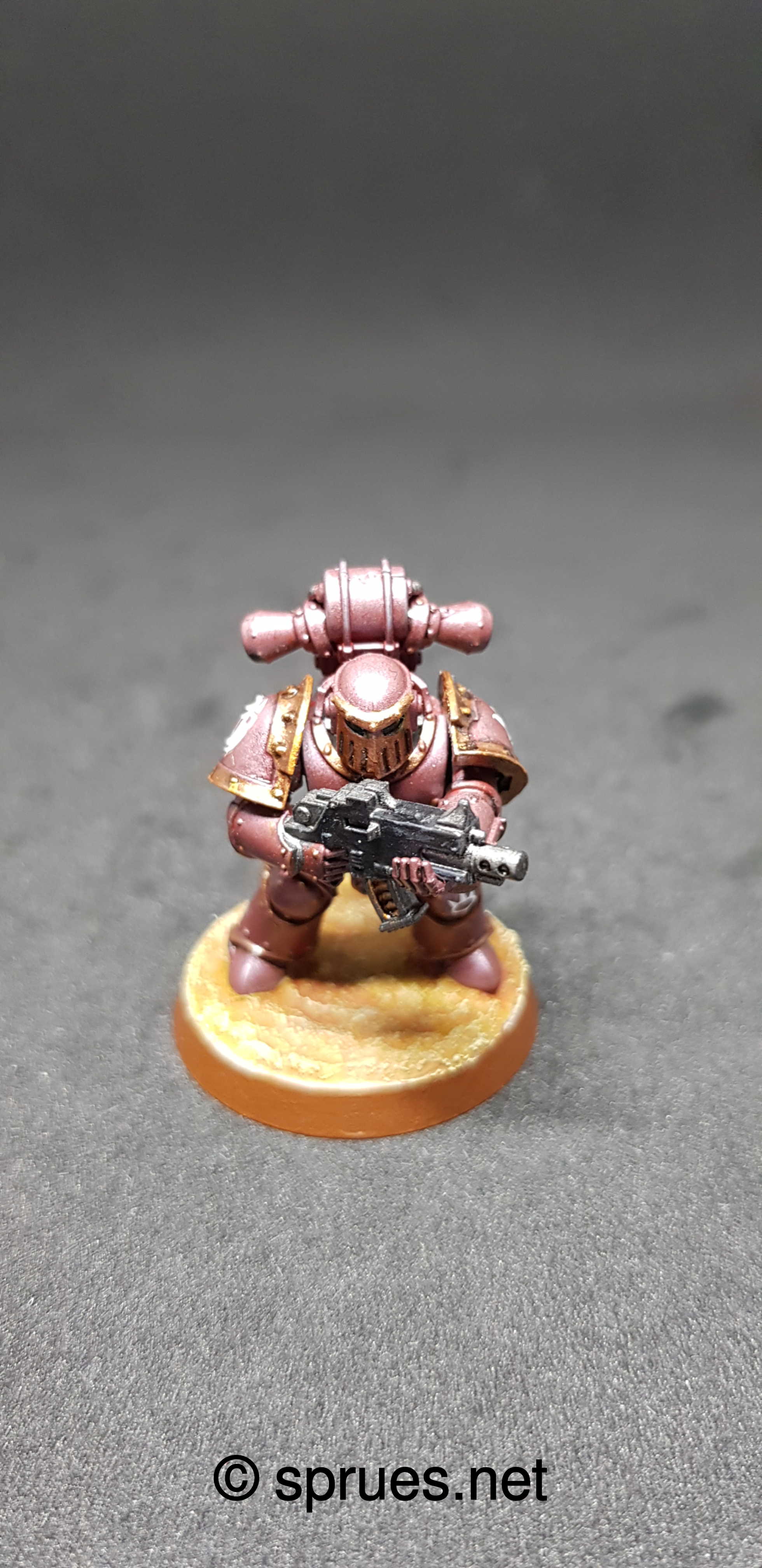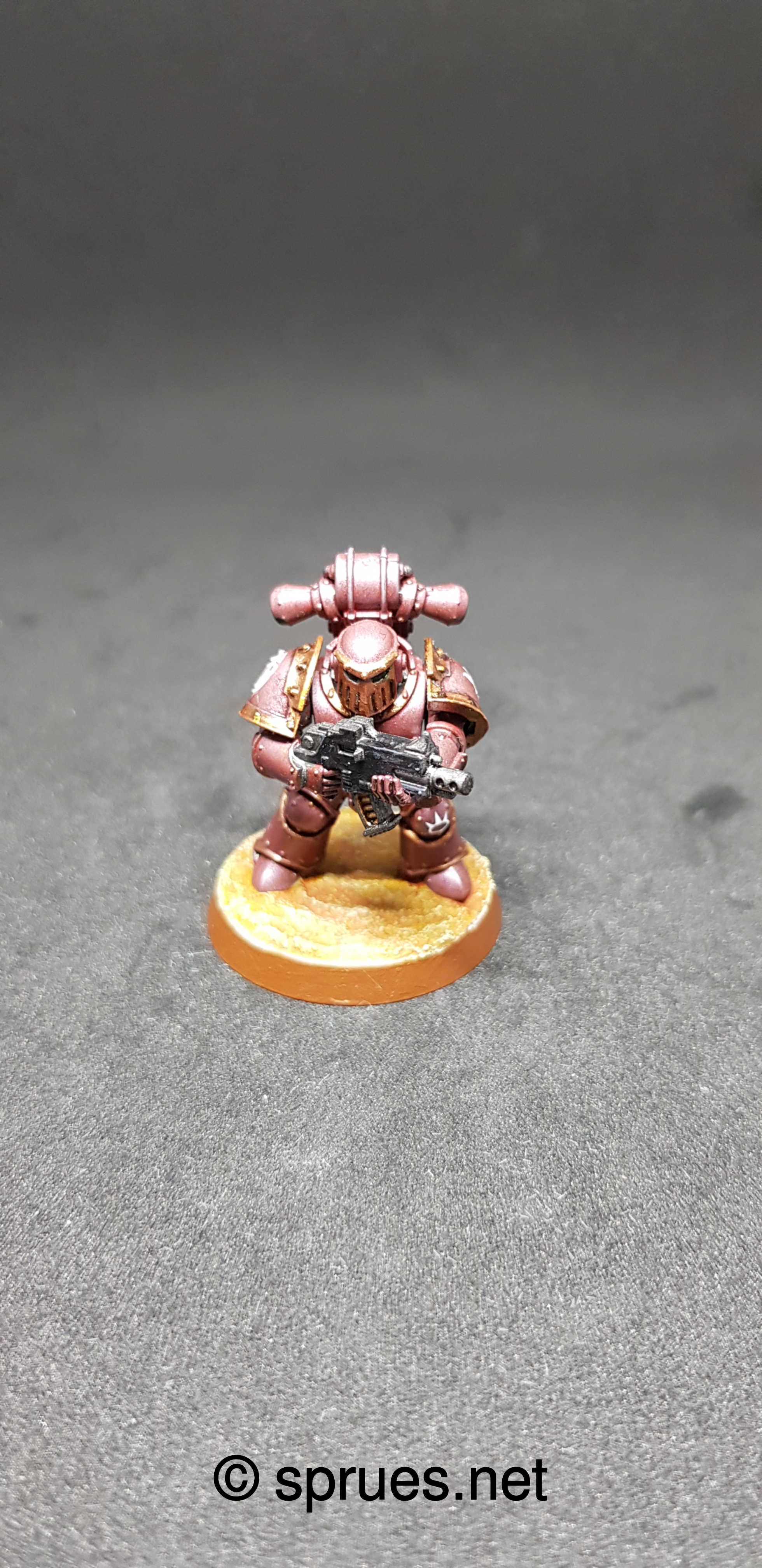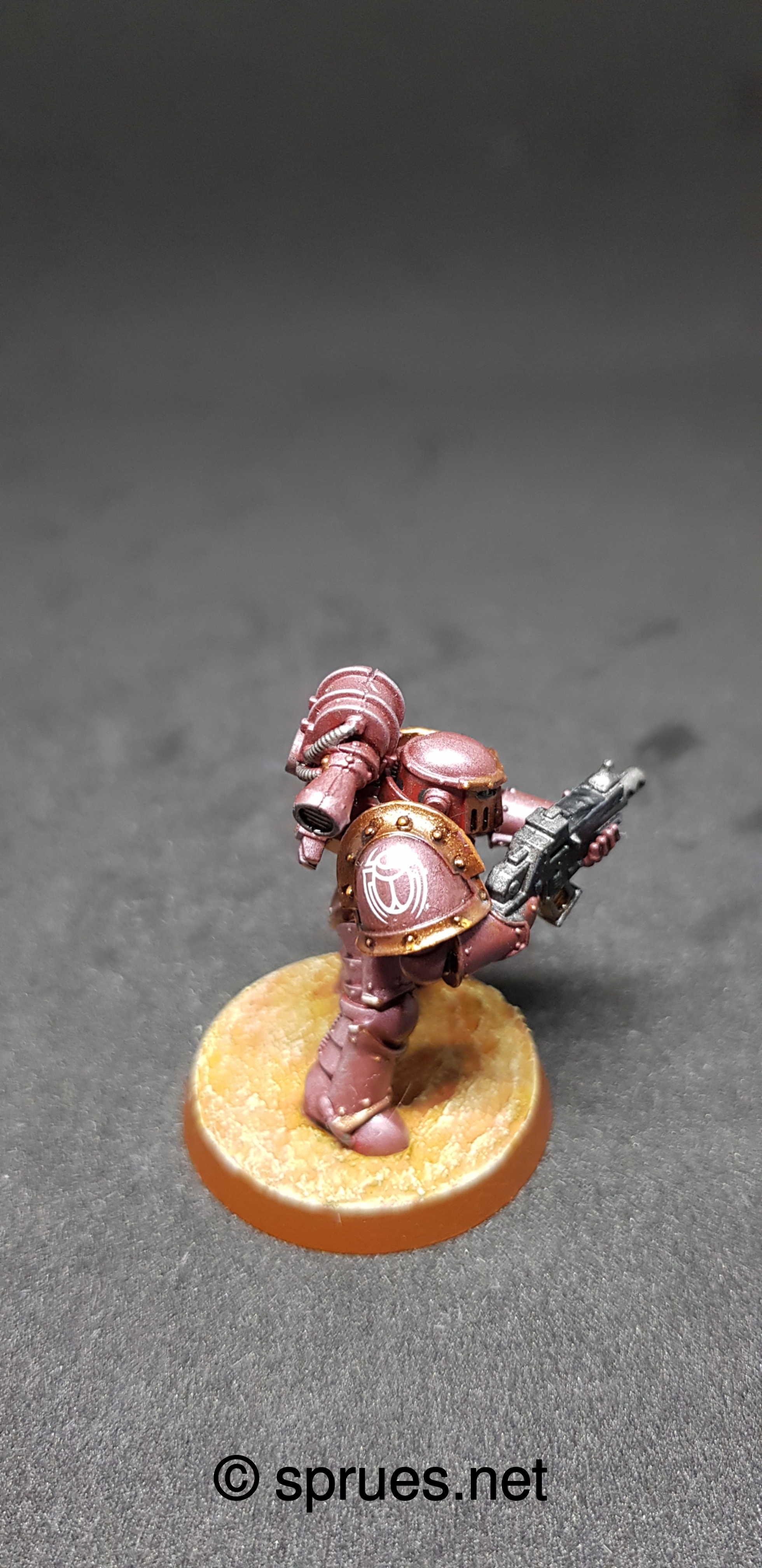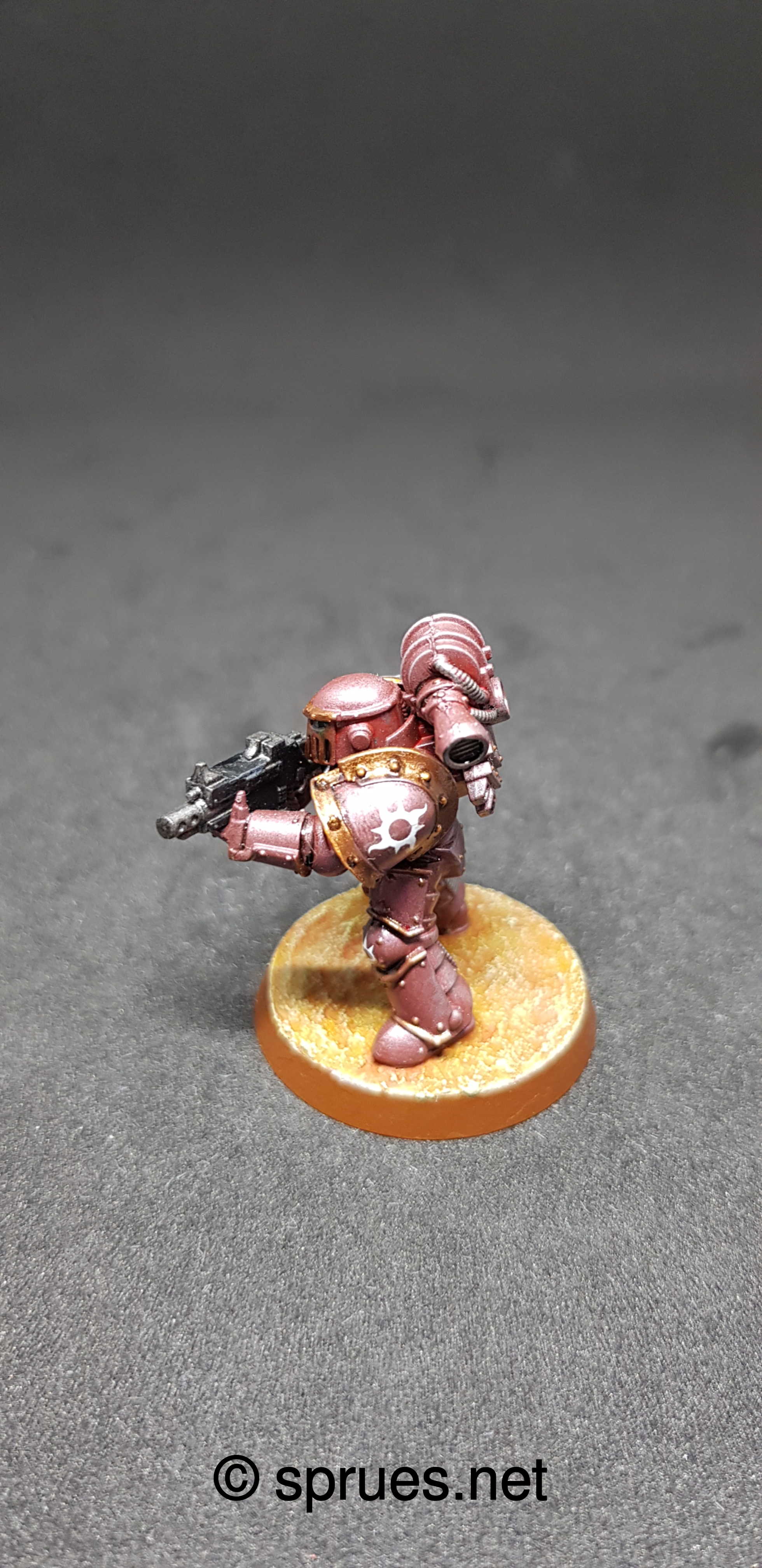 After Kurtha Seed's Legion Veteran Tatical Squad Rho I switch to Squad Sigma. They are really similar to Squad Rho, except from their bases. The basic idea, while Squad Rho is running for their lives on the surface of Calth, Squad Sigma displays a unit which already reach the underground. As they are seems to be more experienced, their armor is way more lettered with signs and scriptures. Also their left shoulder pads are altered with silver bolts. These bolts can also be seen on their legs.