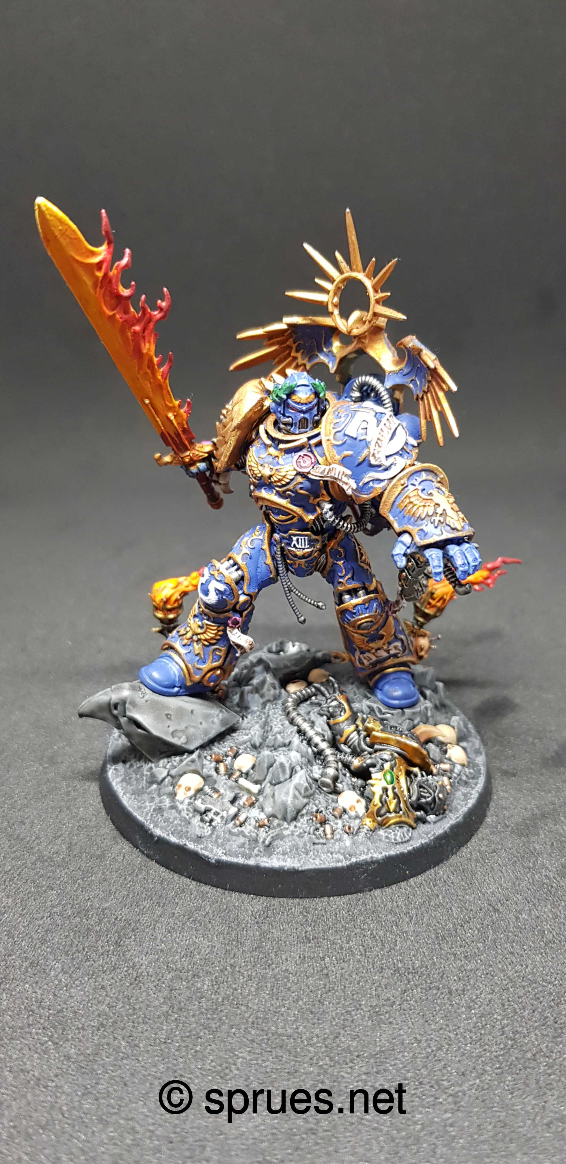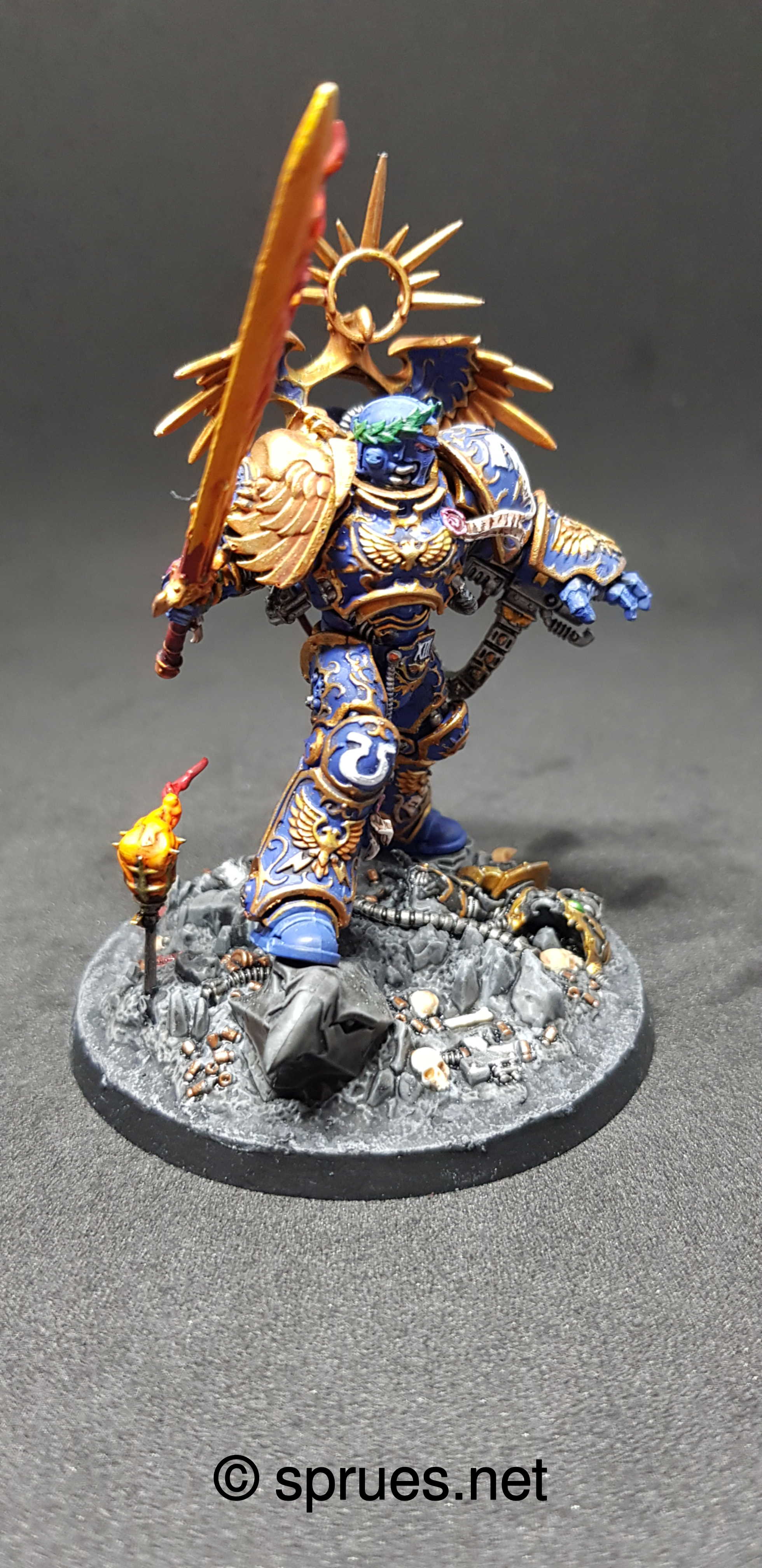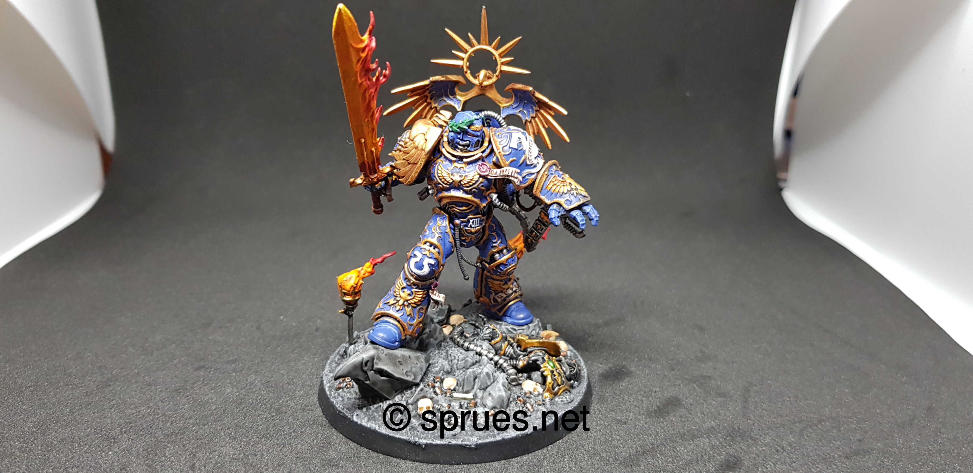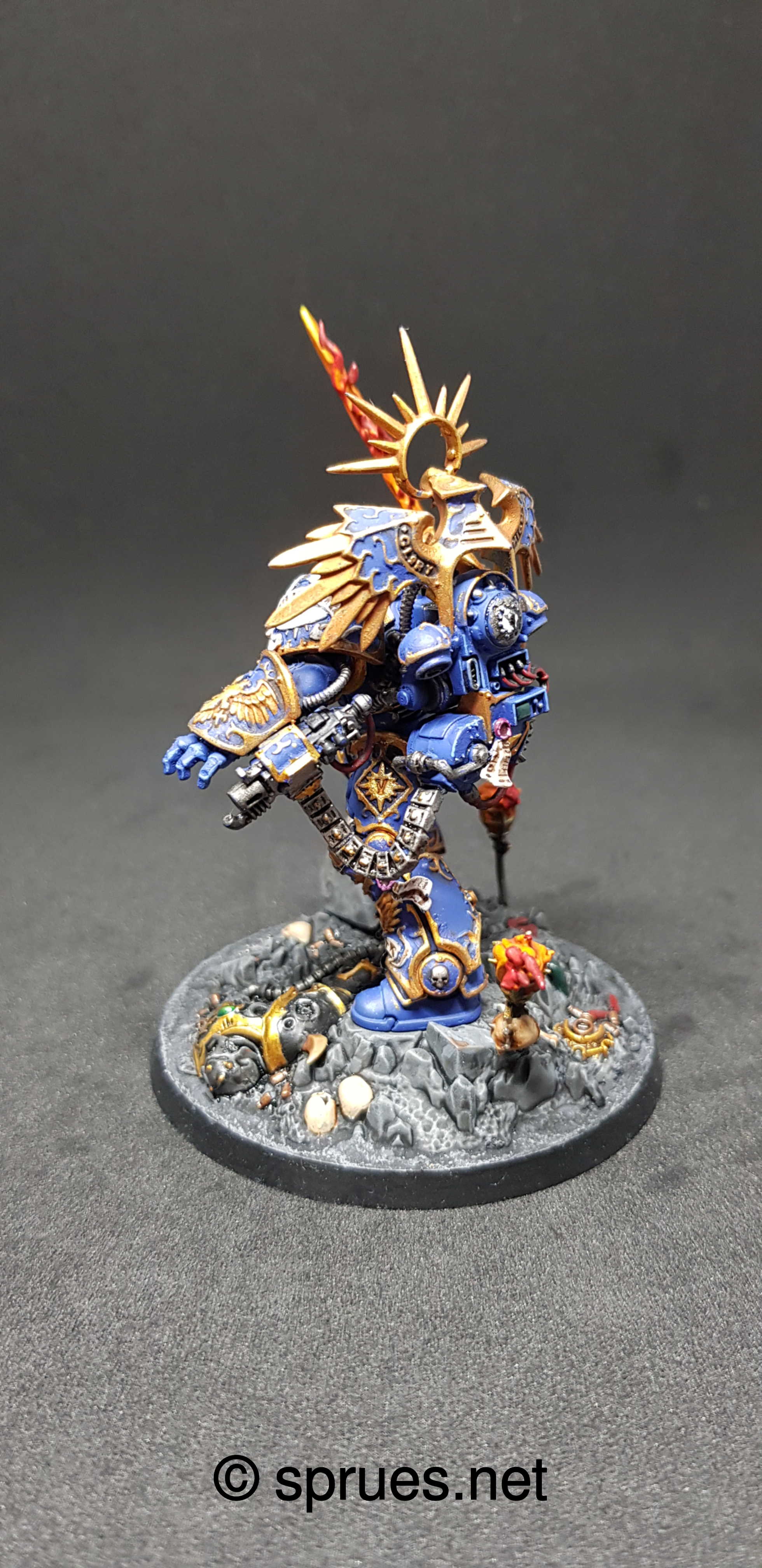 Most annoying model painting so far... The model was sub assembly and blue was chosen as base color. Still not sure which base color is more comfortable to go: blue or gold. Blue basecoat means painting all gold details and at least I can tell you, that’s terrible annoying. Start with gold basecoat means painting all reassess blue, sounds also not easy. However painting these model in sub assembly makes a lot of things easier, except from the cables. The whole painting process takes round about six months. Mostly related to all the gold Details. First four months every other model on the palette was painted, before focusing on Roboute Guilliman himself.