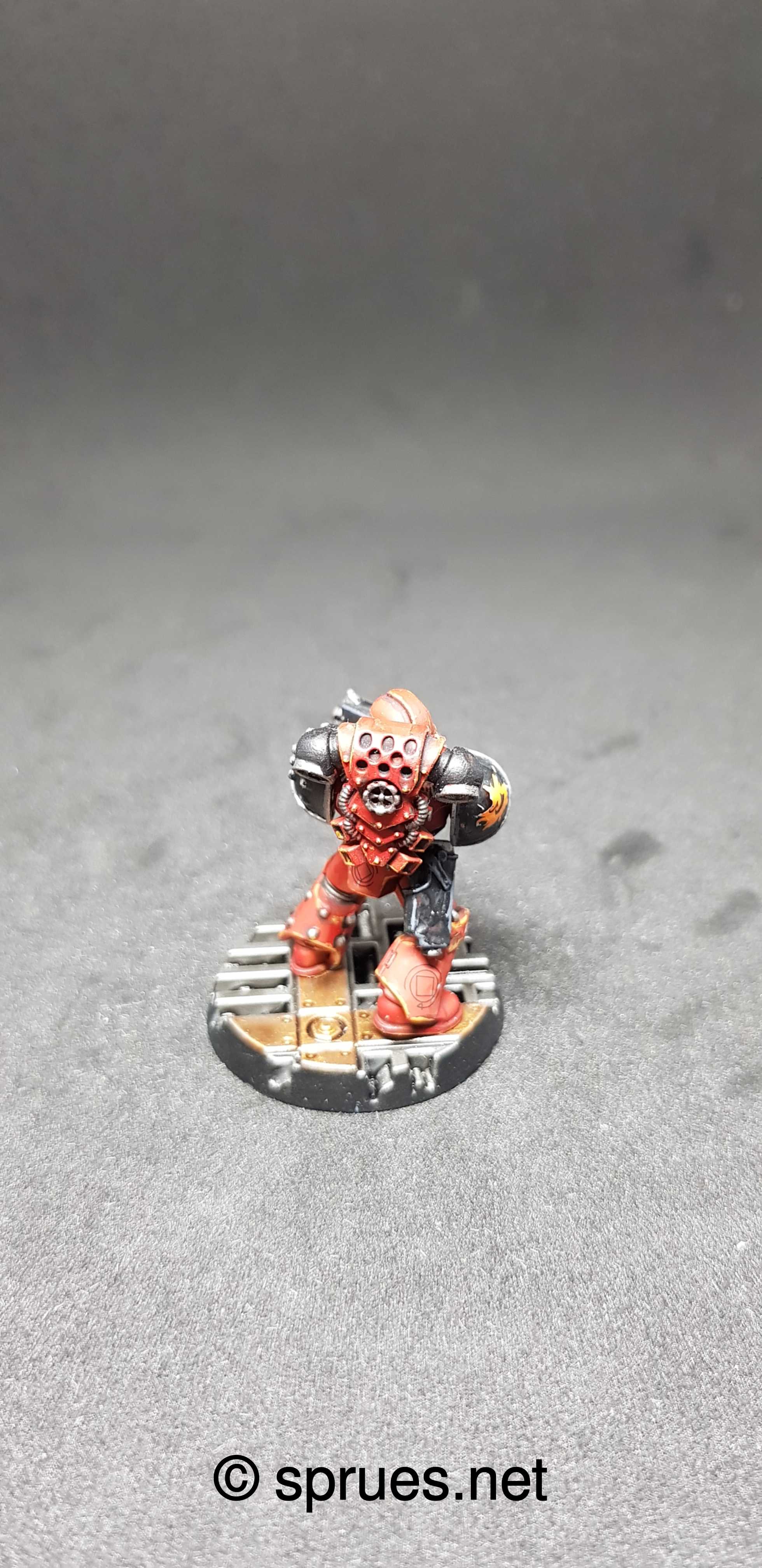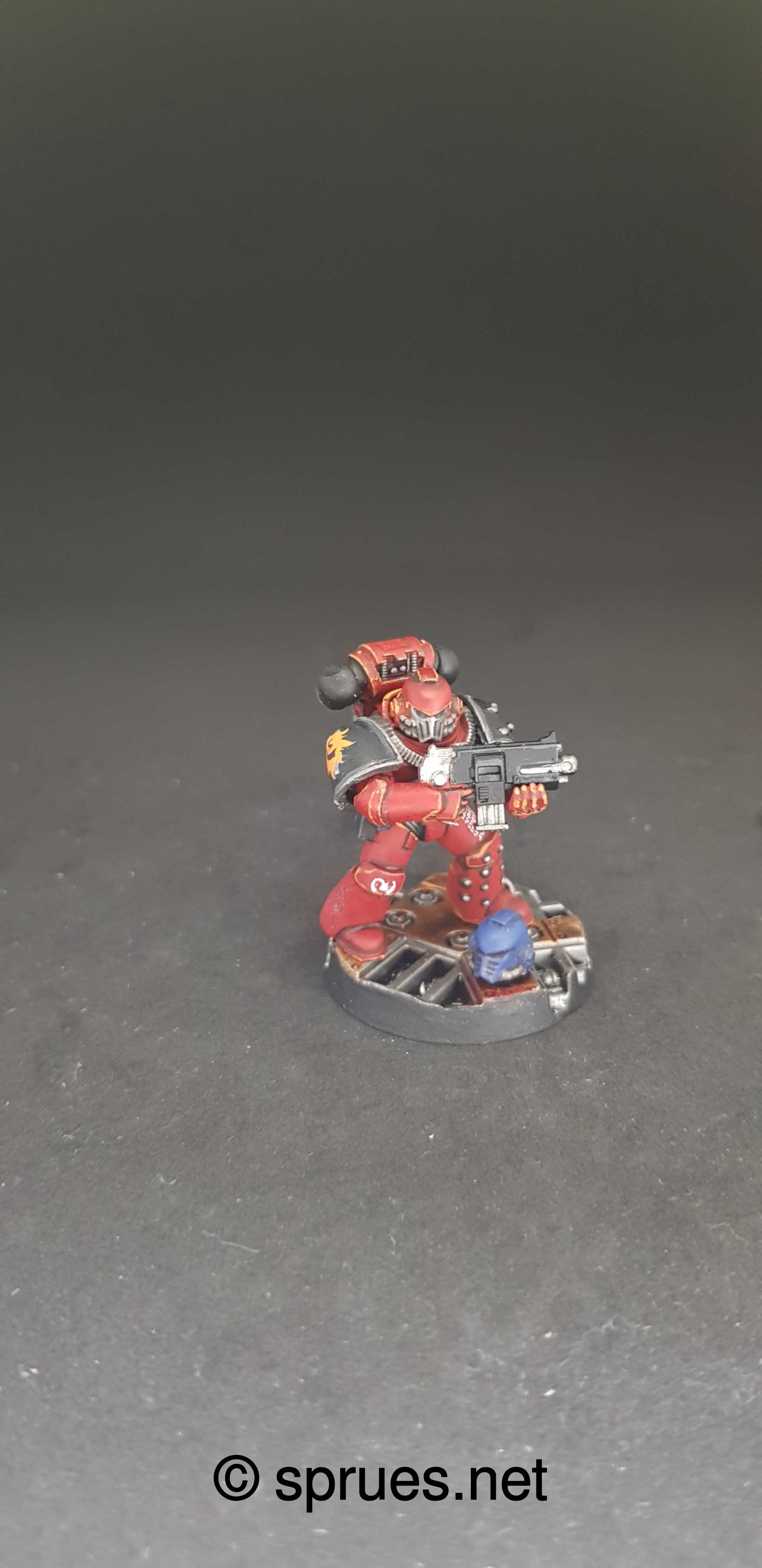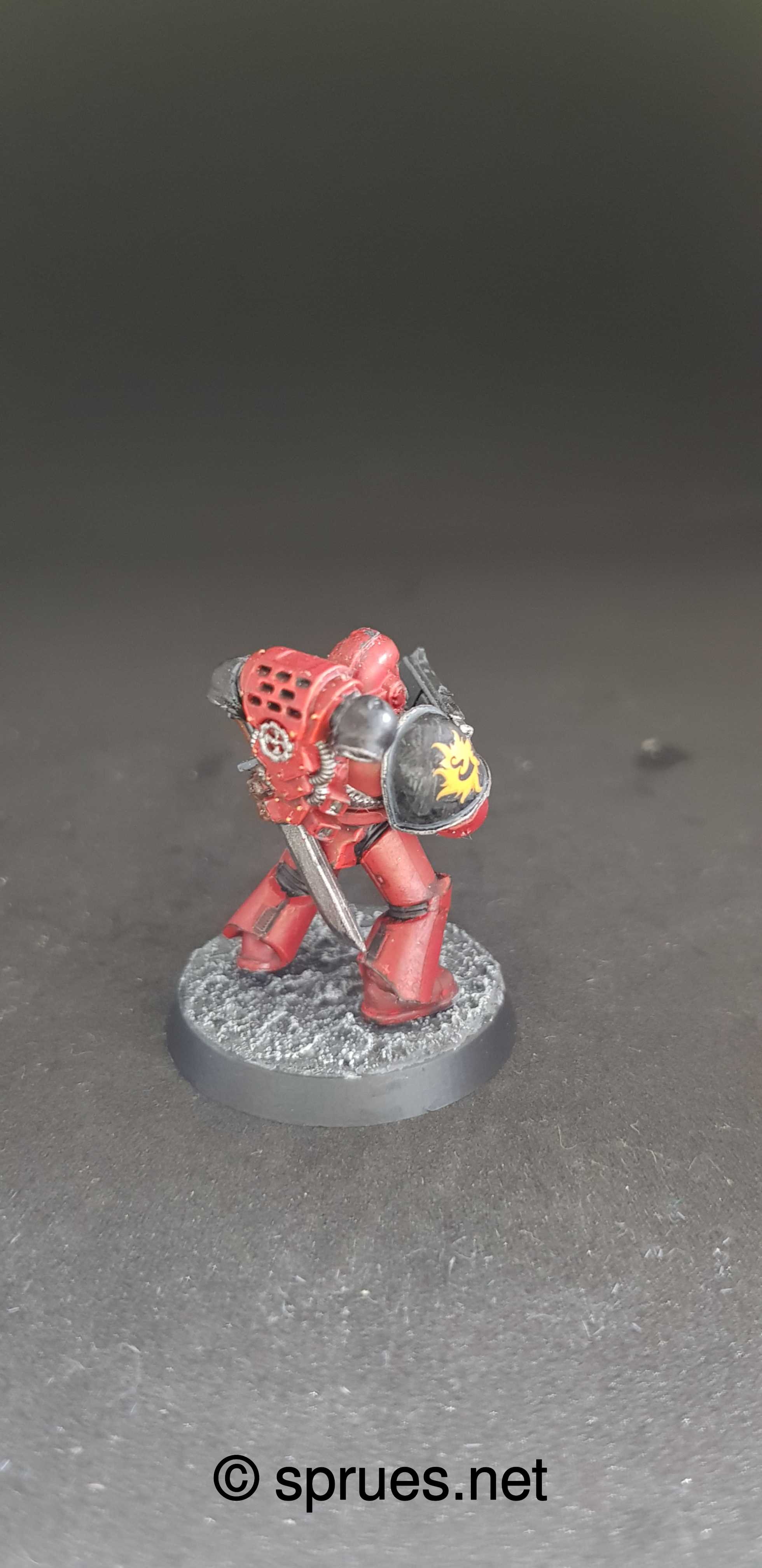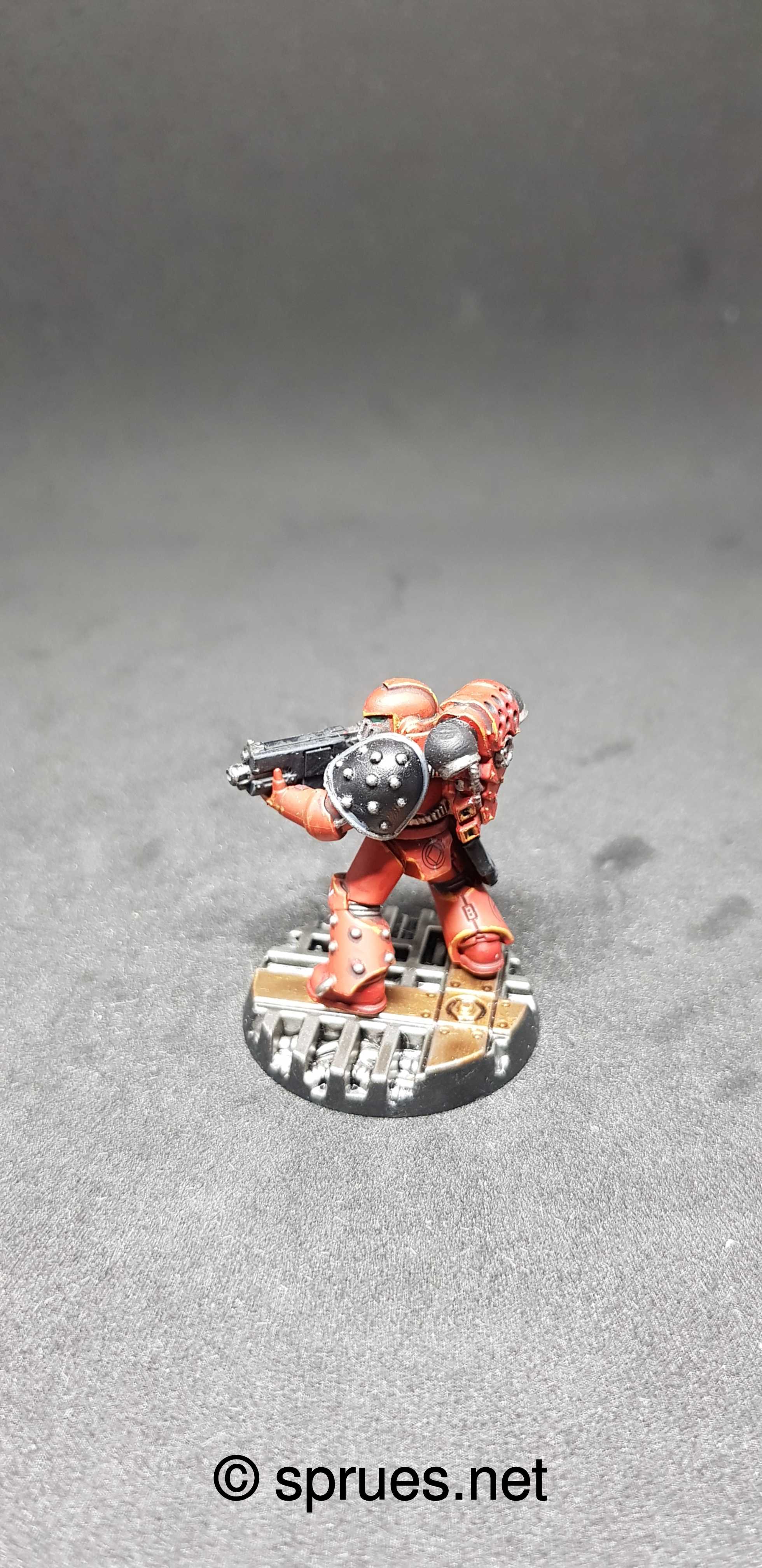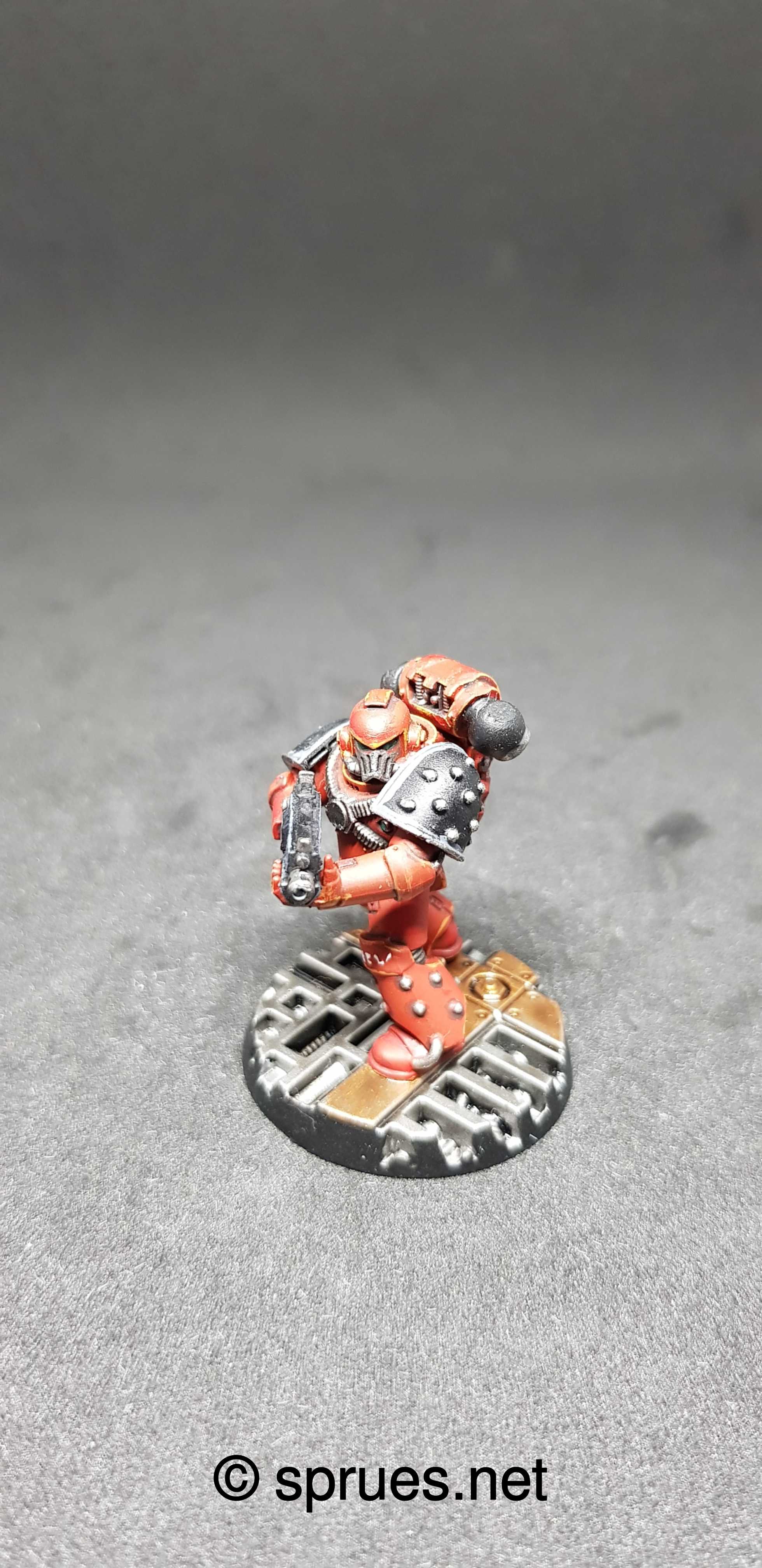 After Kurtha Seed's Legion Veteran Tatical Squad Rho I switch to Squad Sigma. They are really similar to Squad Rho, except from their bases. The basic idea, while Squad Rho is running for their lives on the surface of Calth, Squad Sigma displays a unit which already reach the underground. As they are seems to be more experienced, their armor is way more lettered with signs and scriptures. Also their left shoulder pads are altered with silver bolts. These bolts can also be seen on their legs.