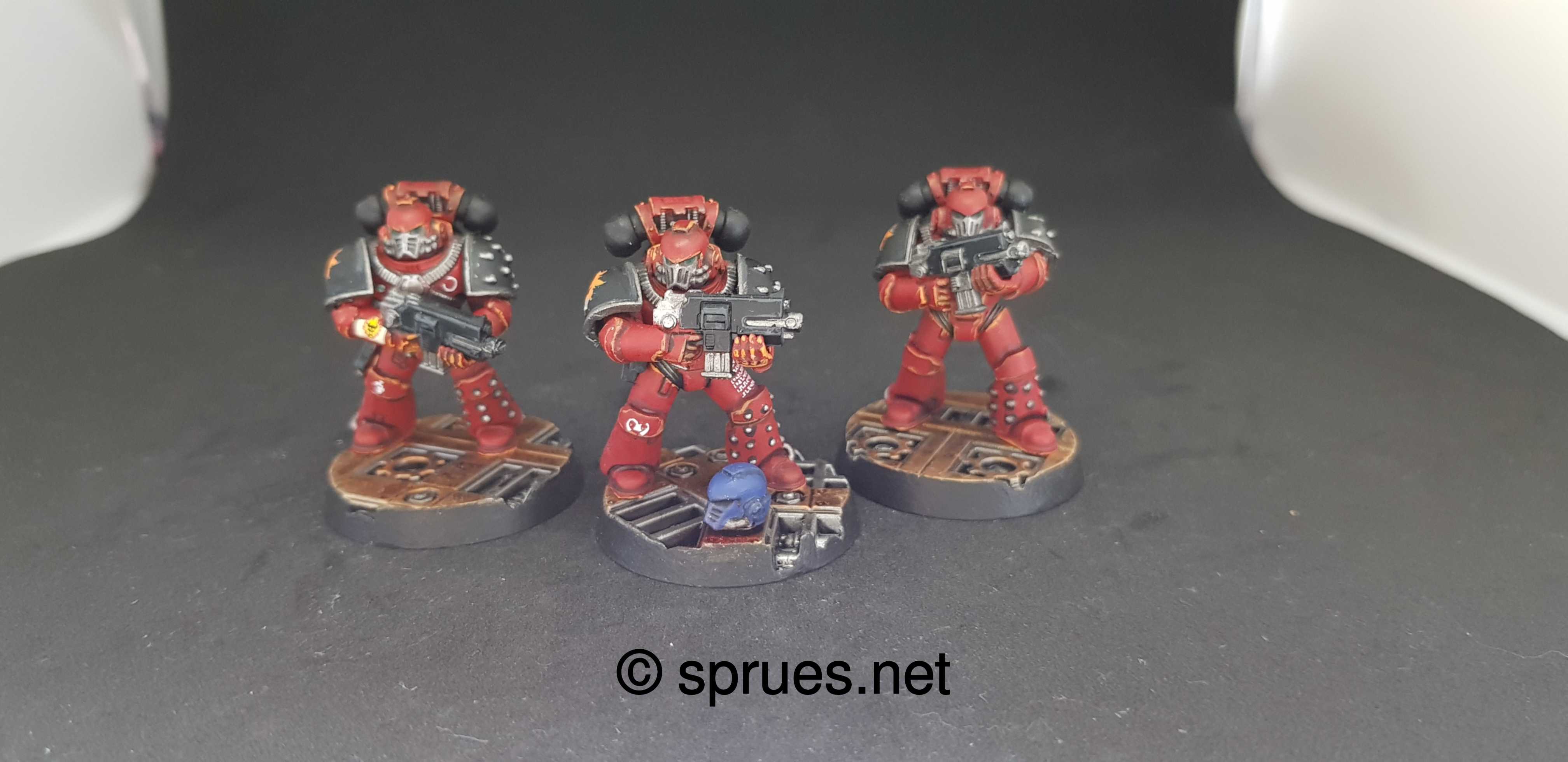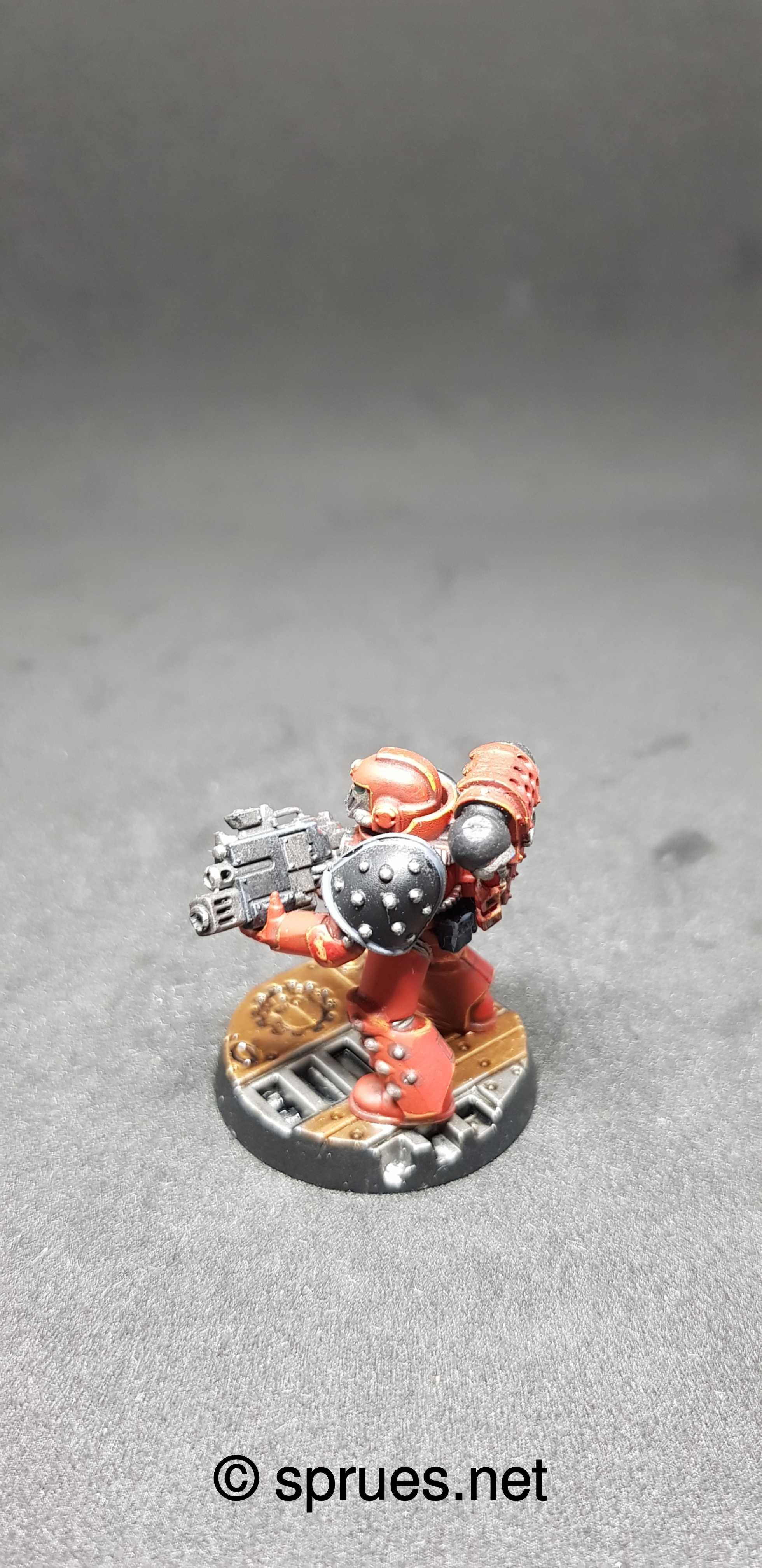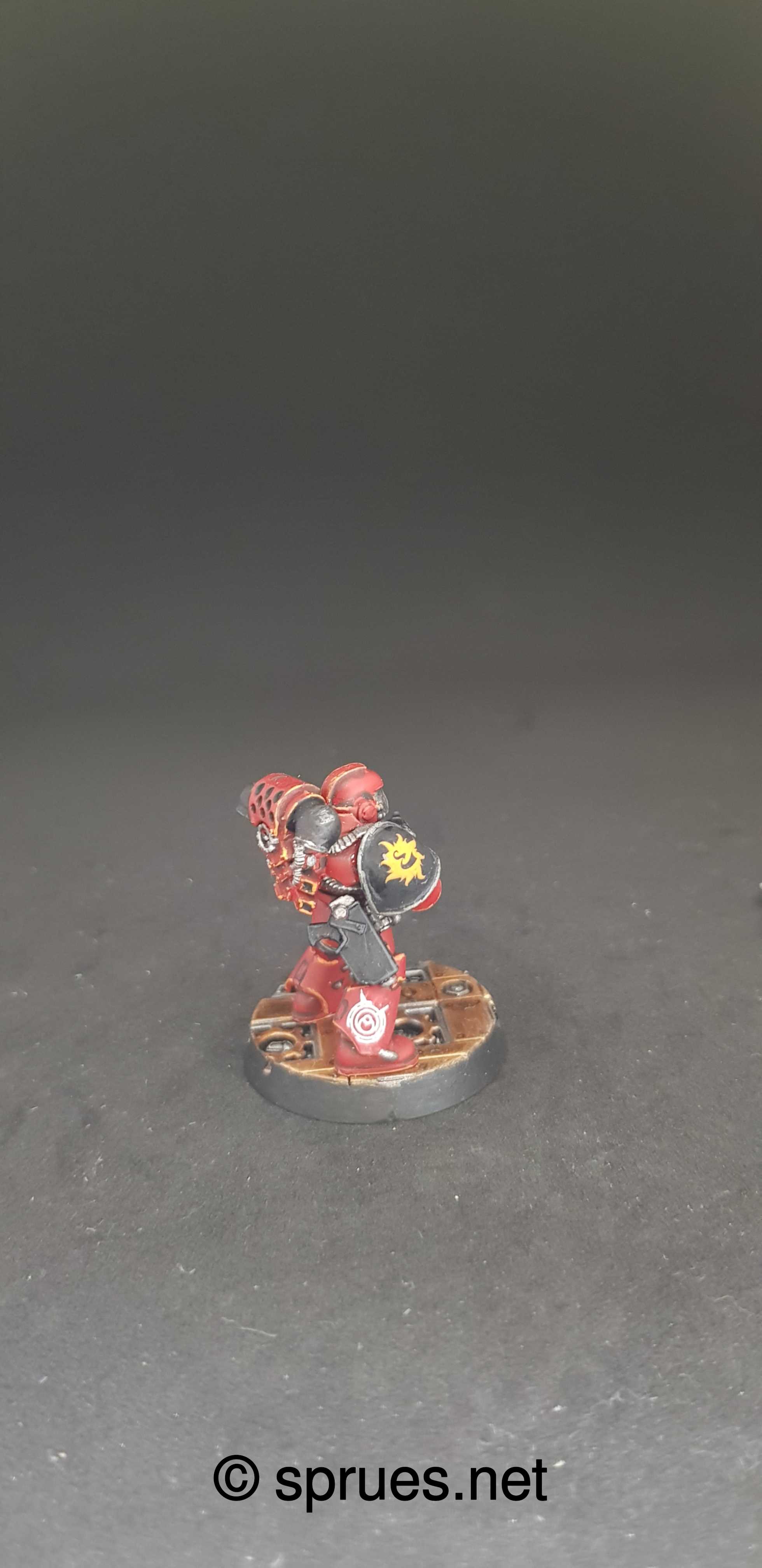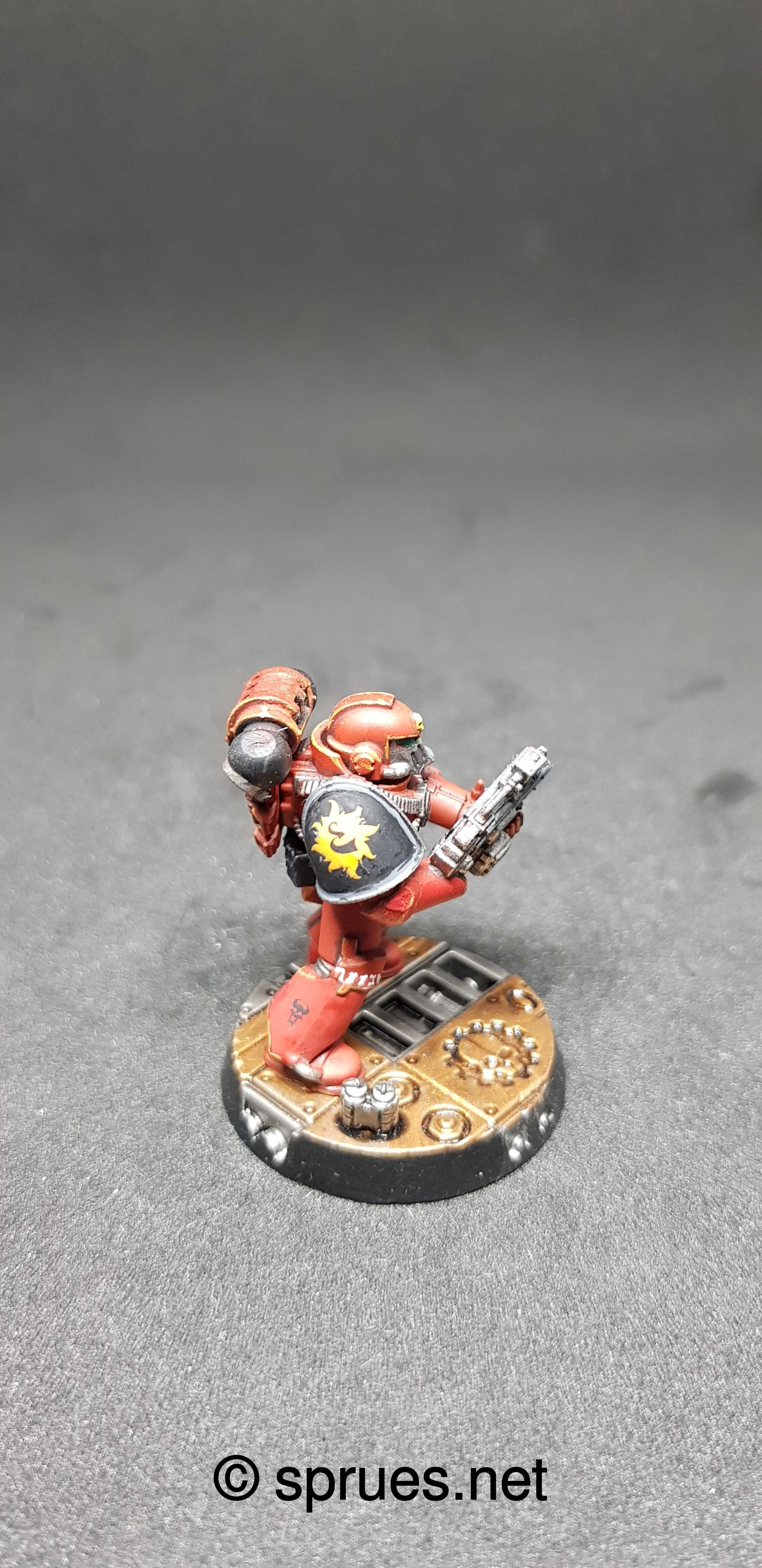 After Kurtha Seed's Legion Veteran Tatical Squad Rho I switch to Squad Sigma. They are really similar to Squad Rho, except from their bases. The basic idea, while Squad Rho is running for their lives on the surface of Calth, Squad Sigma displays a unit which already reach the underground. As they are seems to be more experienced, their armor is way more lettered with signs and scriptures. Also their left shoulder pads are altered with silver bolts. These bolts can also be seen on their legs.