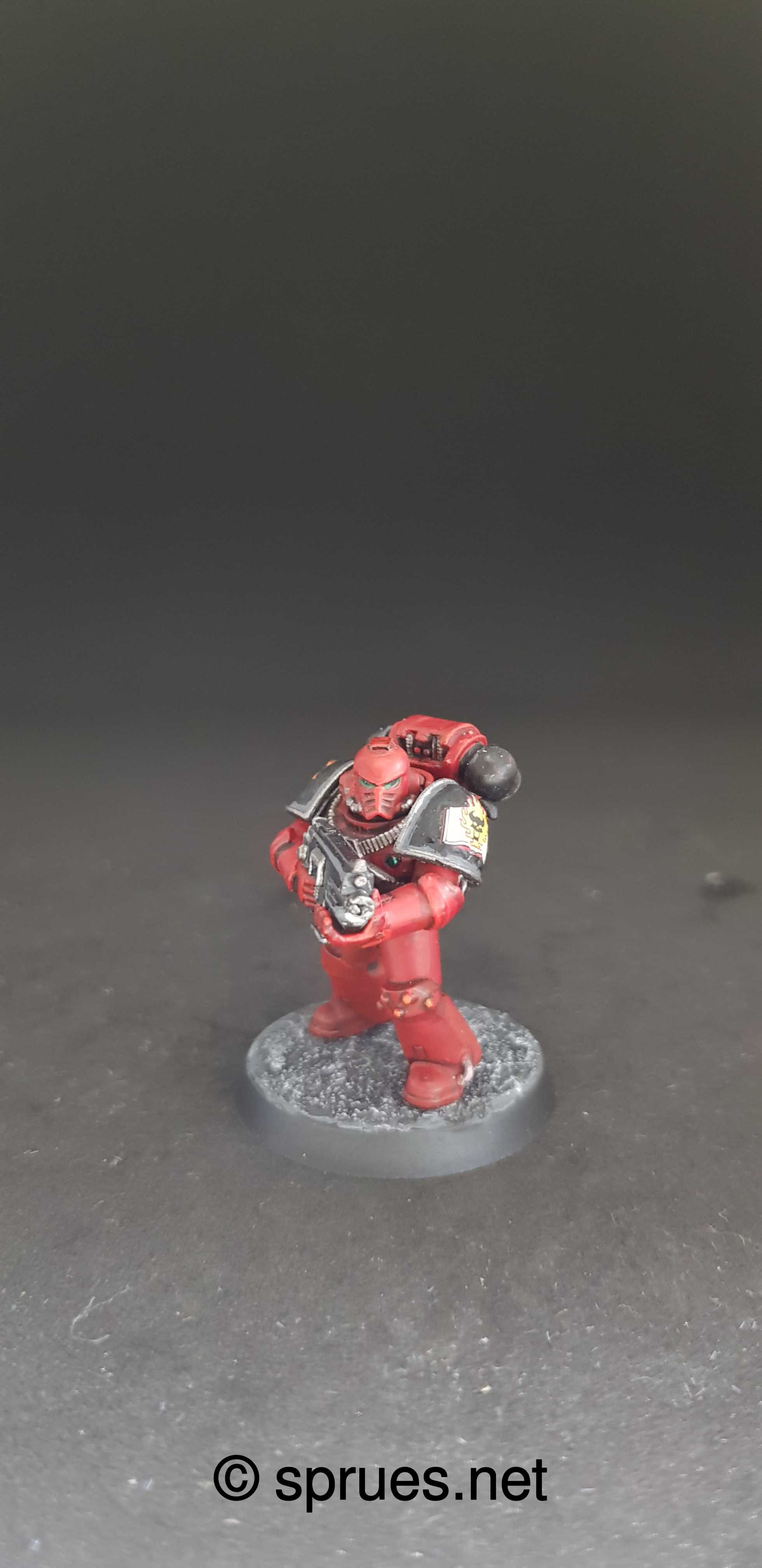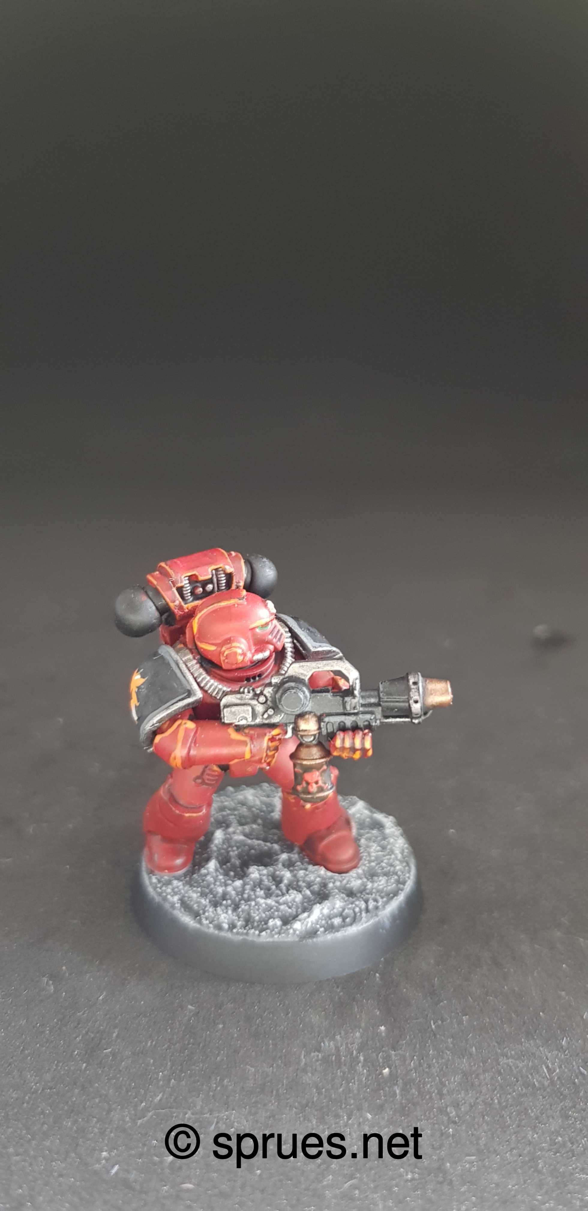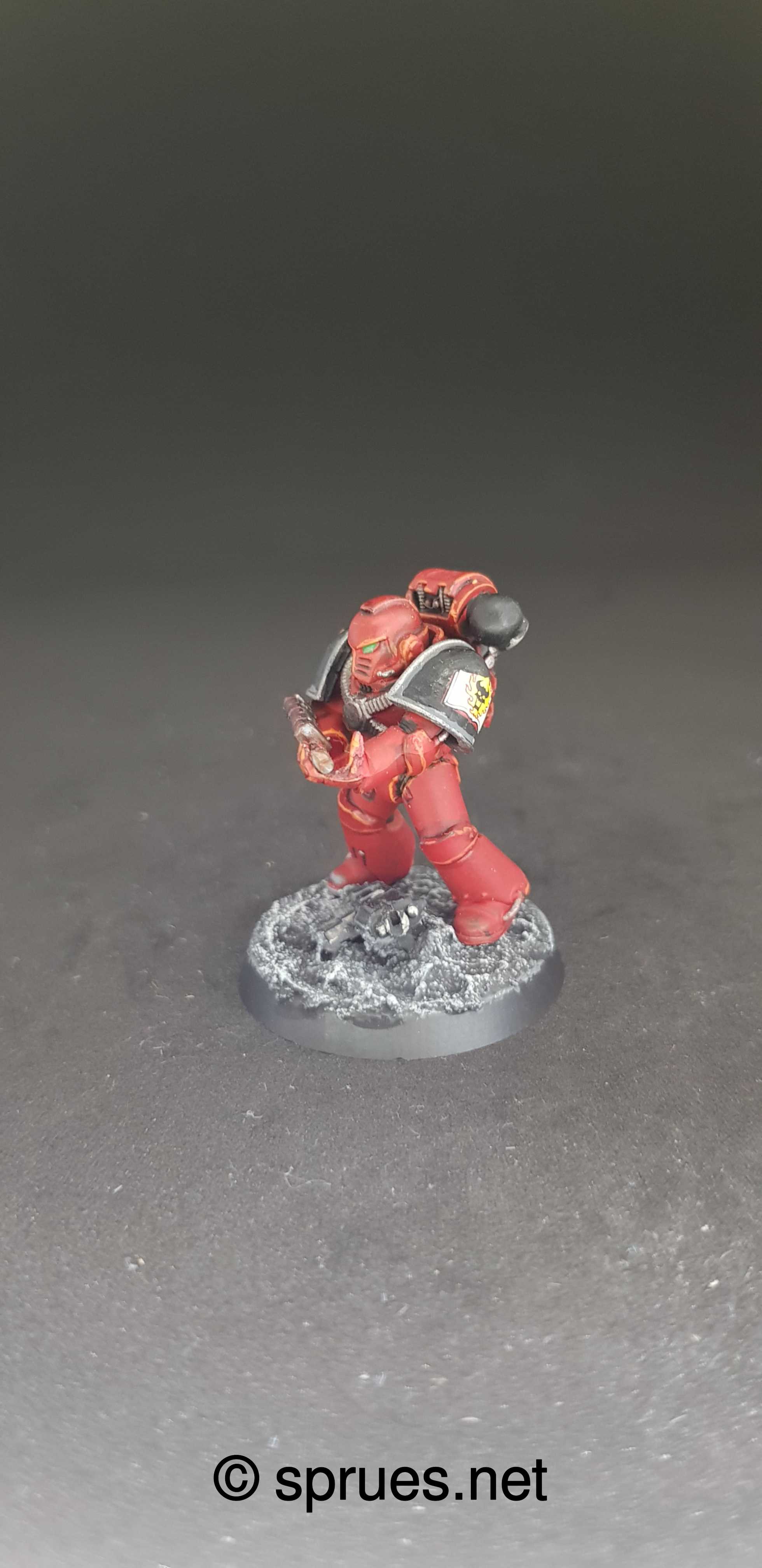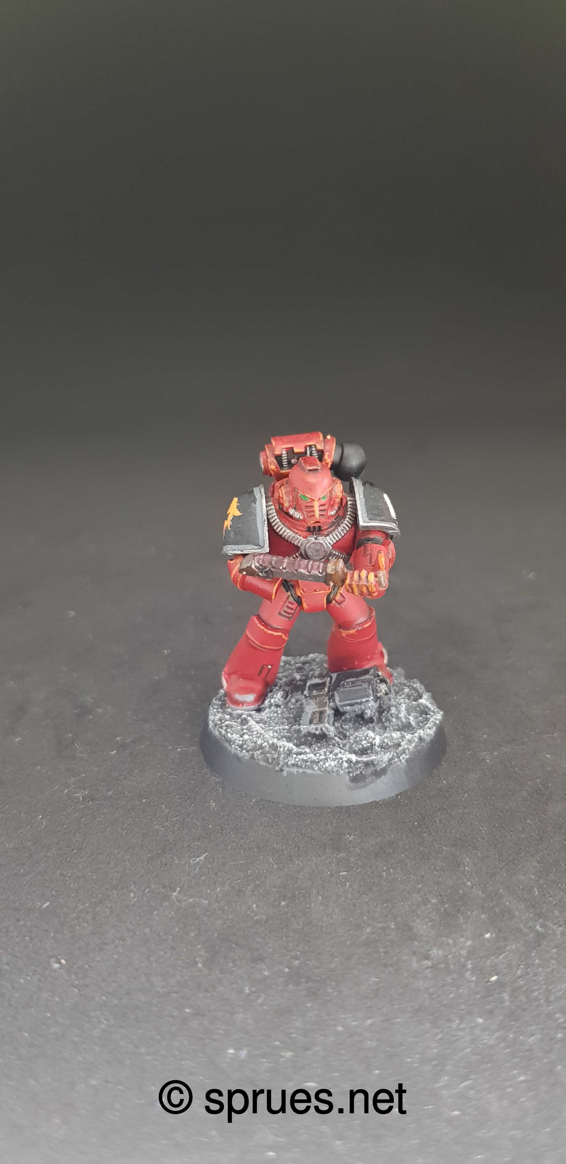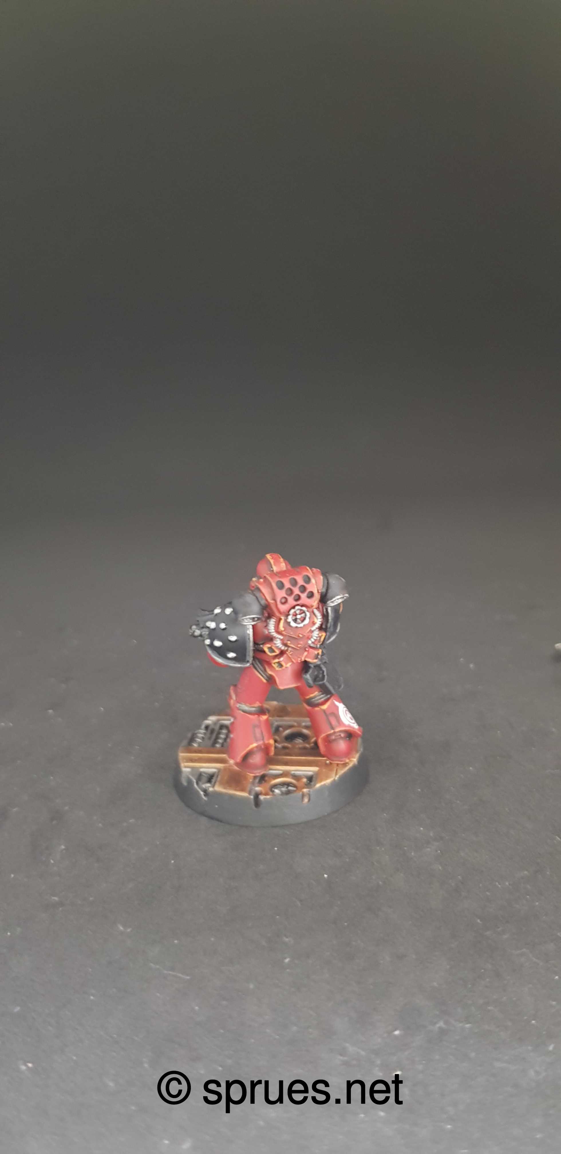 After Kurtha Seed's Legion Veteran Tatical Squad Rho I switch to Squad Sigma. They are really similar to Squad Rho, except from their bases. The basic idea, while Squad Rho is running for their lives on the surface of Calth, Squad Sigma displays a unit which already reach the underground. As they are seems to be more experienced, their armor is way more lettered with signs and scriptures. Also their left shoulder pads are altered with silver bolts. These bolts can also be seen on their legs.