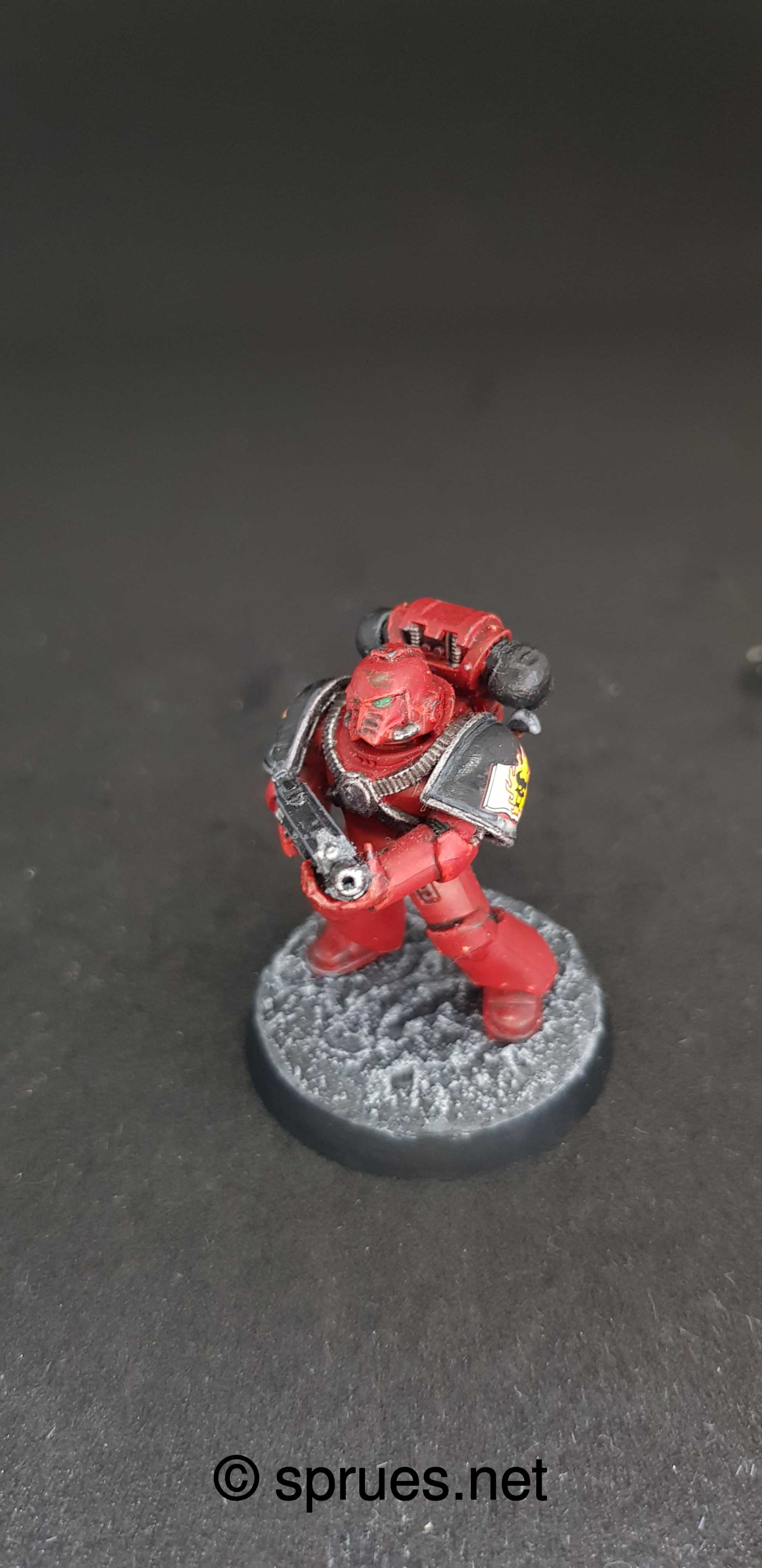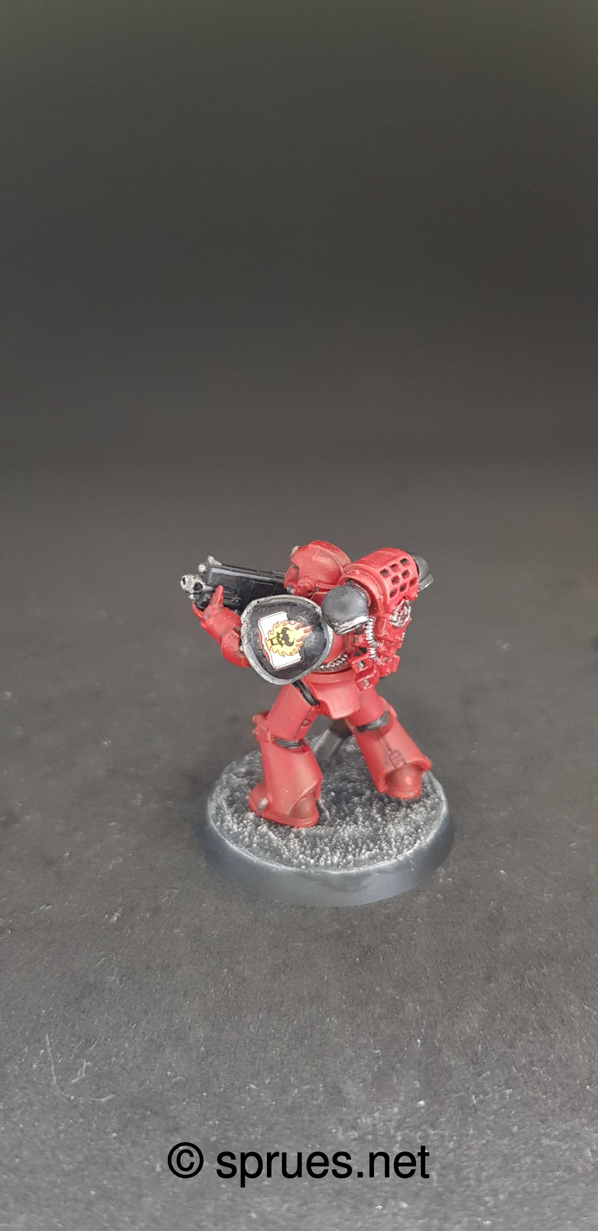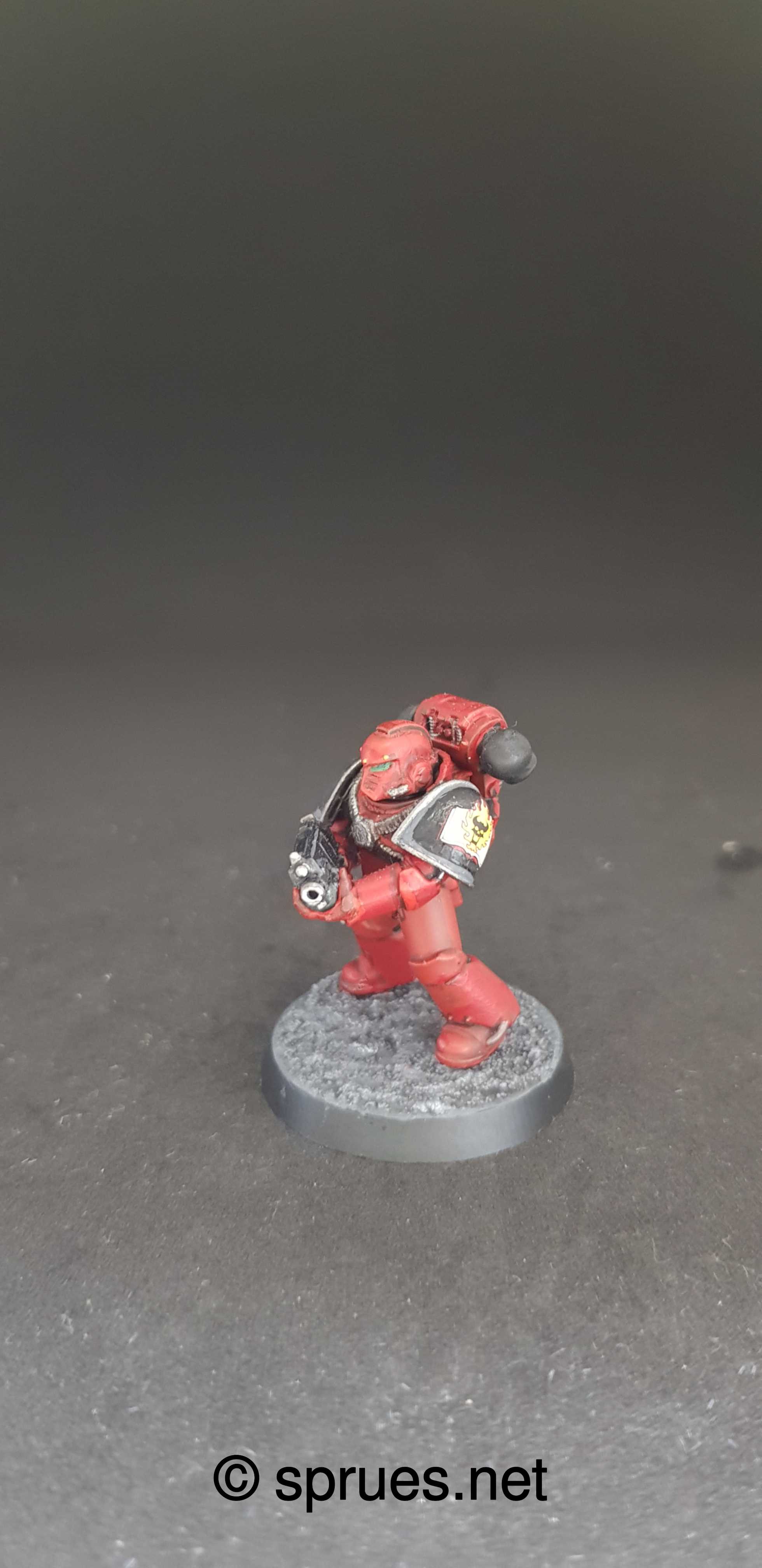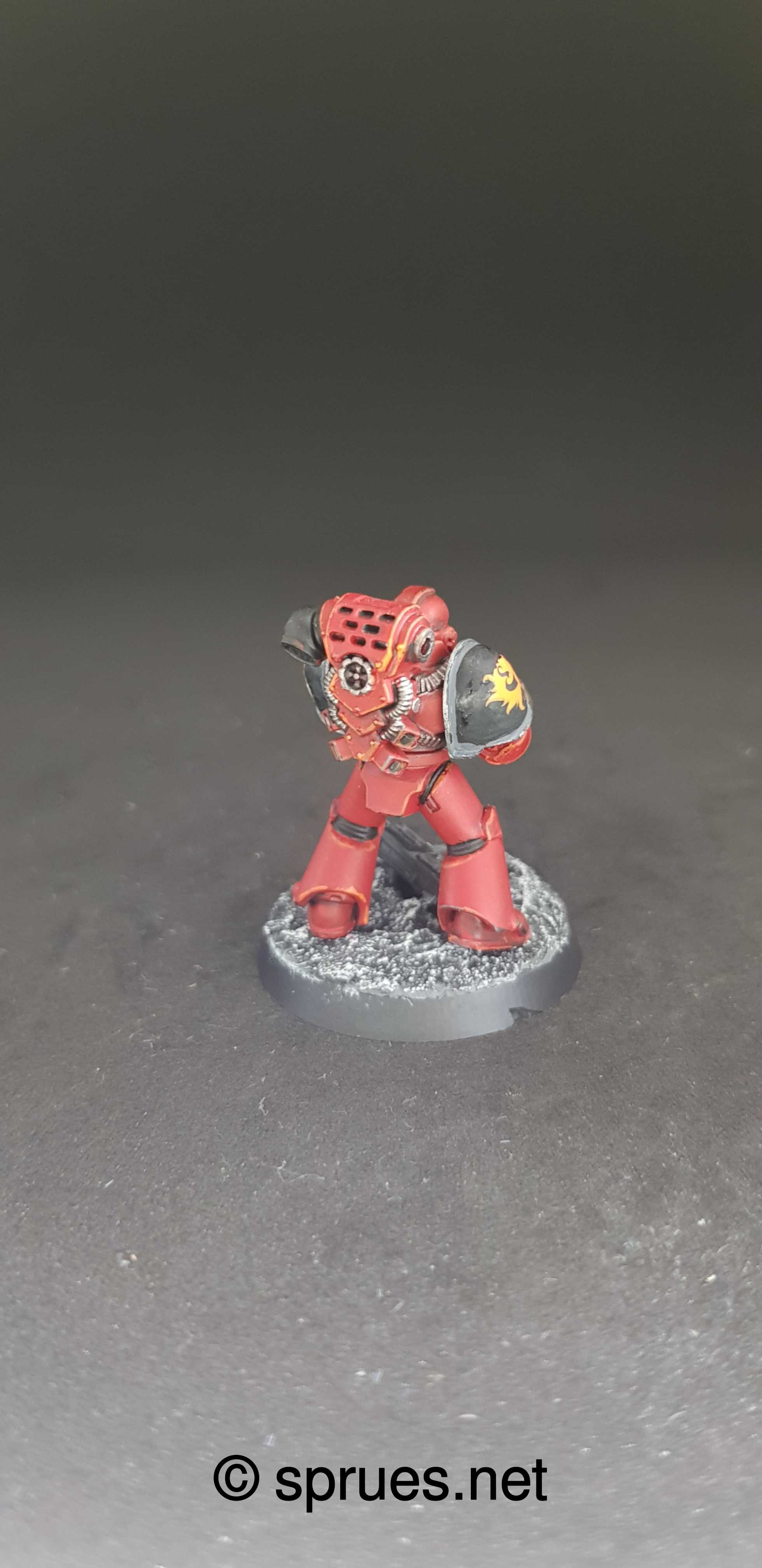 After Kurtha Seed's Legion Veteran Tatical Squad Rho I switch to Squad Sigma. They are really similar to Squad Rho, except from their bases. The basic idea, while Squad Rho is running for their lives on the surface of Calth, Squad Sigma displays a unit which already reach the underground. As they are seems to be more experienced, their armor is way more lettered with signs and scriptures. Also their left shoulder pads are altered with silver bolts. These bolts can also be seen on their legs.