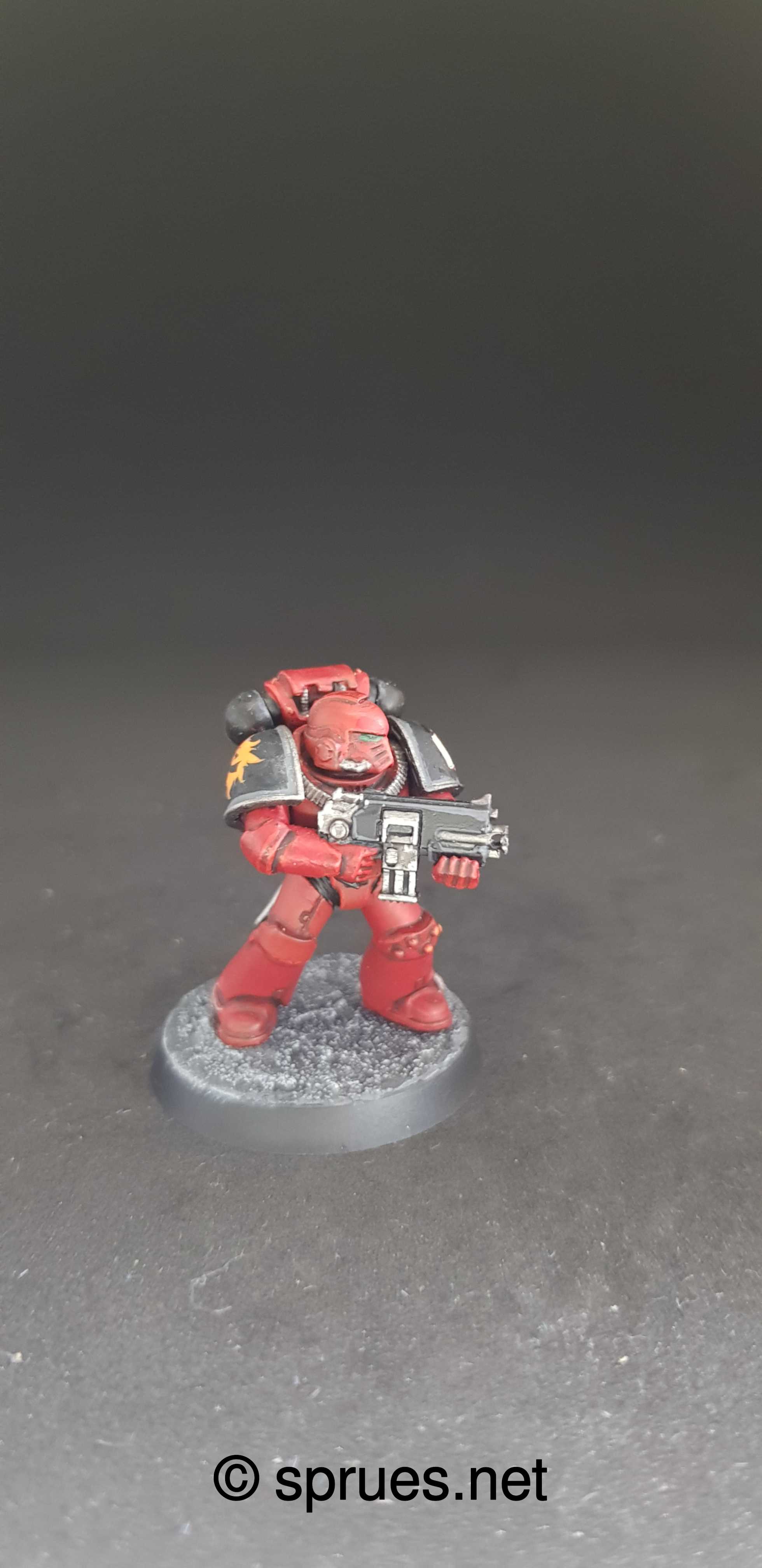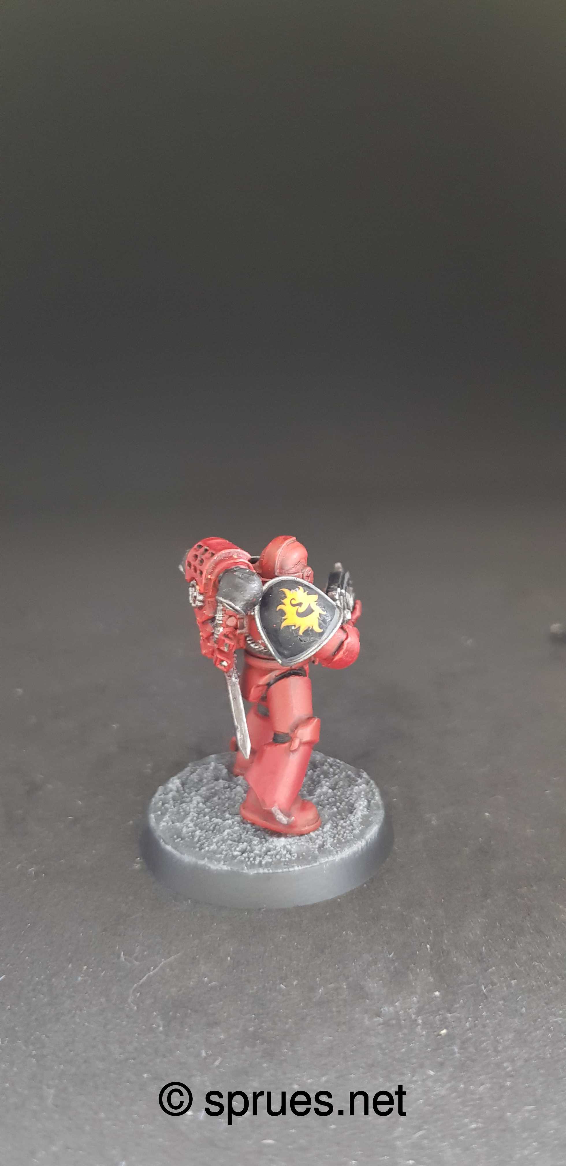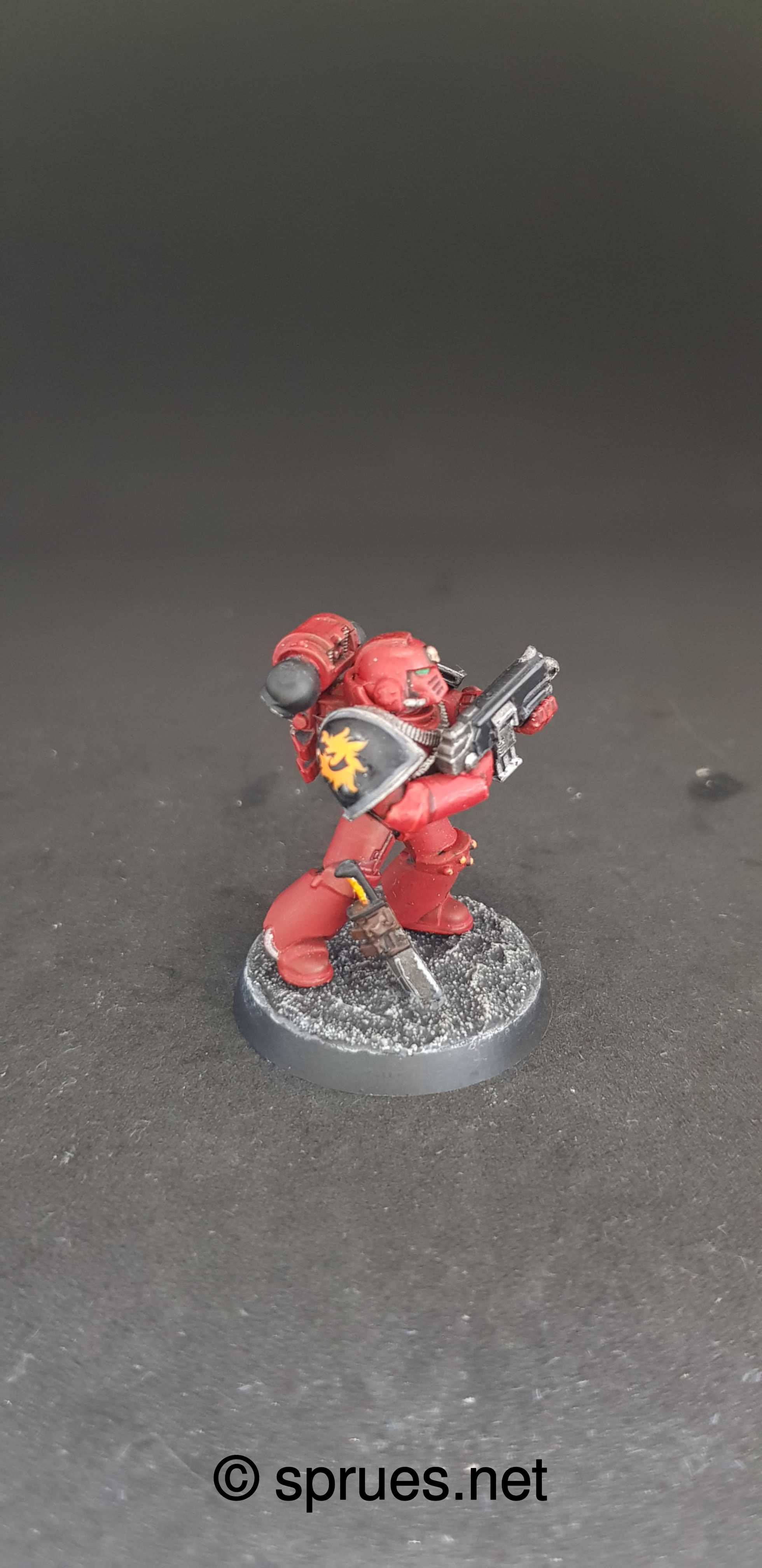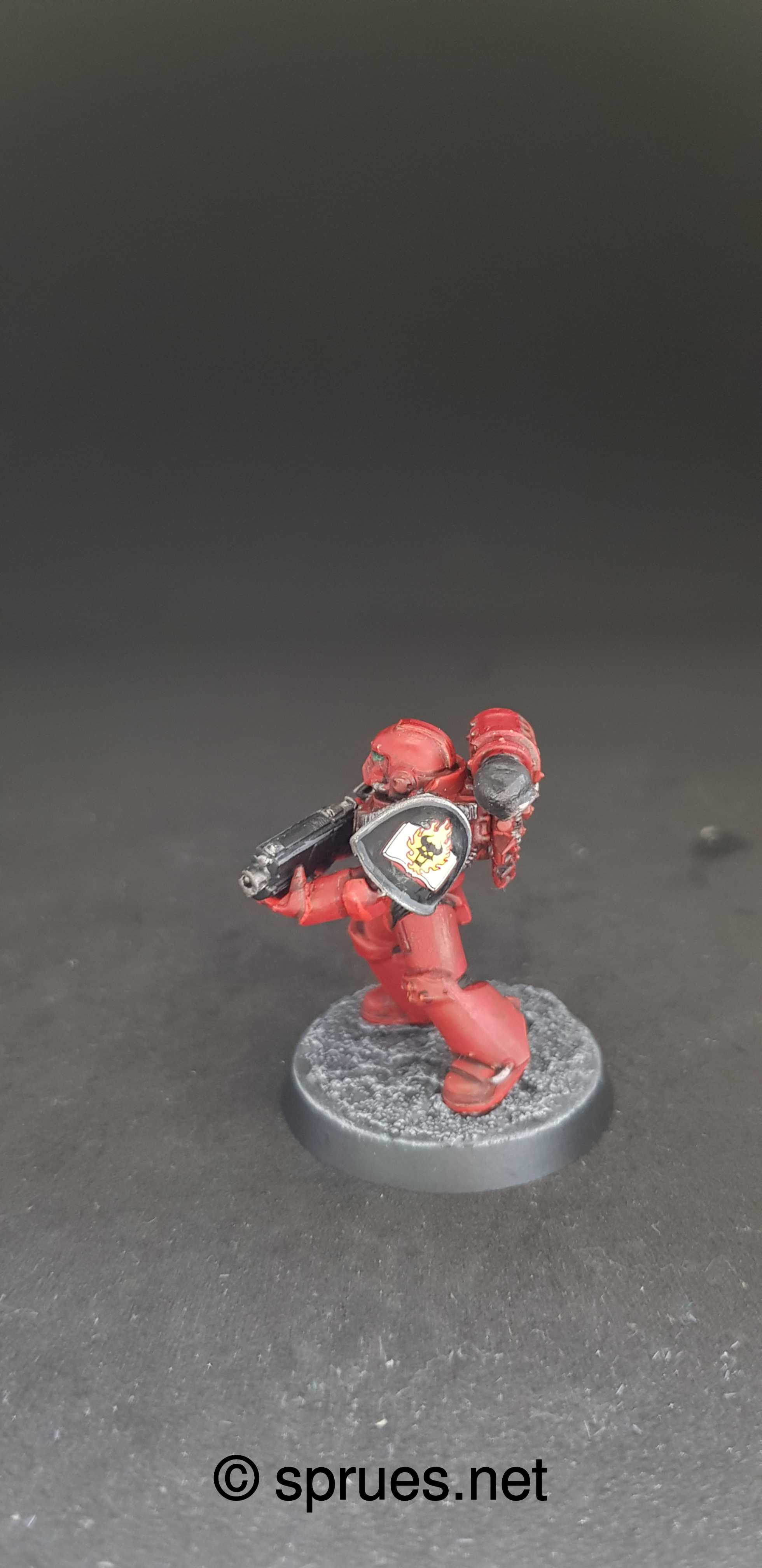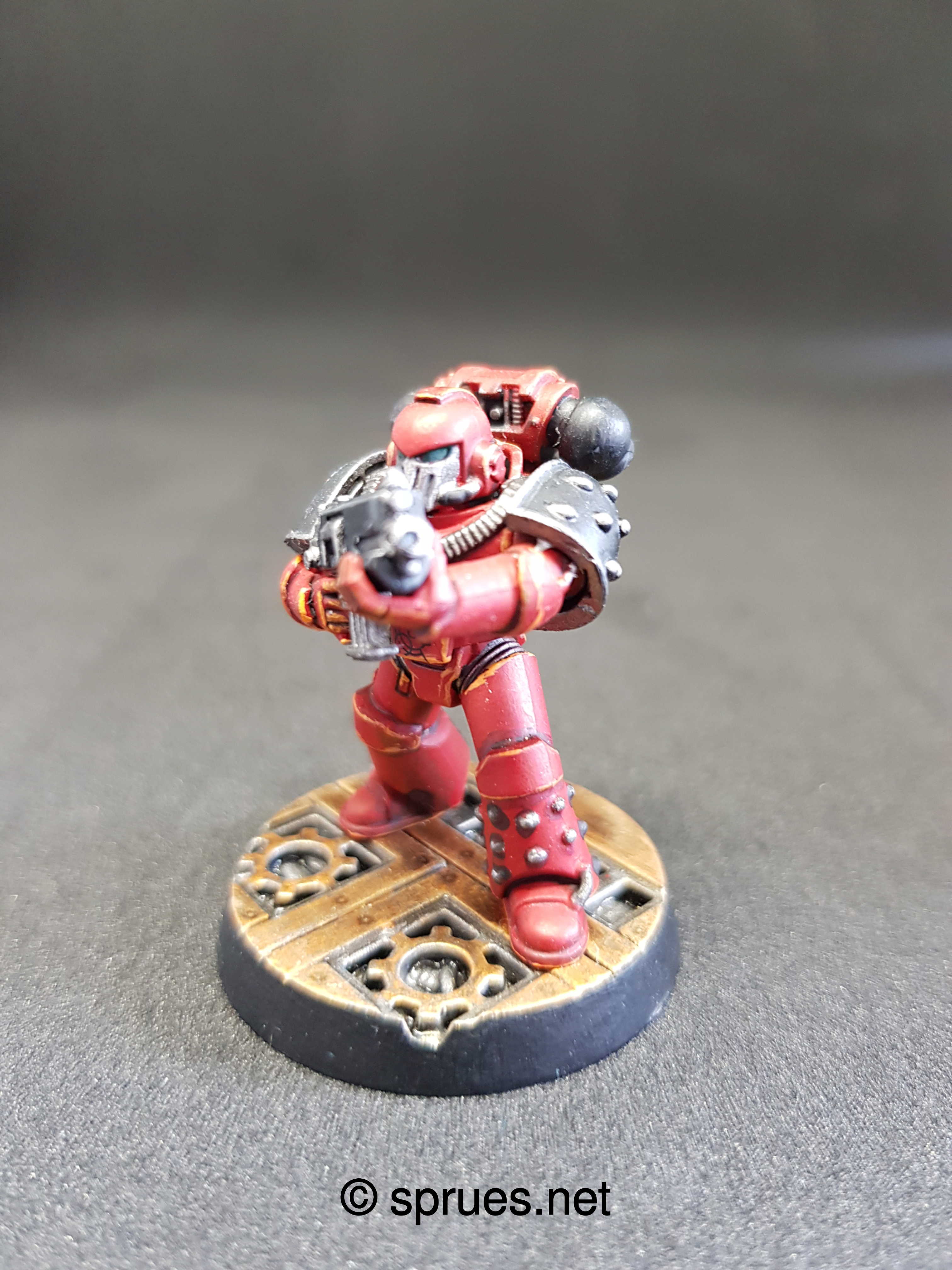 After Kurtha Seed's Legion Veteran Tatical Squad Rho I switch to Squad Sigma. They are really similar to Squad Rho, except from their bases. The basic idea, while Squad Rho is running for their lives on the surface of Calth, Squad Sigma displays a unit which already reach the underground. As they are seems to be more experienced, their armor is way more lettered with signs and scriptures. Also their left shoulder pads are altered with silver bolts. These bolts can also be seen on their legs.