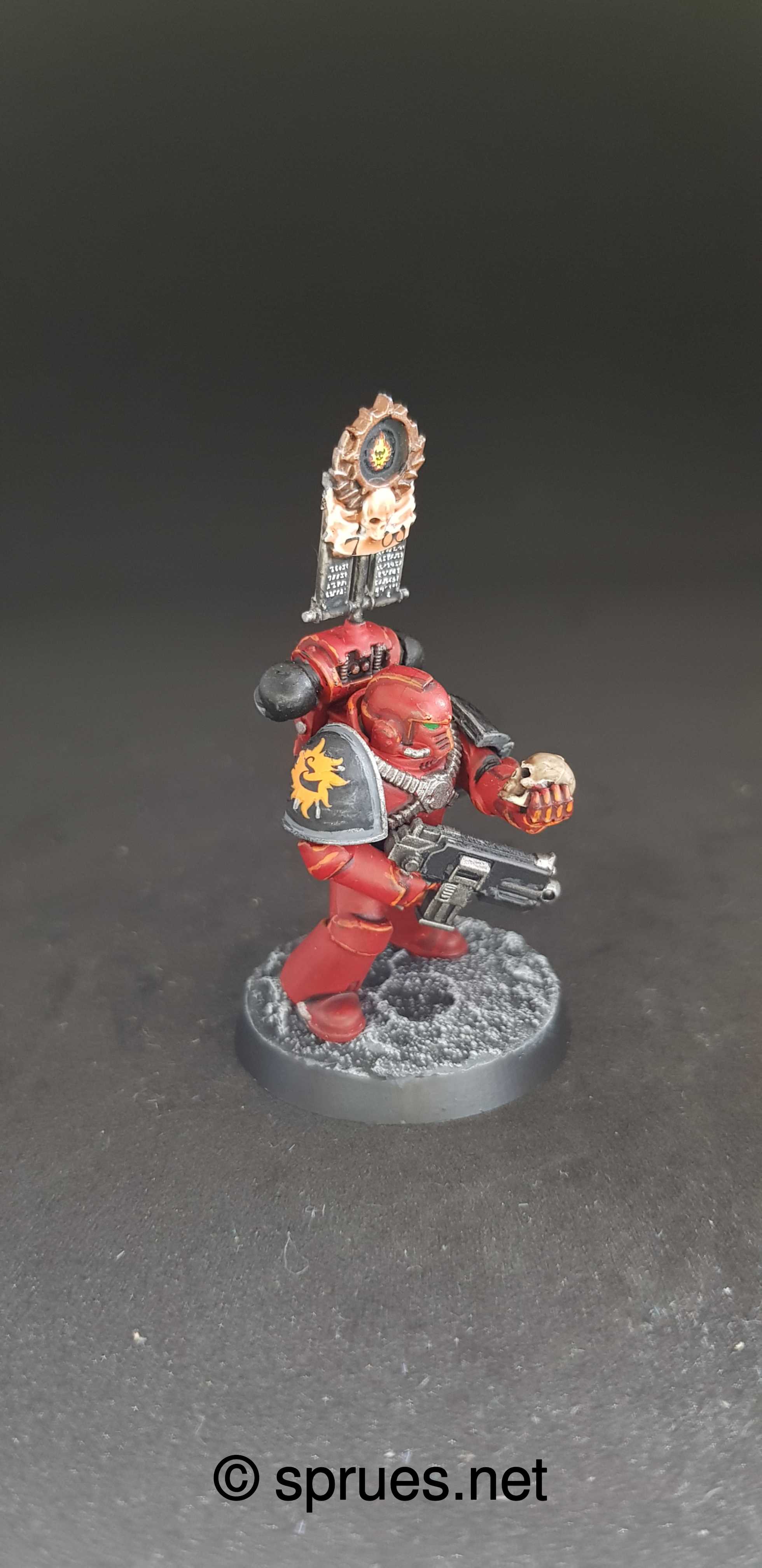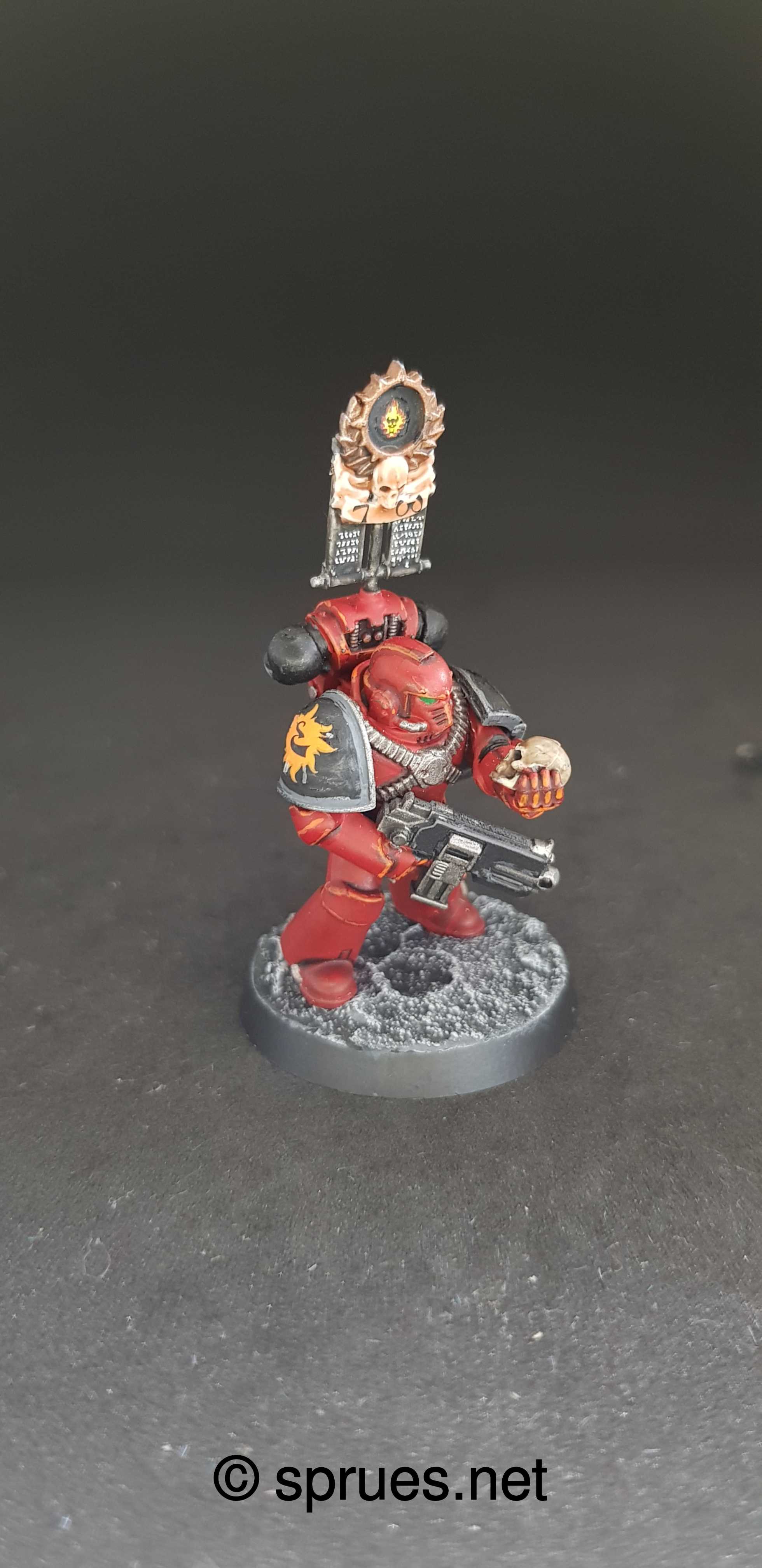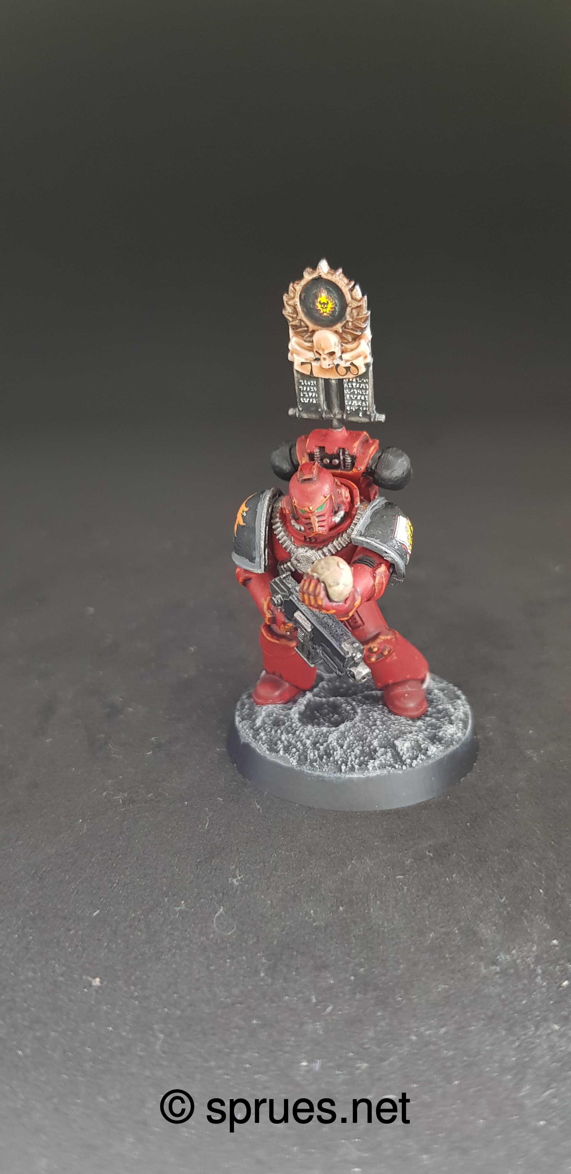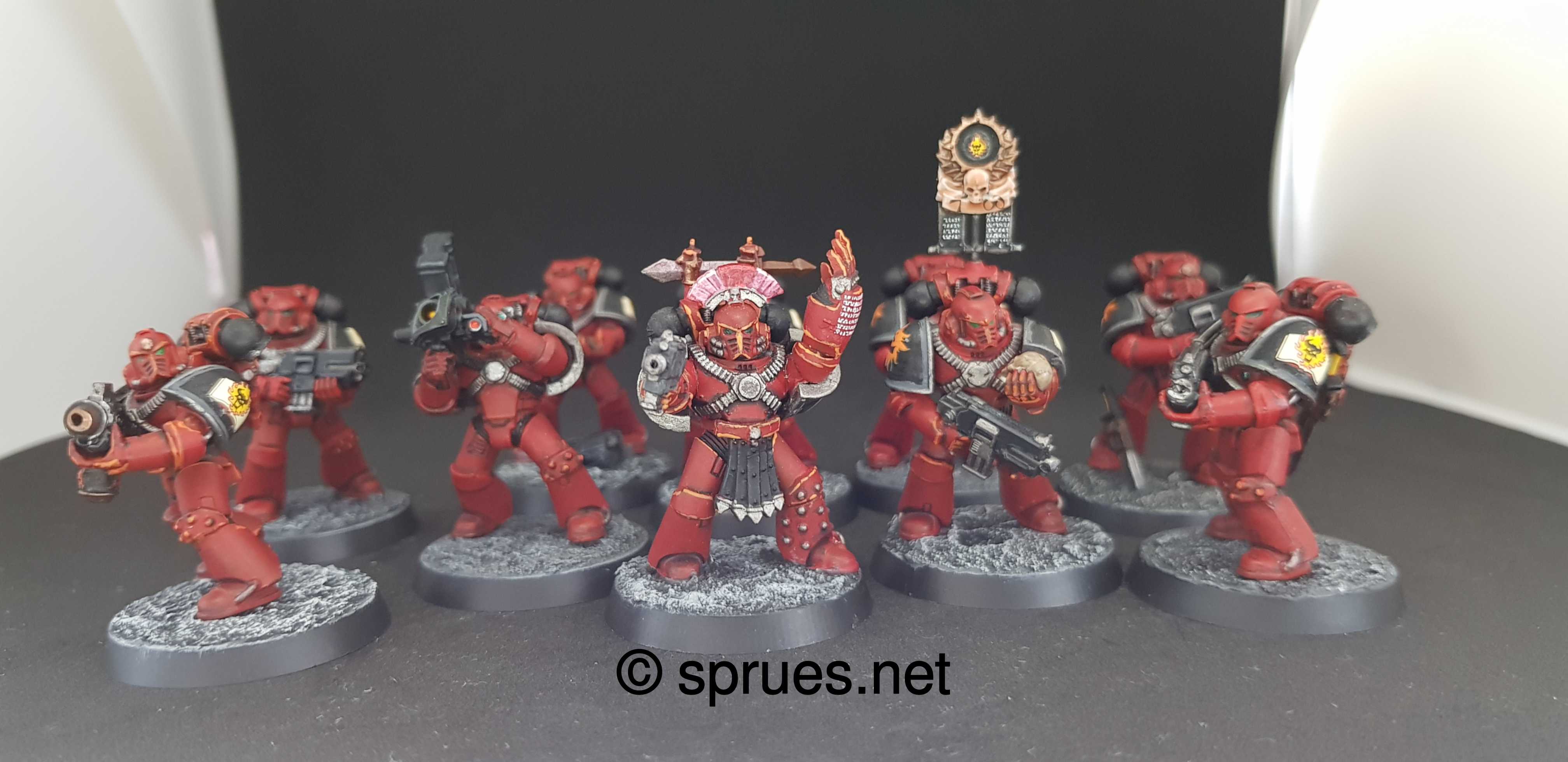 Kurtha Seed's Legion Veteran Tatical Squad Rho consists out of ten Tactical Marines. It takes some time until every marine was completely painted. Armory was chosen depending on the Betral at Calth rules, so seven Marines carry a bolter. While the remaining Members taken a melter, rocket launcher and power fist. The Sergeant carriers a lettered power fist and a bolt pistol. His backpack were taken from some #DarkAngels sprue. Furthermore take a look at the banner bearer, with his lowered bolter and fascinated field of vision. Maybe you already notice the marine equipped with rocket launcher and eye lenses. As there are Word Bearers who served the dark Gods, even a more cultism marine who already sacrifice his hand is there.