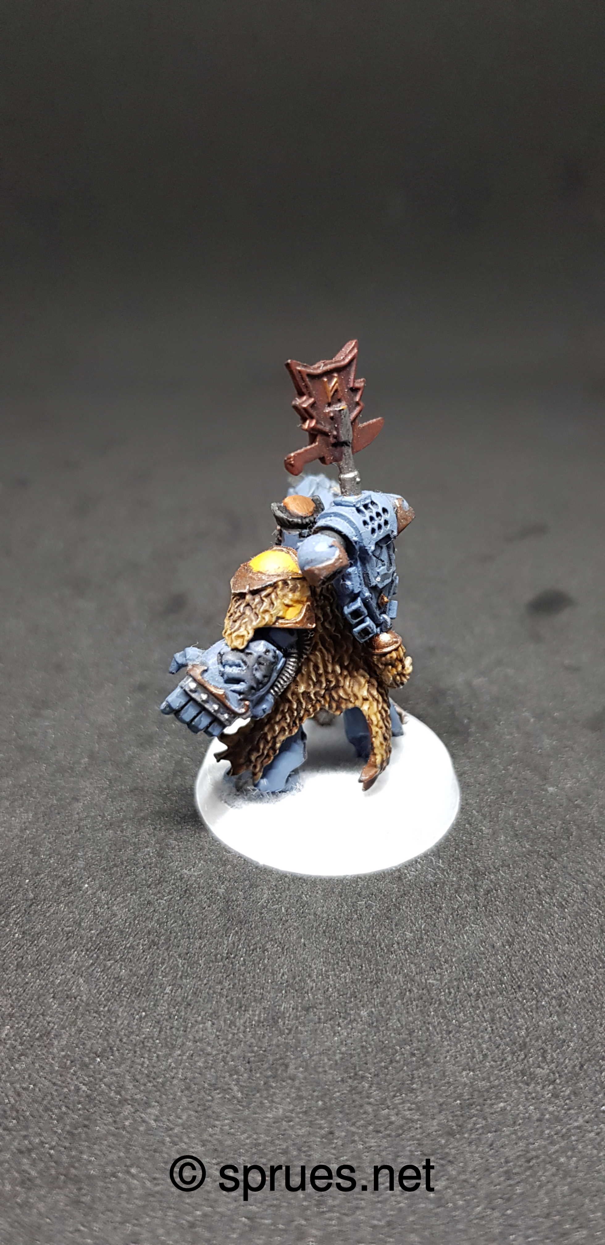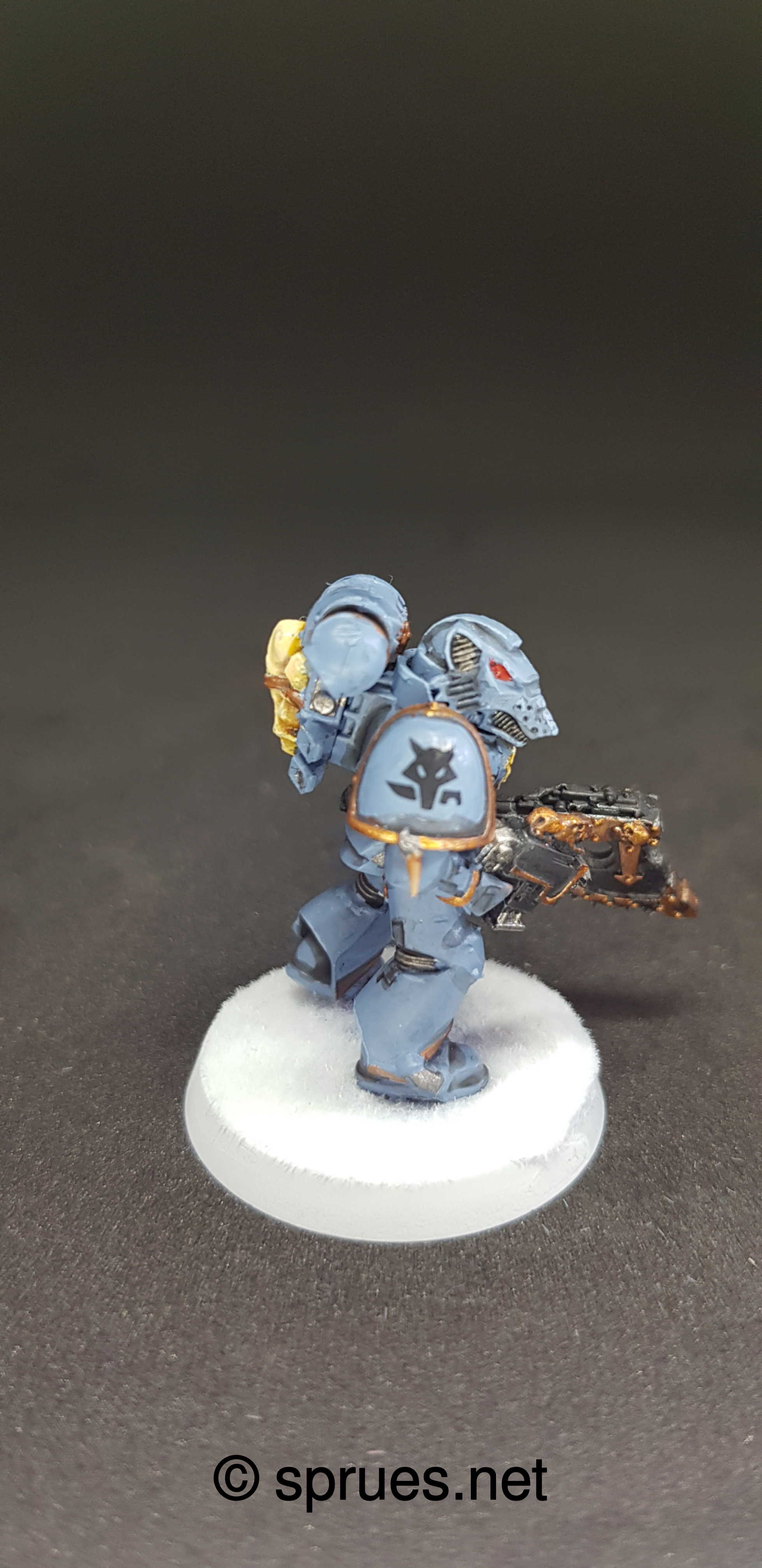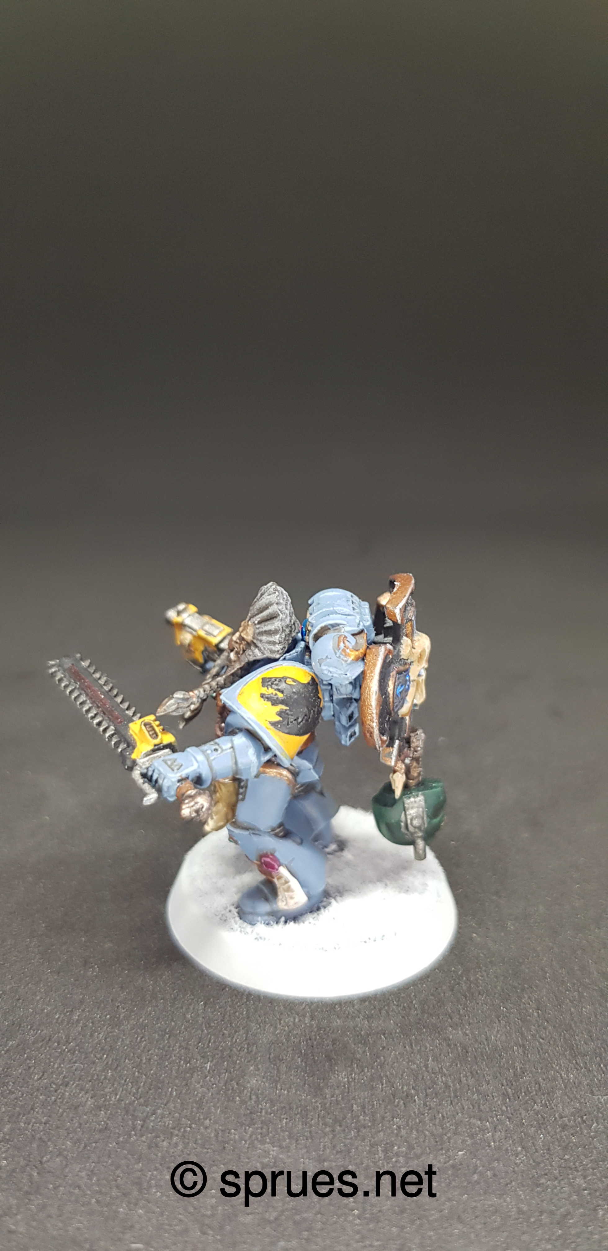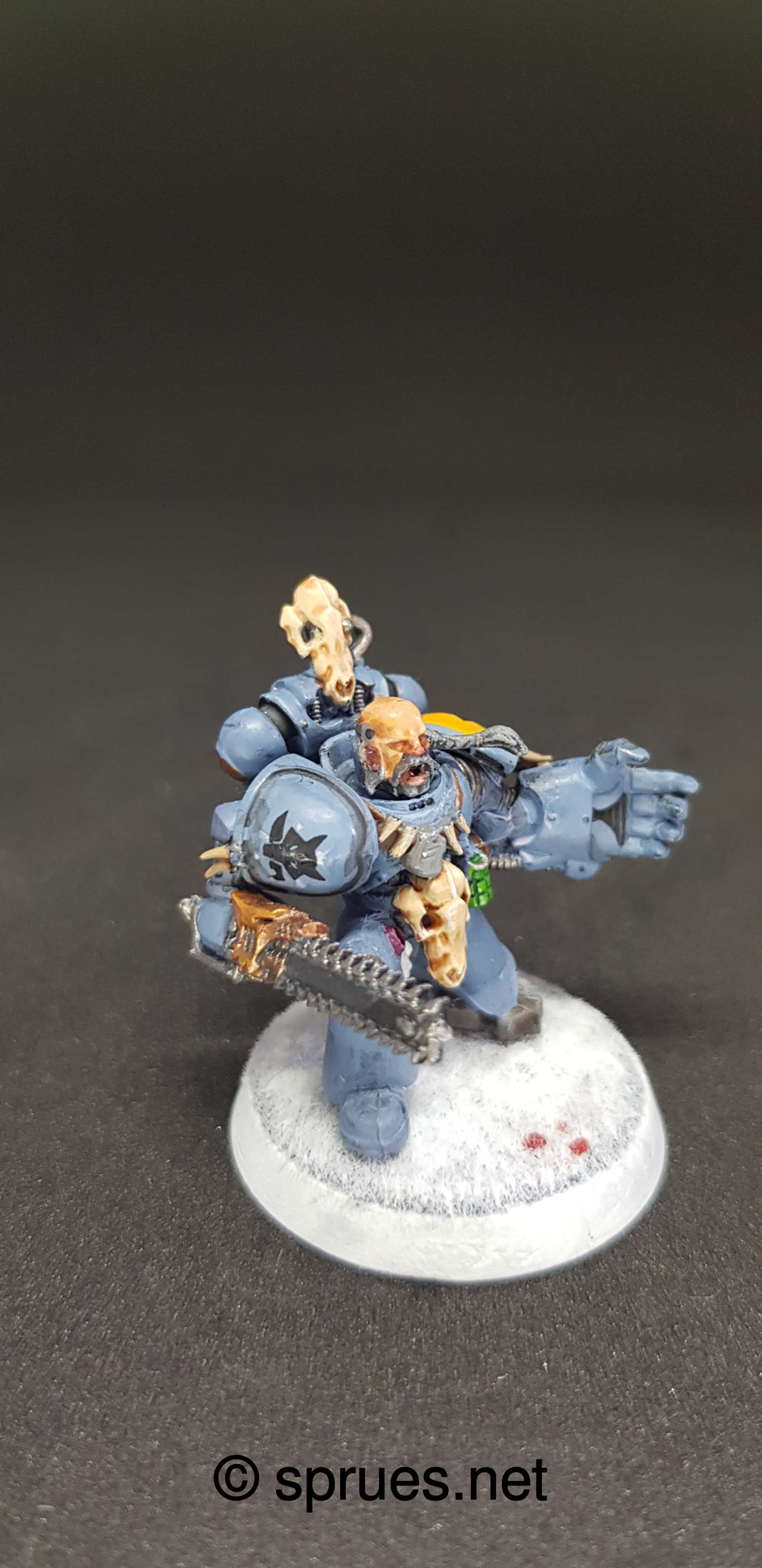 Raegrecs Blades are eight Grey Hunters that were deployed at Alric Prime. Each of them is equipped with a different weapon, mostly different sorts of blades. Okay they are not according to the Codex rules, related to the Lore not really uncommon for the Space Wolves Chapter. Furthermore take a look at the different Details of this Unit. So one of them take the helmet of a Dark Angel after a duel as trophy. Another one declare one Chainaxe from his enemy for himself after skirmish. One of them is taking care of different tracks. According to their pack sign on their should pads, most of them got a Wolf with Blade in black color, except from their pack leader who is wearing just an red wolf.
