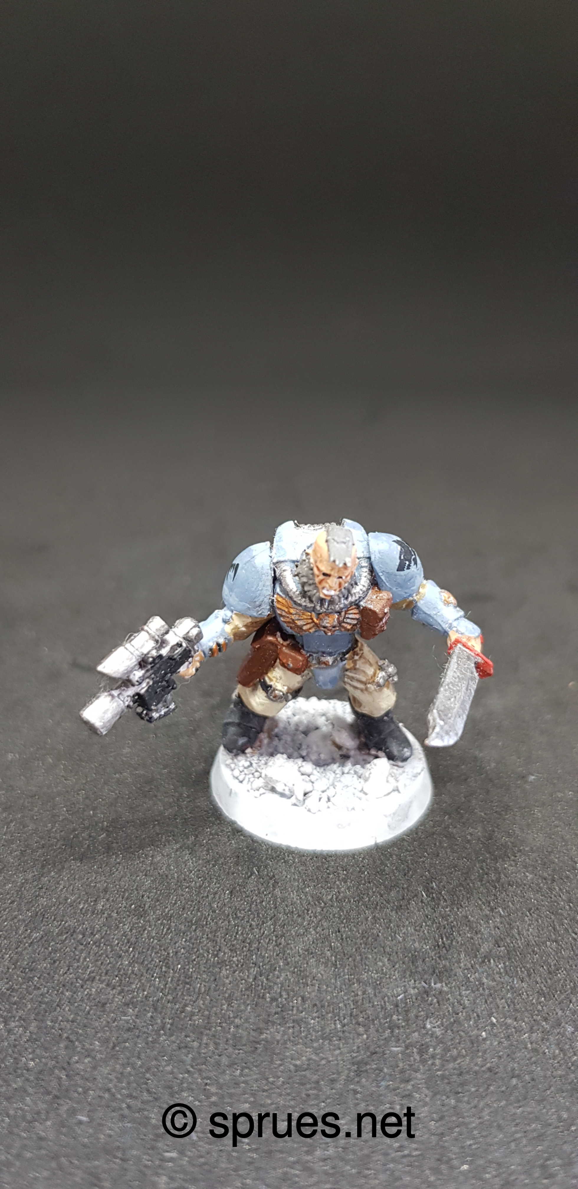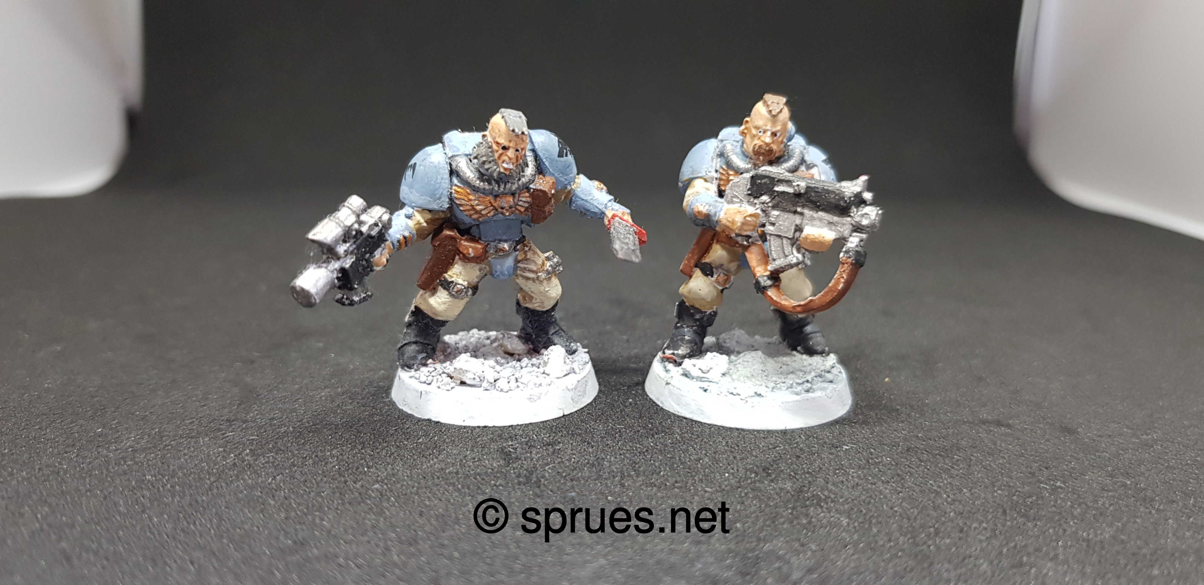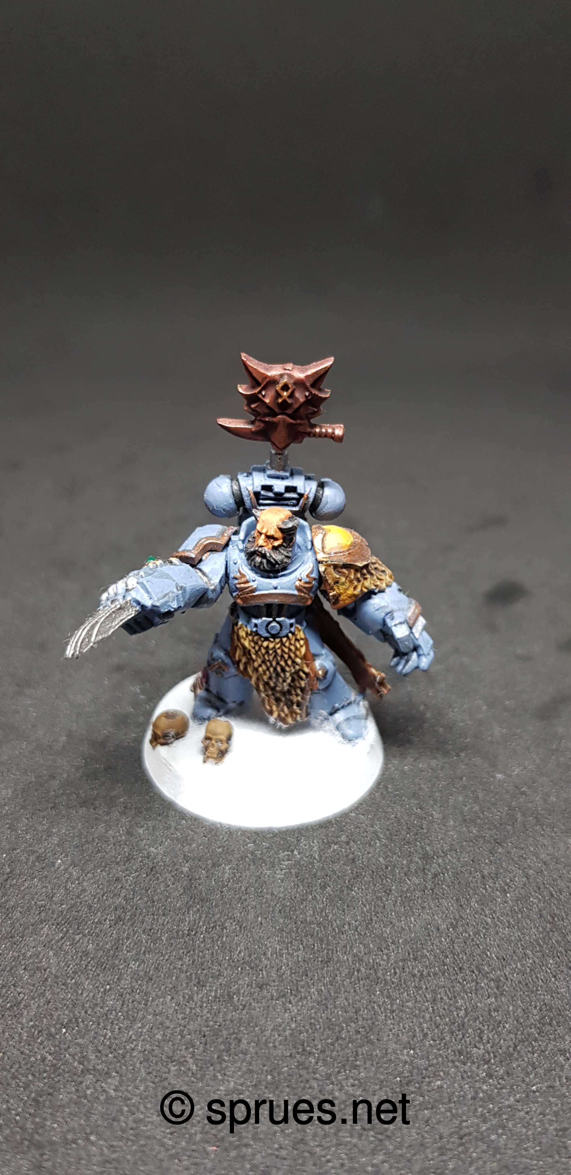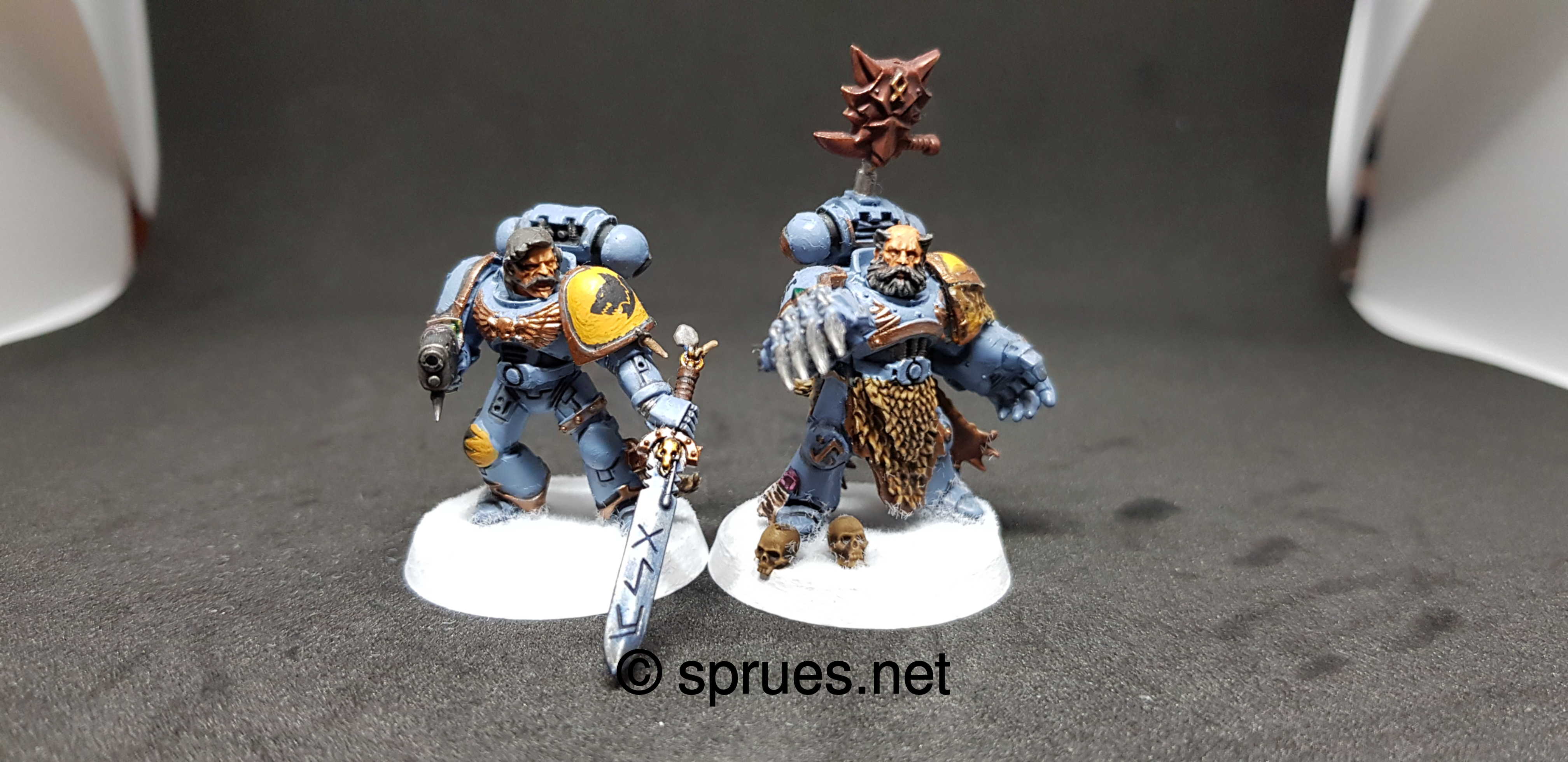 Raegrecs Blades are eight Grey Hunters that were deployed at Alric Prime. Each of them is equipped with a different weapon, mostly different sorts of blades. Okay they are not according to the Codex rules, related to the Lore not really uncommon for the Space Wolves Chapter. Furthermore take a look at the different Details of this Unit. So one of them take the helmet of a Dark Angel after a duel as trophy. Another one declare one Chainaxe from his enemy for himself after skirmish. One of them is taking care of different tracks. According to their pack sign on their should pads, most of them got a Wolf with Blade in black color, except from their pack leader who is wearing just an red wolf.