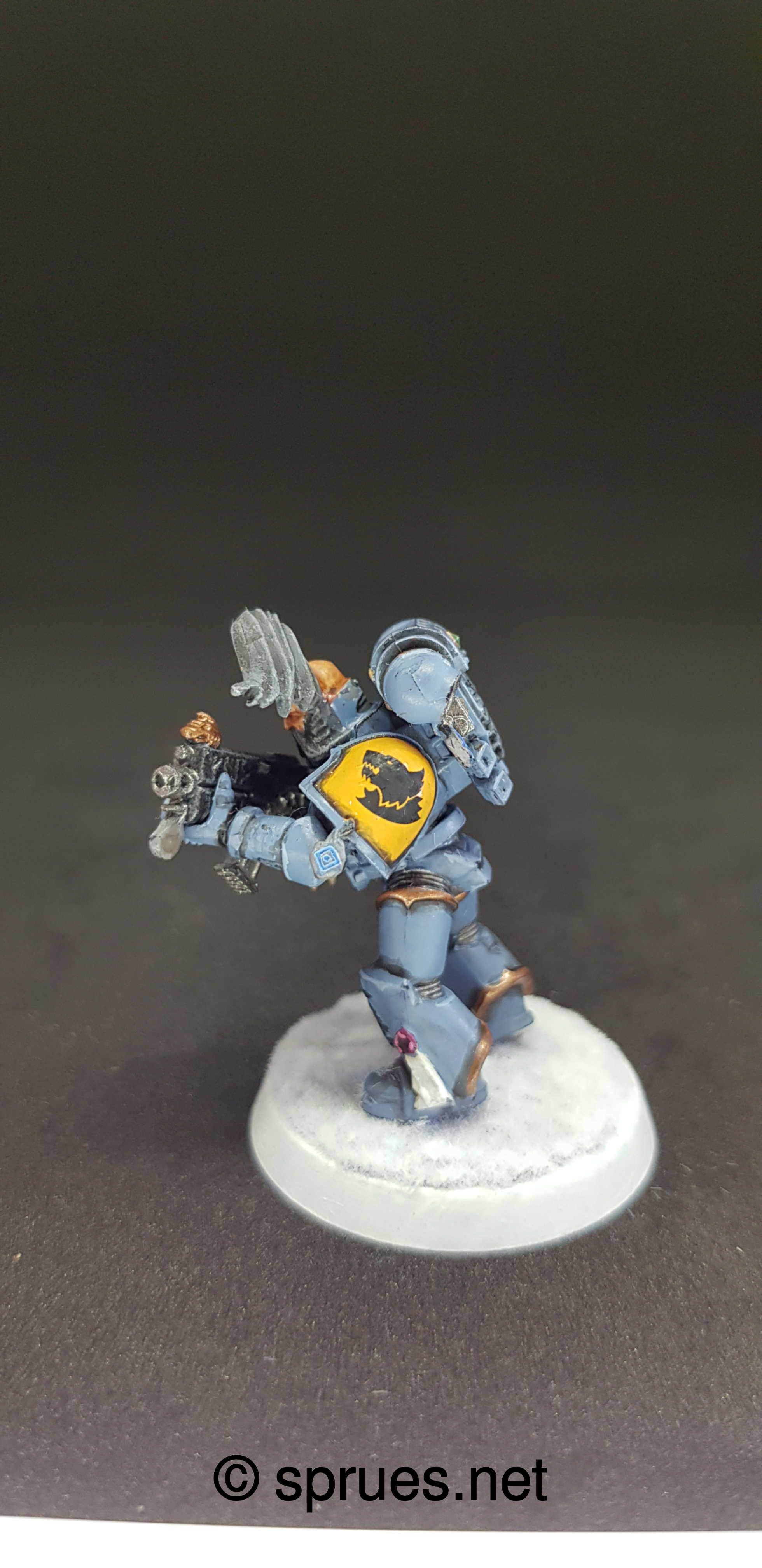 Thorfinn Doomseeker is a member of Ragnar Blackmanes Great Company and also Lone Wolf who fights on Alric Prime. Additionally to his Terminator Armor, Storm Bolter and Power fist he takes the shield of a Space Wolves #Dreadnought in front of him, dodging possible hits. A lot of glue was necessary for this Dreadnought shield to get in position. However he was just one of the three Lone Wolfs from Alric Prime Campaign, still need to model and paint the others.