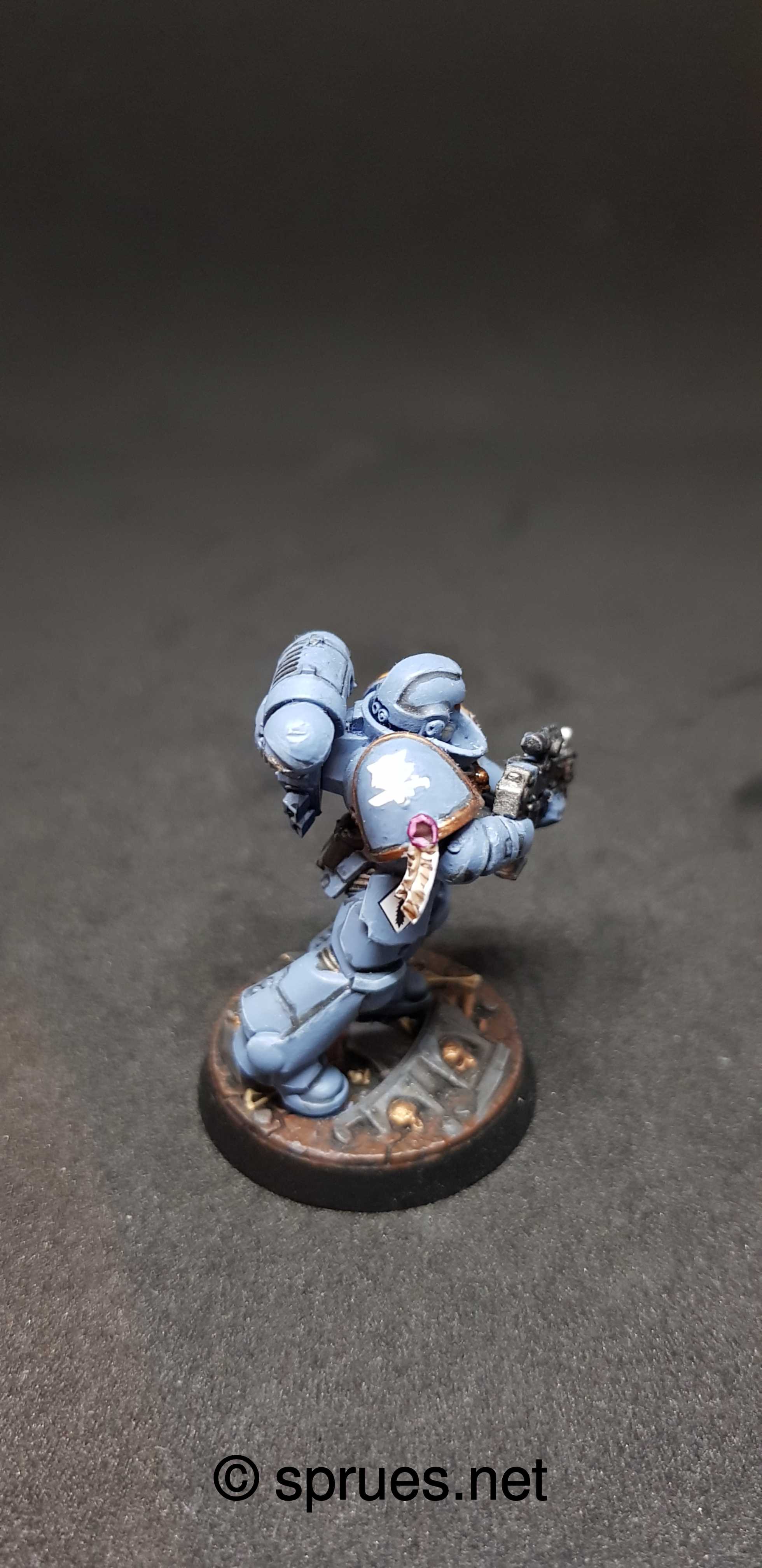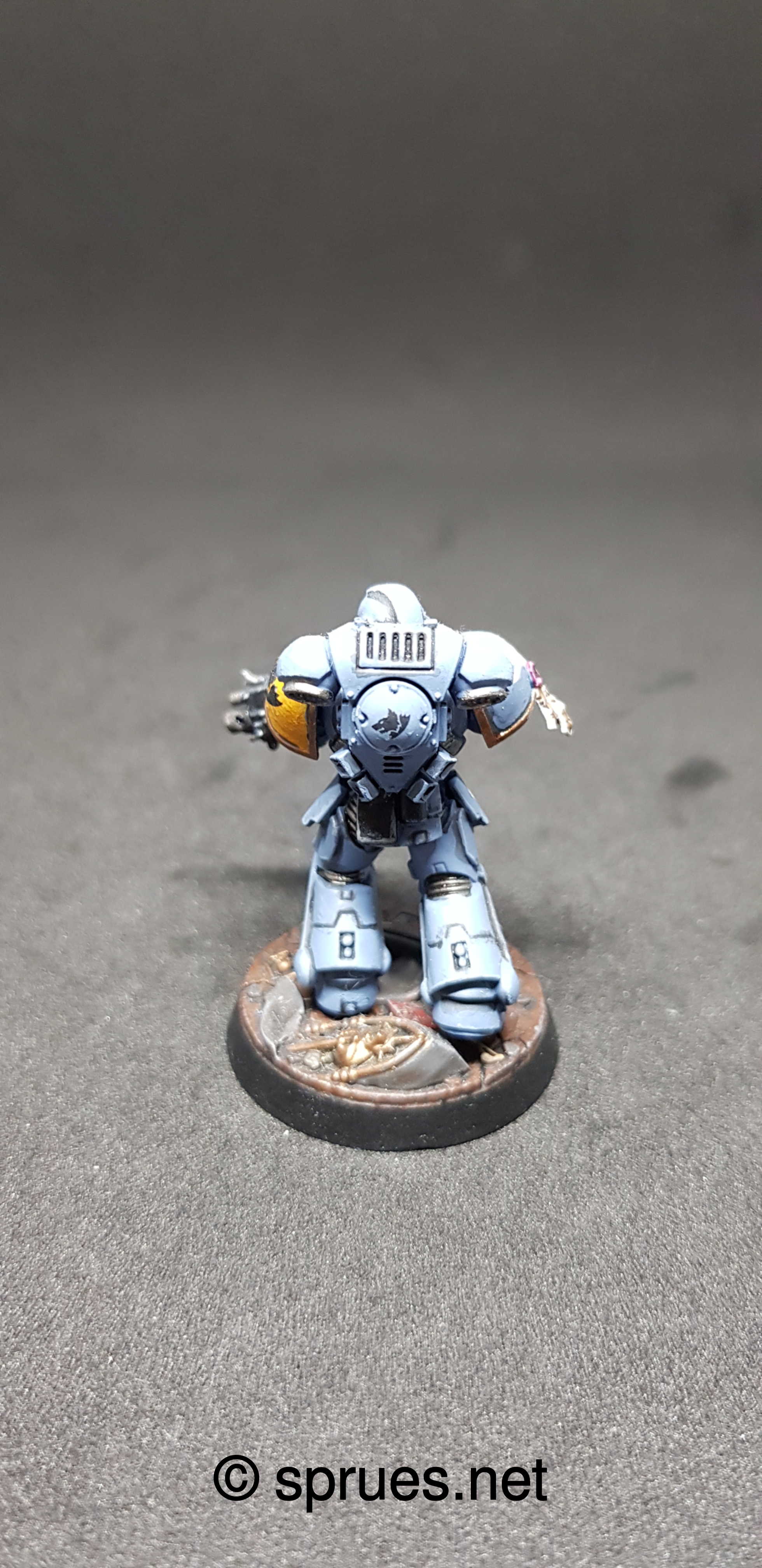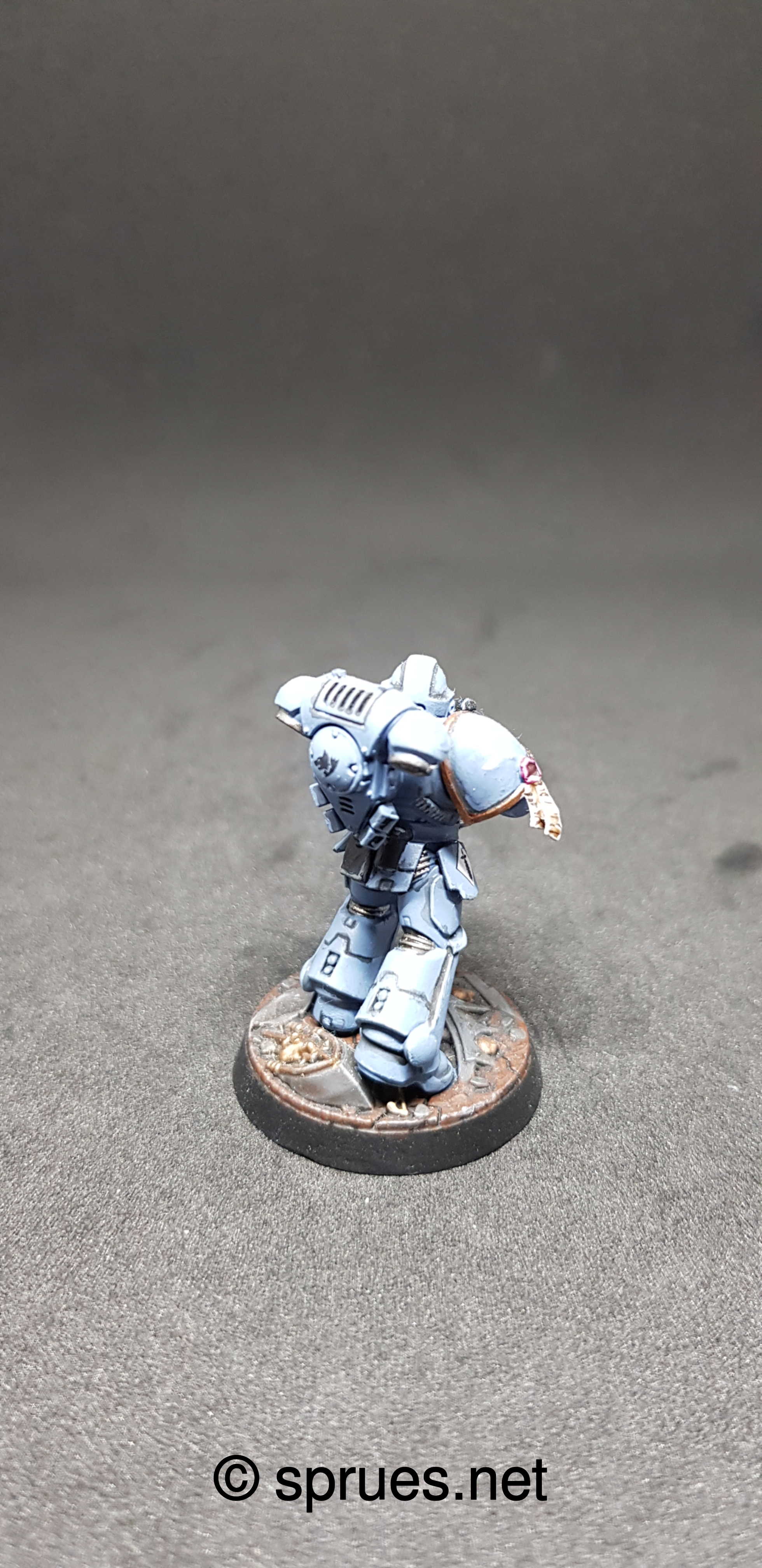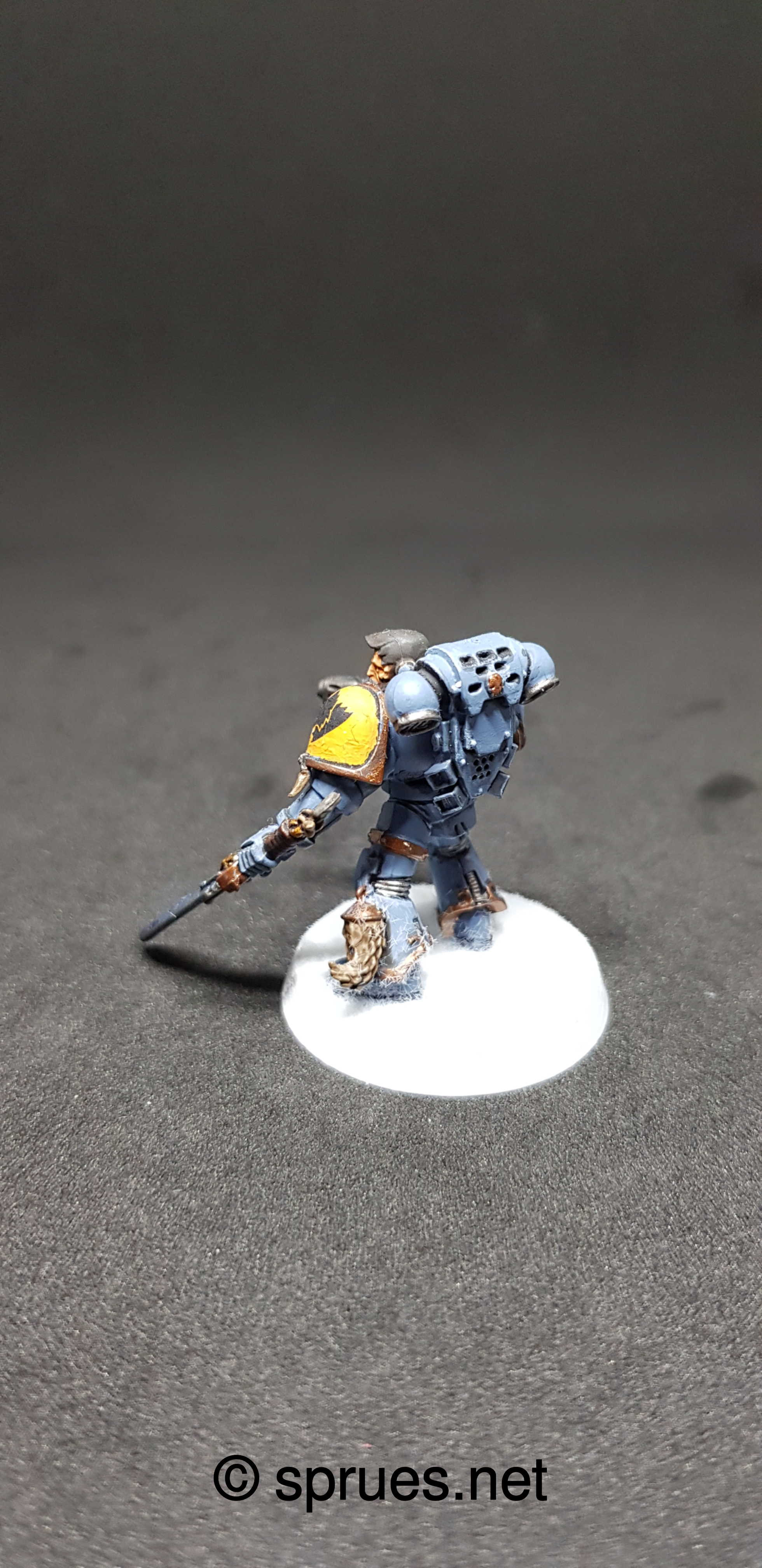 After Kurtha Seed's Legion Veteran Tatical Squad Rho I switch to Squad Sigma. They are really similar to Squad Rho, except from their bases. The basic idea, while Squad Rho is running for their lives on the surface of Calth, Squad Sigma displays a unit which already reach the underground. As they are seems to be more experienced, their armor is way more lettered with signs and scriptures. Also their left shoulder pads are altered with silver bolts. These bolts can also be seen on their legs.