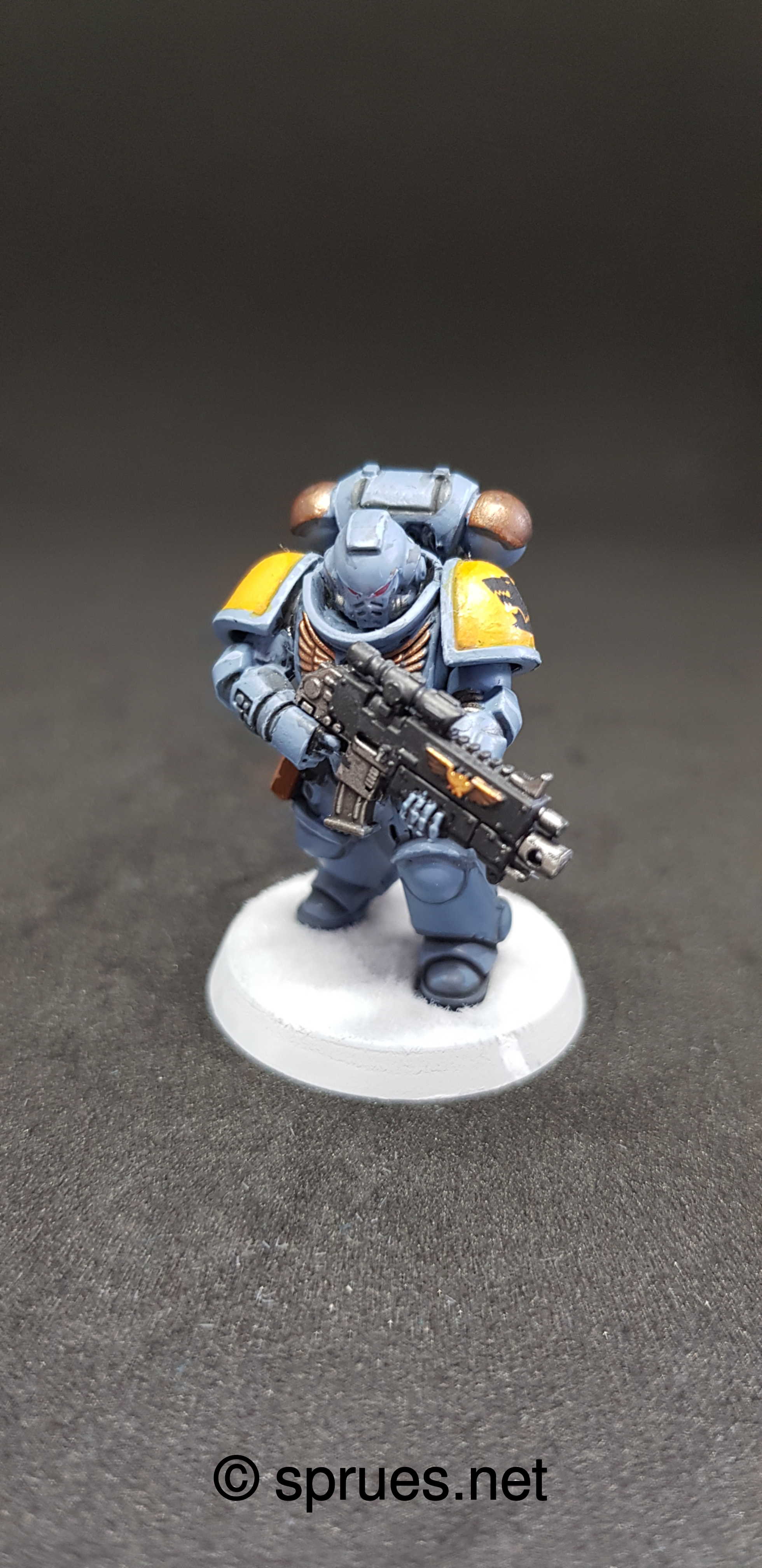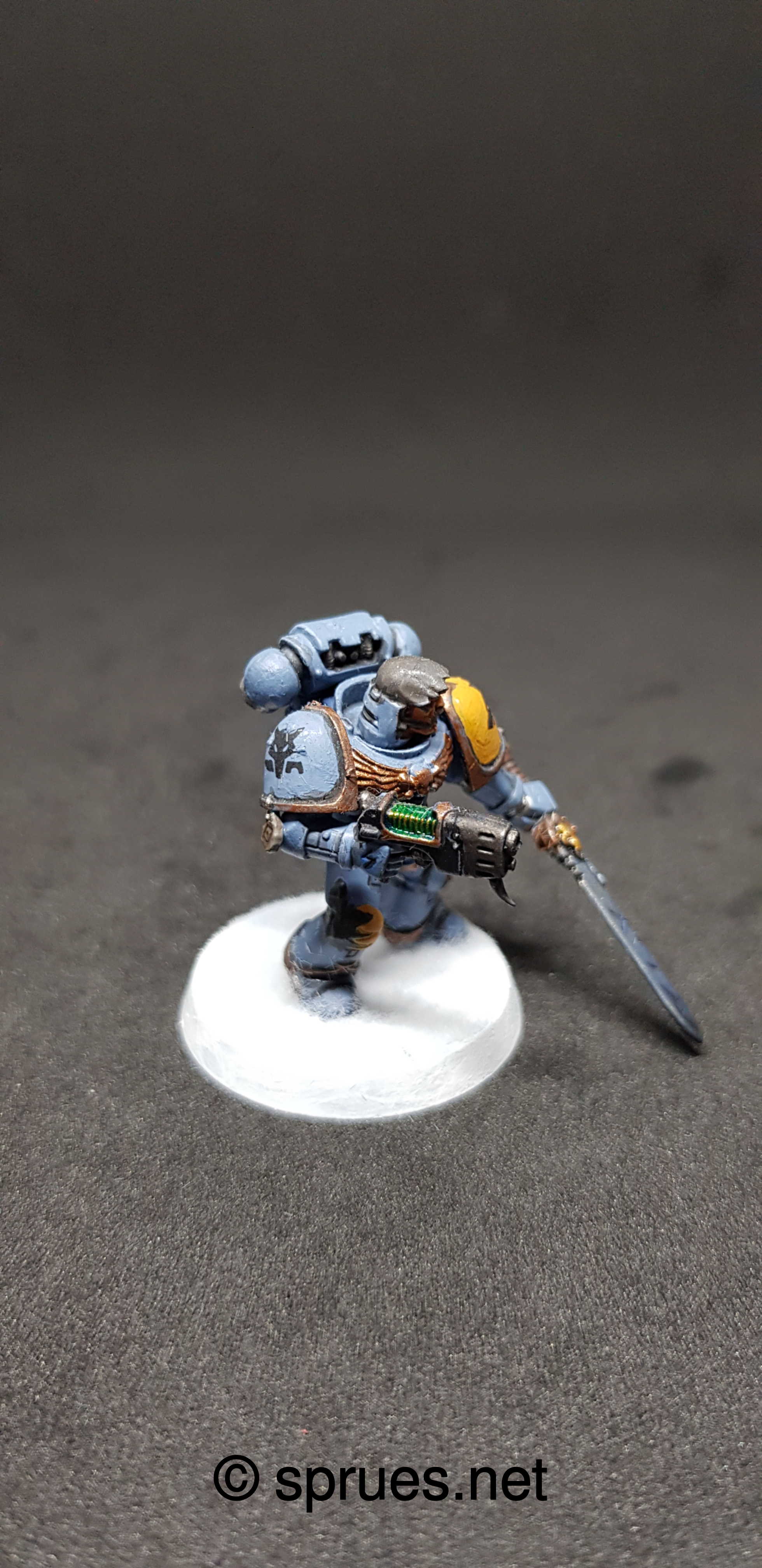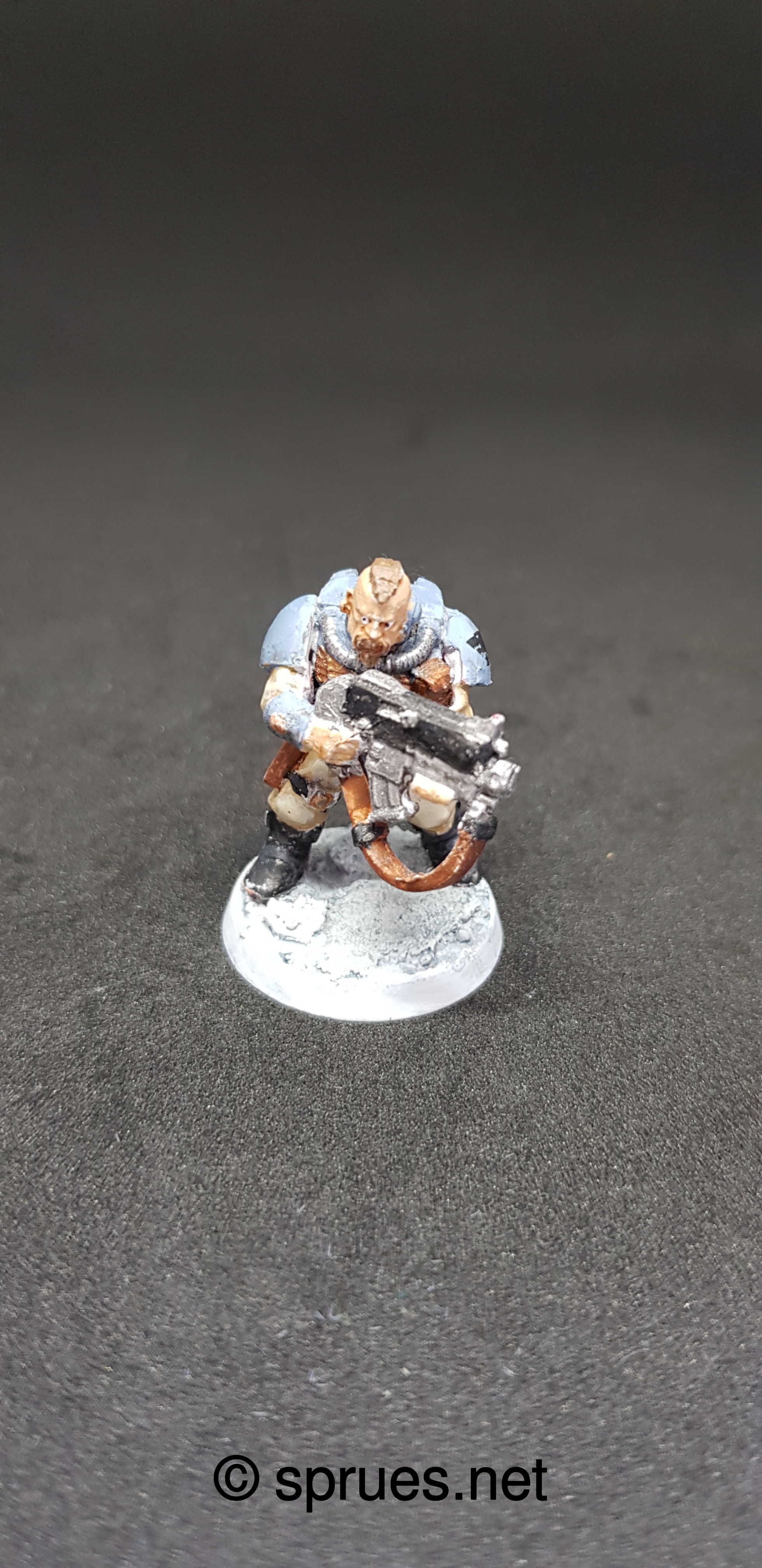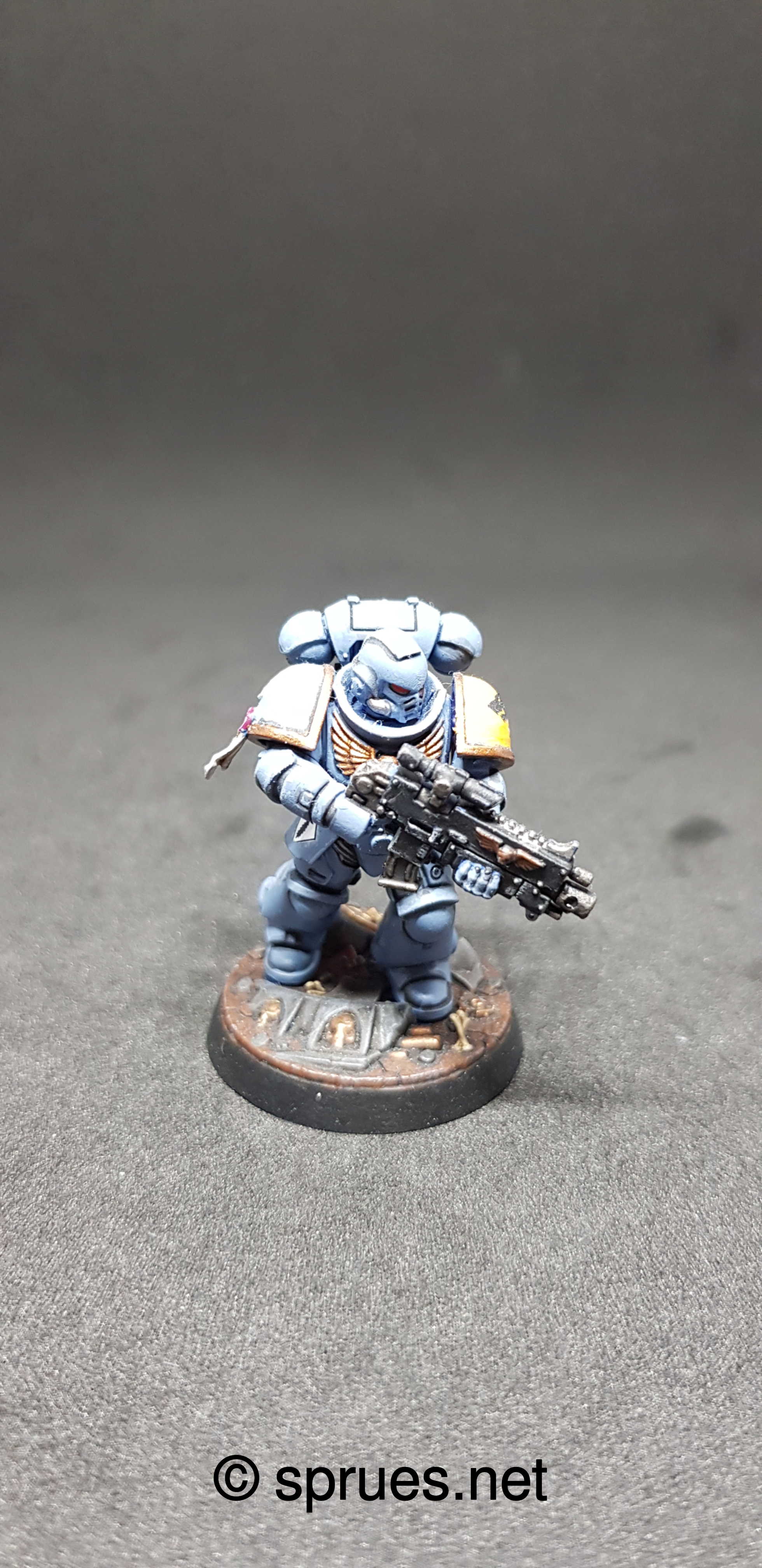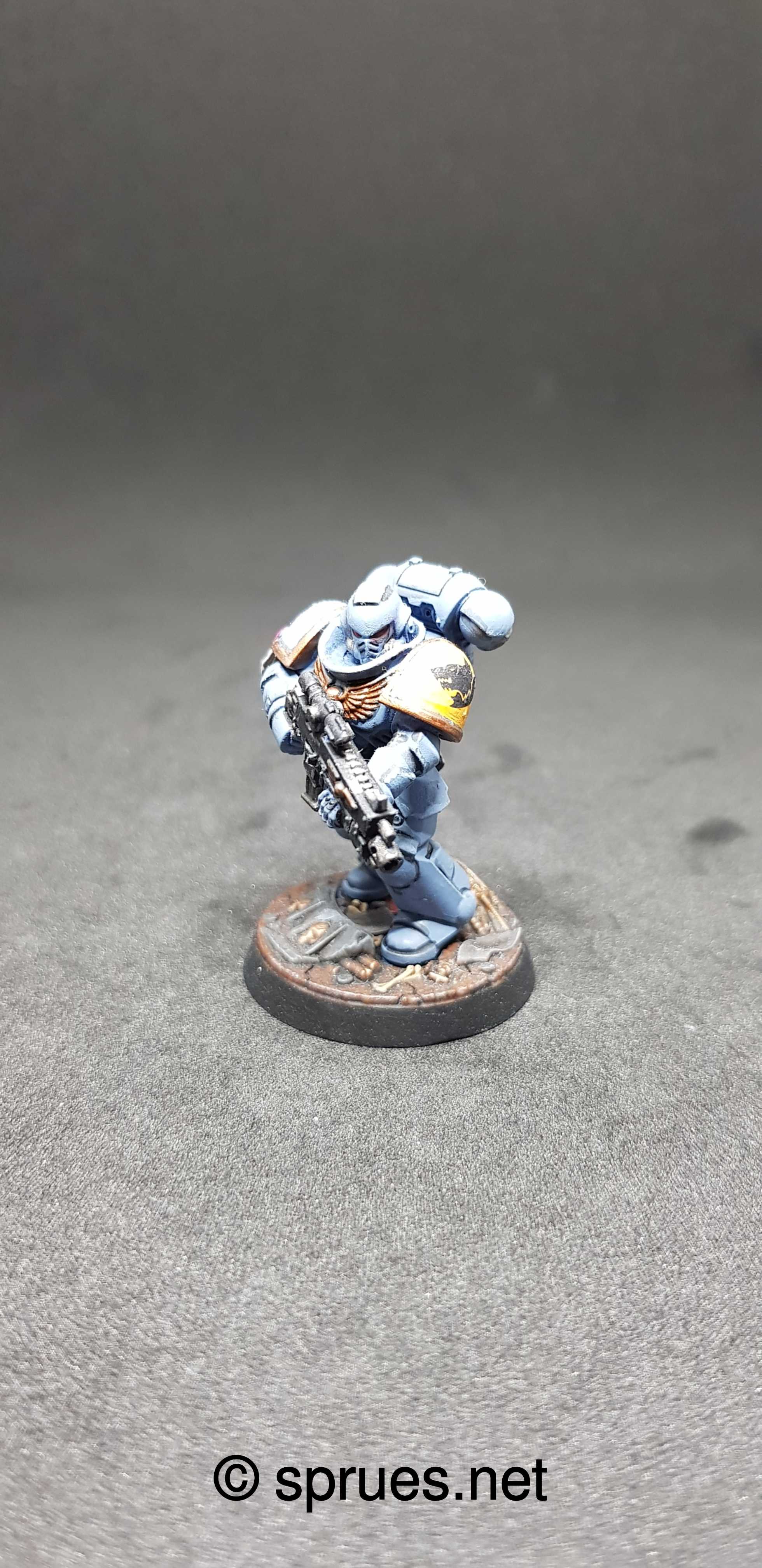 After Kurtha Seed's Legion Veteran Tatical Squad Rho I switch to Squad Sigma. They are really similar to Squad Rho, except from their bases. The basic idea, while Squad Rho is running for their lives on the surface of Calth, Squad Sigma displays a unit which already reach the underground. As they are seems to be more experienced, their armor is way more lettered with signs and scriptures. Also their left shoulder pads are altered with silver bolts. These bolts can also be seen on their legs.