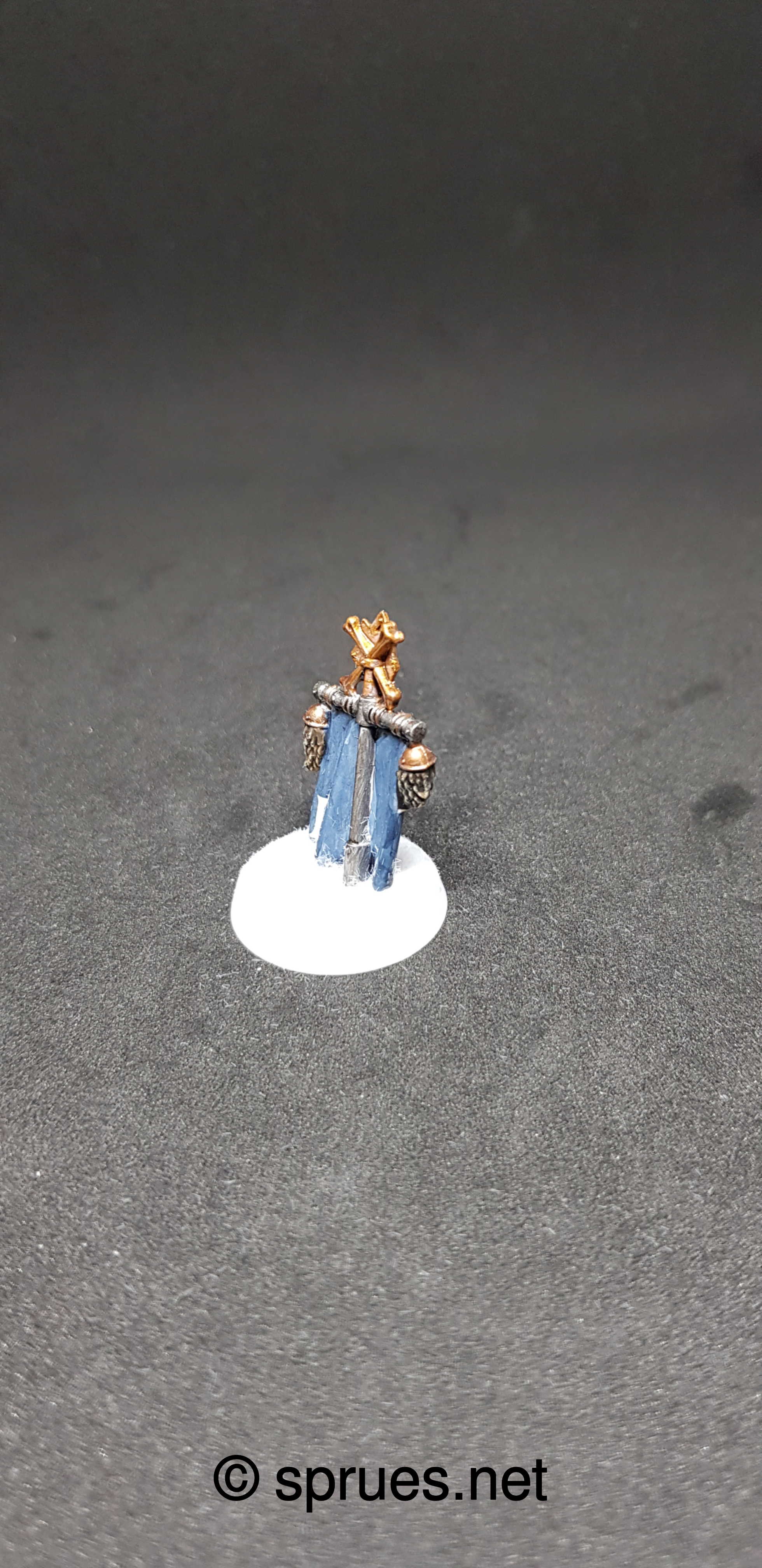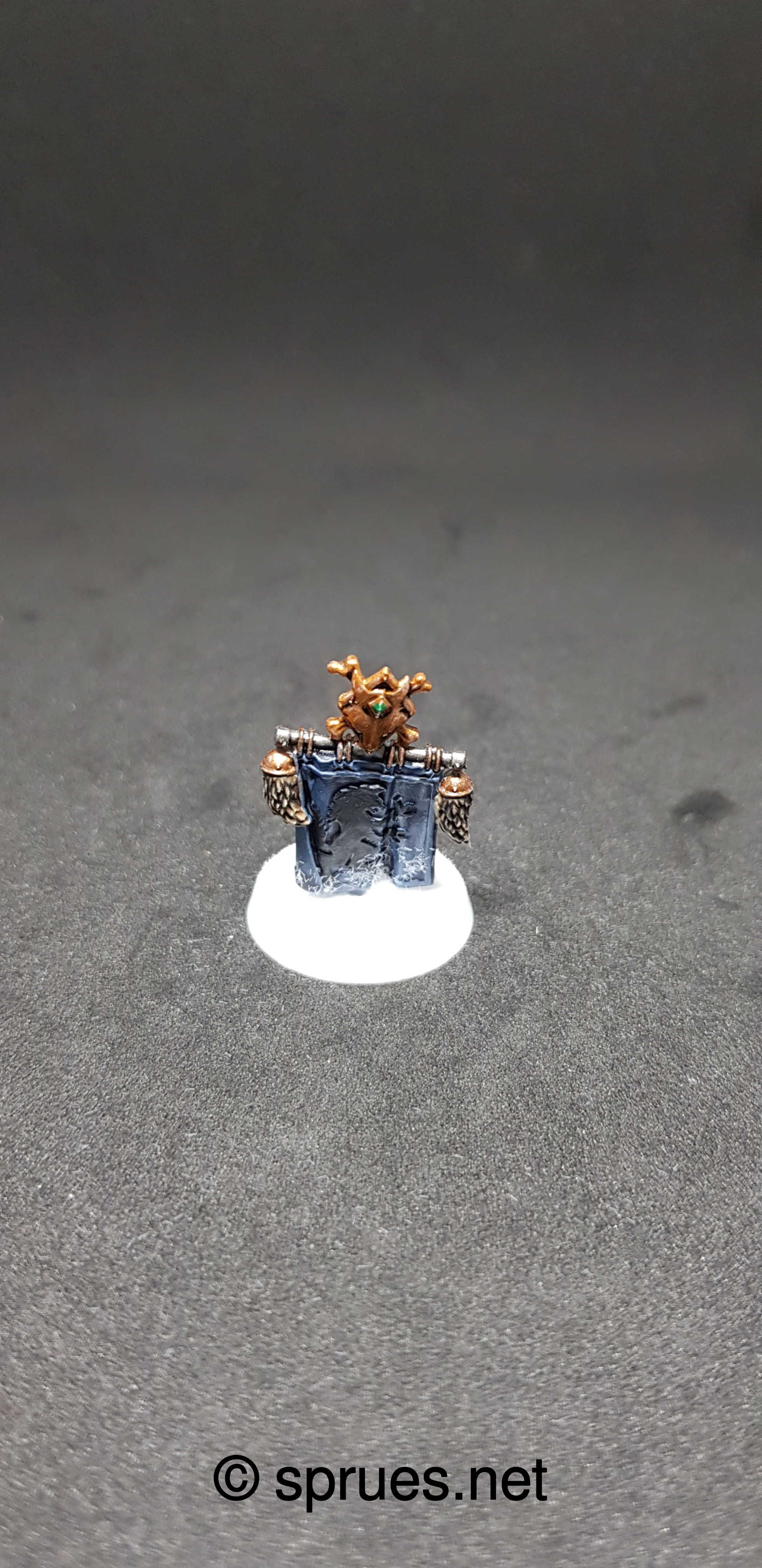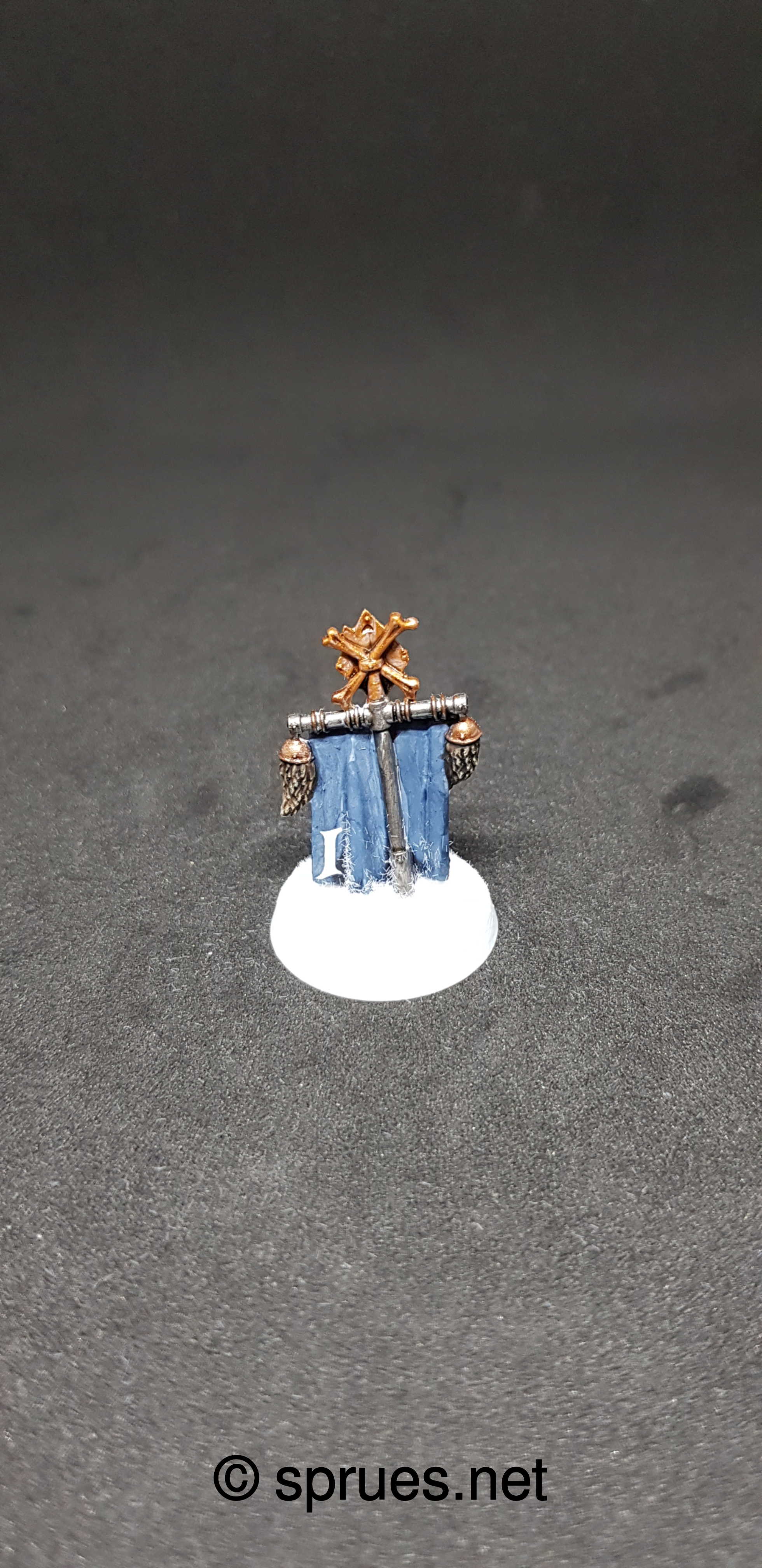 This banner act as an object marker for our skirmish games. It represent a Company banner for Logan Grimnars Great Company. The back of the banner displays a one as roman number, just to get count of it, during the gameplay. At least five more object markers like this one needs to be finish.