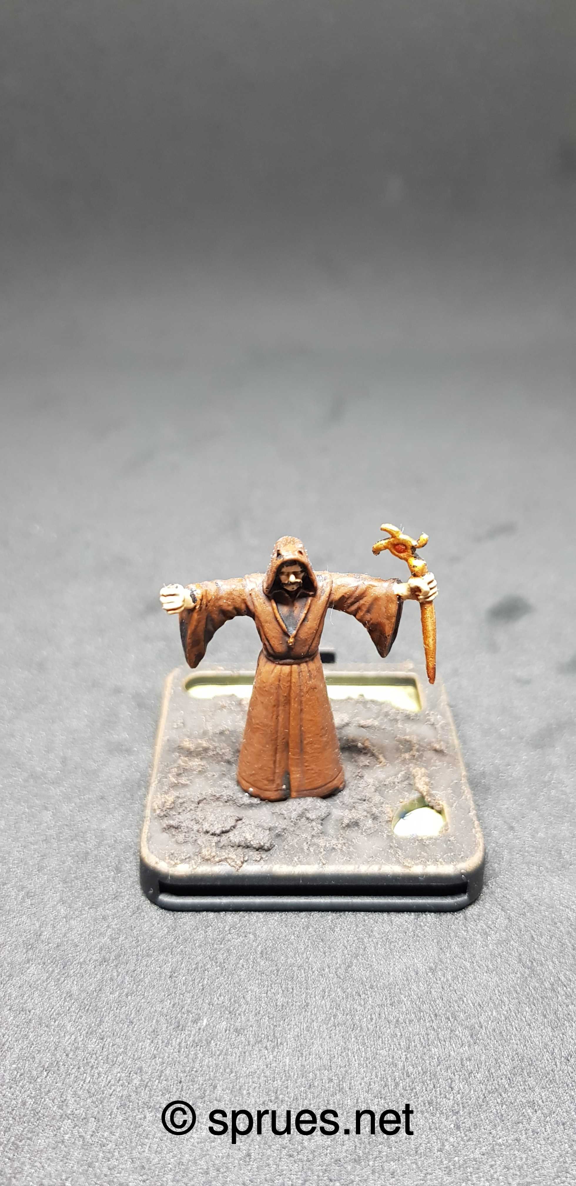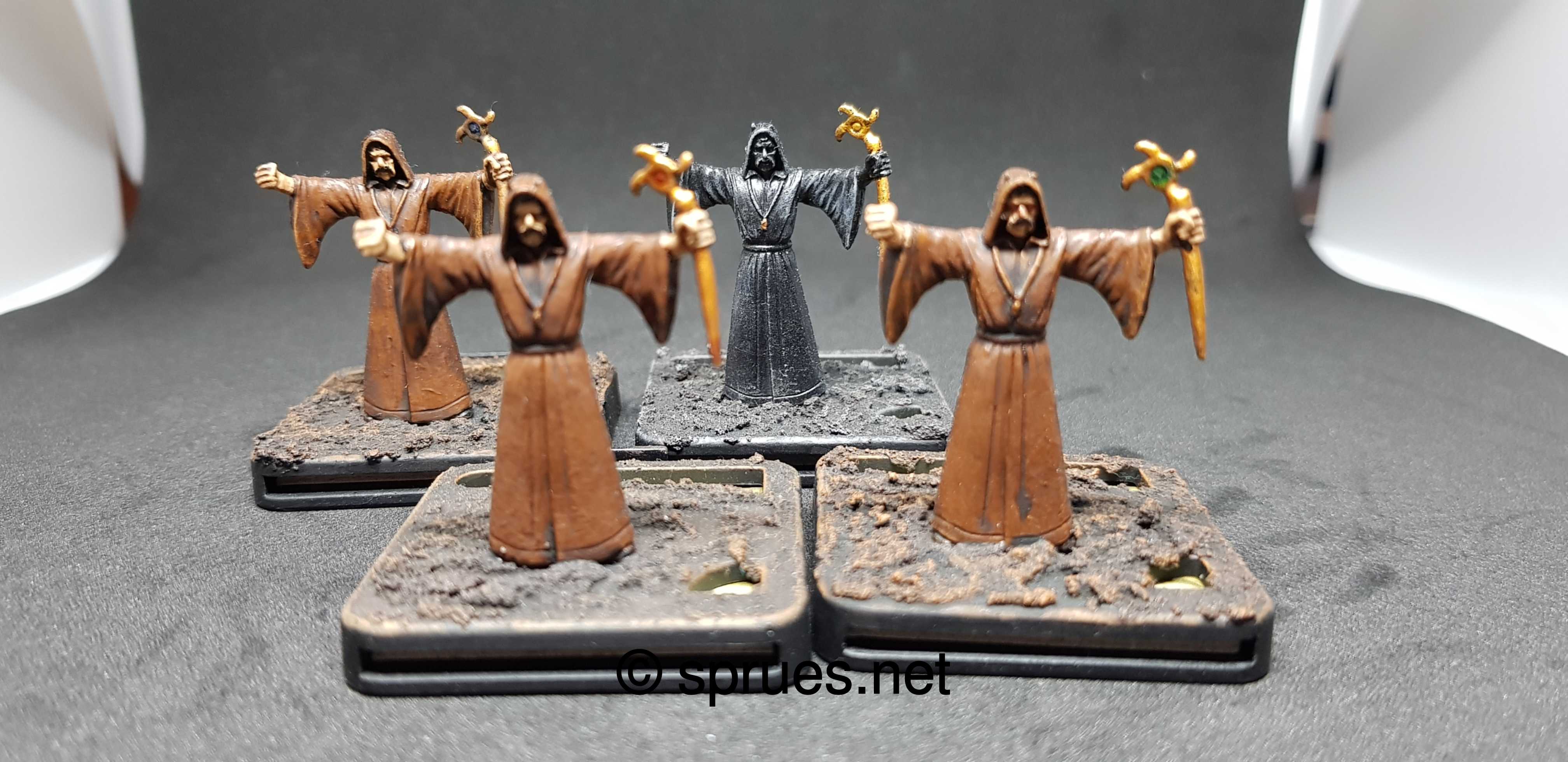 Models from Games Workshop contains often a lot of details. This is in fact really awesome, but it take times to paint them. A lot of time and often these painting process is more complex. So I decided to paint less detailed models, with just basic and fast technics. For this purpose the game Mansions of Madness is perfect. For beginning the Cultists models where chosen. Brown base paint, complete shading and dry brush at the end. Same goes for the basing.