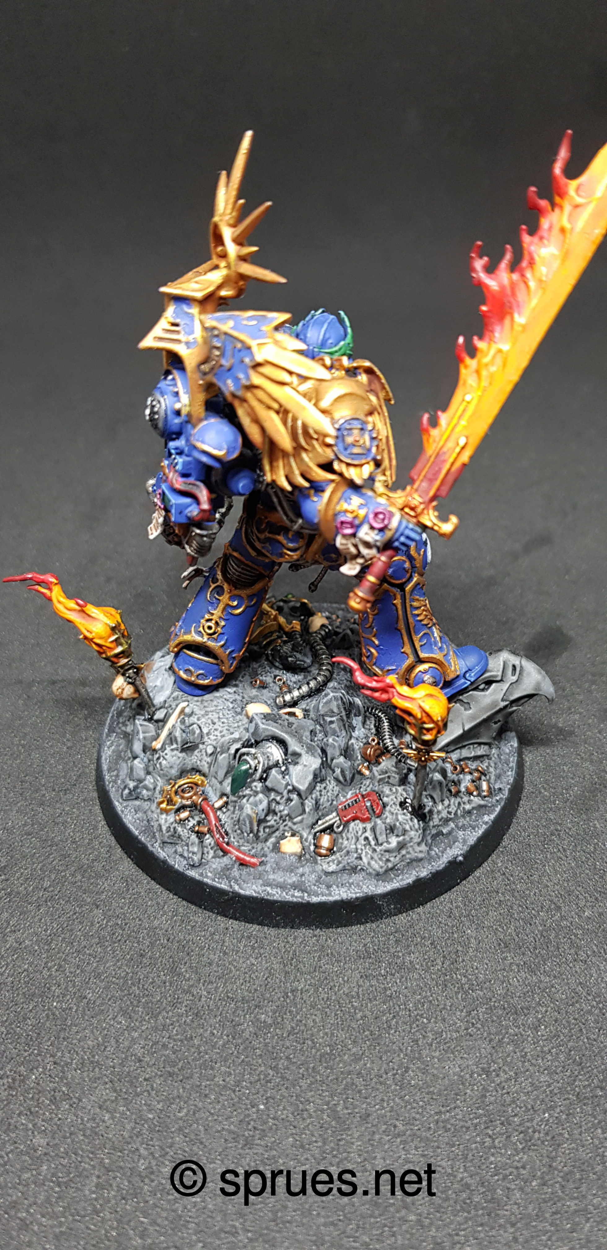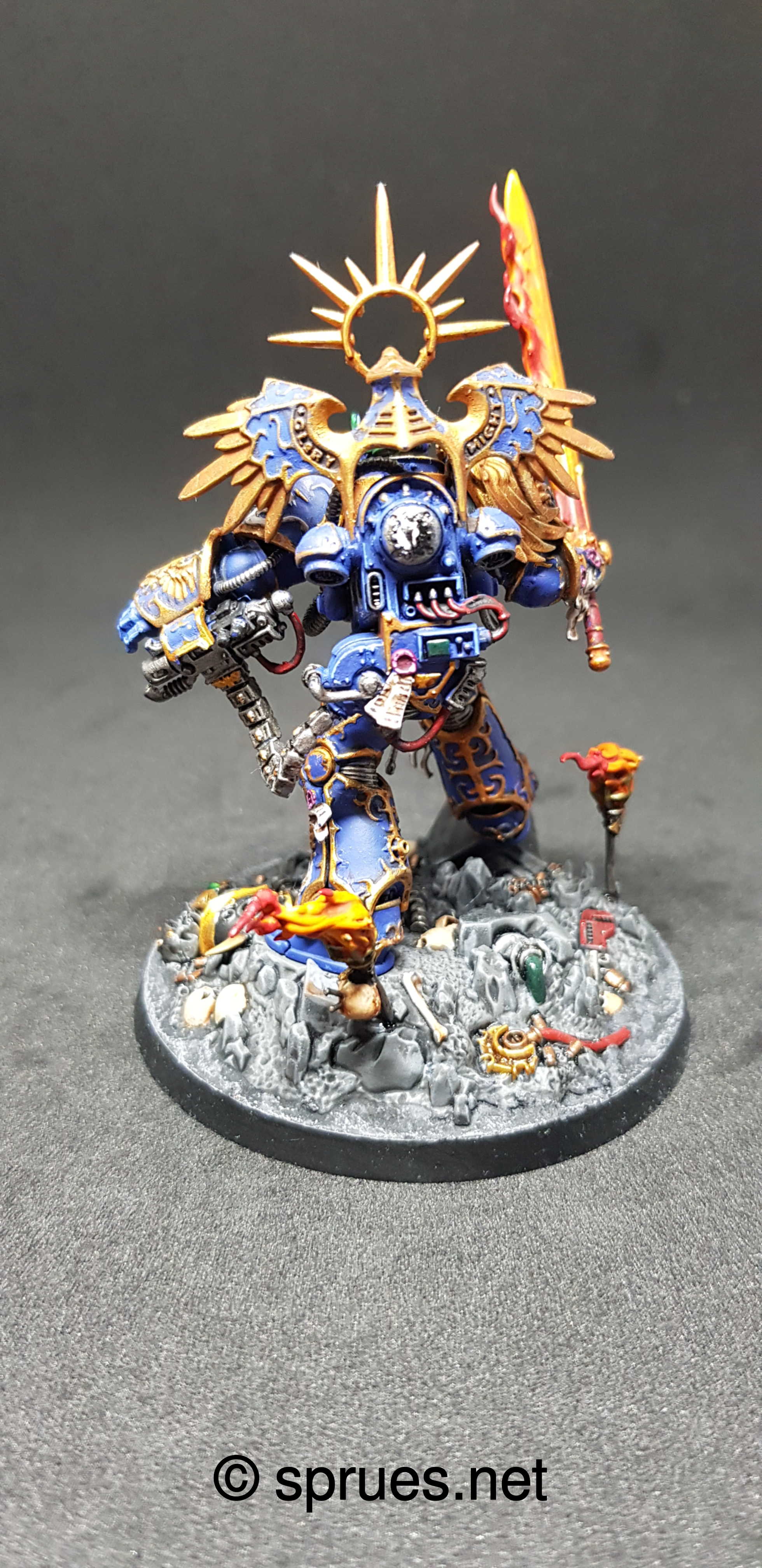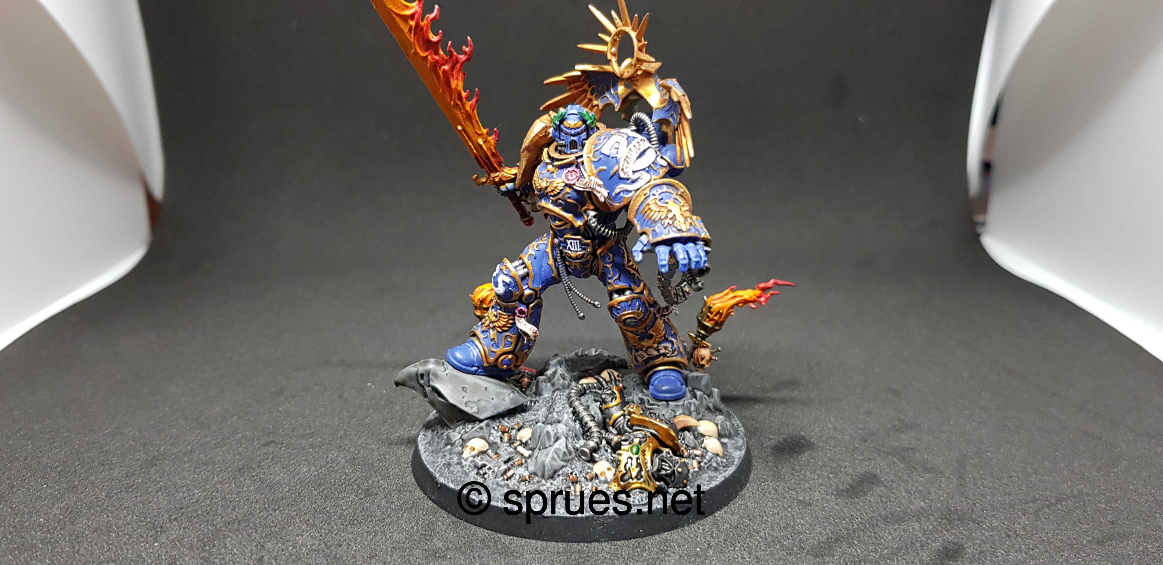 Most annoying model painting so far... The model was sub assembly and blue was chosen as base color. Still not sure which base color is more comfortable to go: blue or gold. Blue basecoat means painting all gold details and at least I can tell you, that’s terrible annoying. Start with gold basecoat means painting all reassess blue, sounds also not easy. However painting these model in sub assembly makes a lot of things easier, except from the cables. The whole painting process takes round about six months. Mostly related to all the gold Details. First four months every other model on the palette was painted, before focusing on Roboute Guilliman himself.