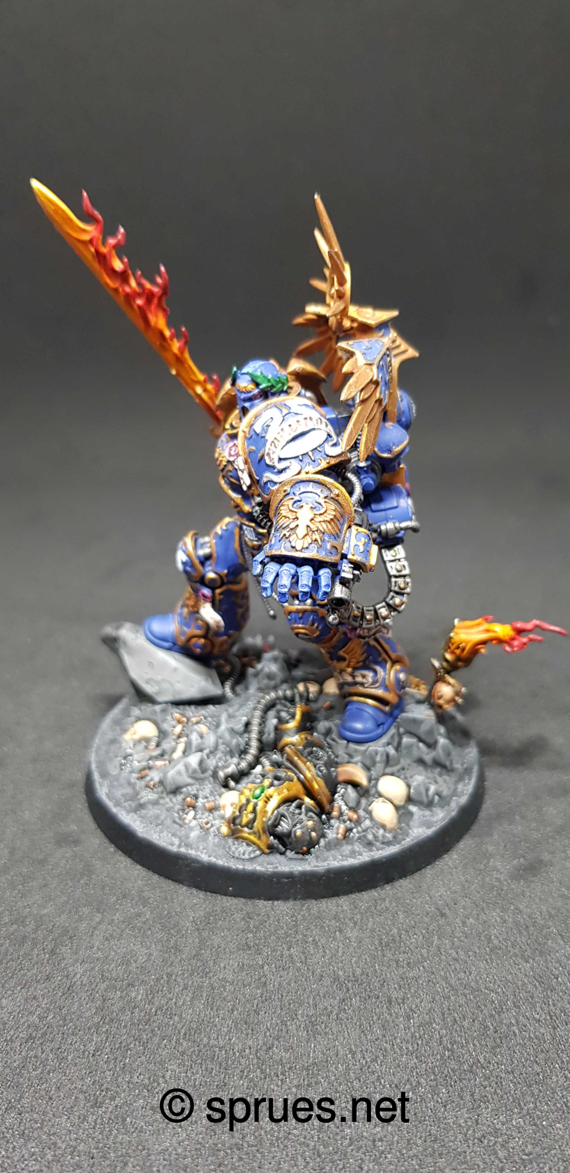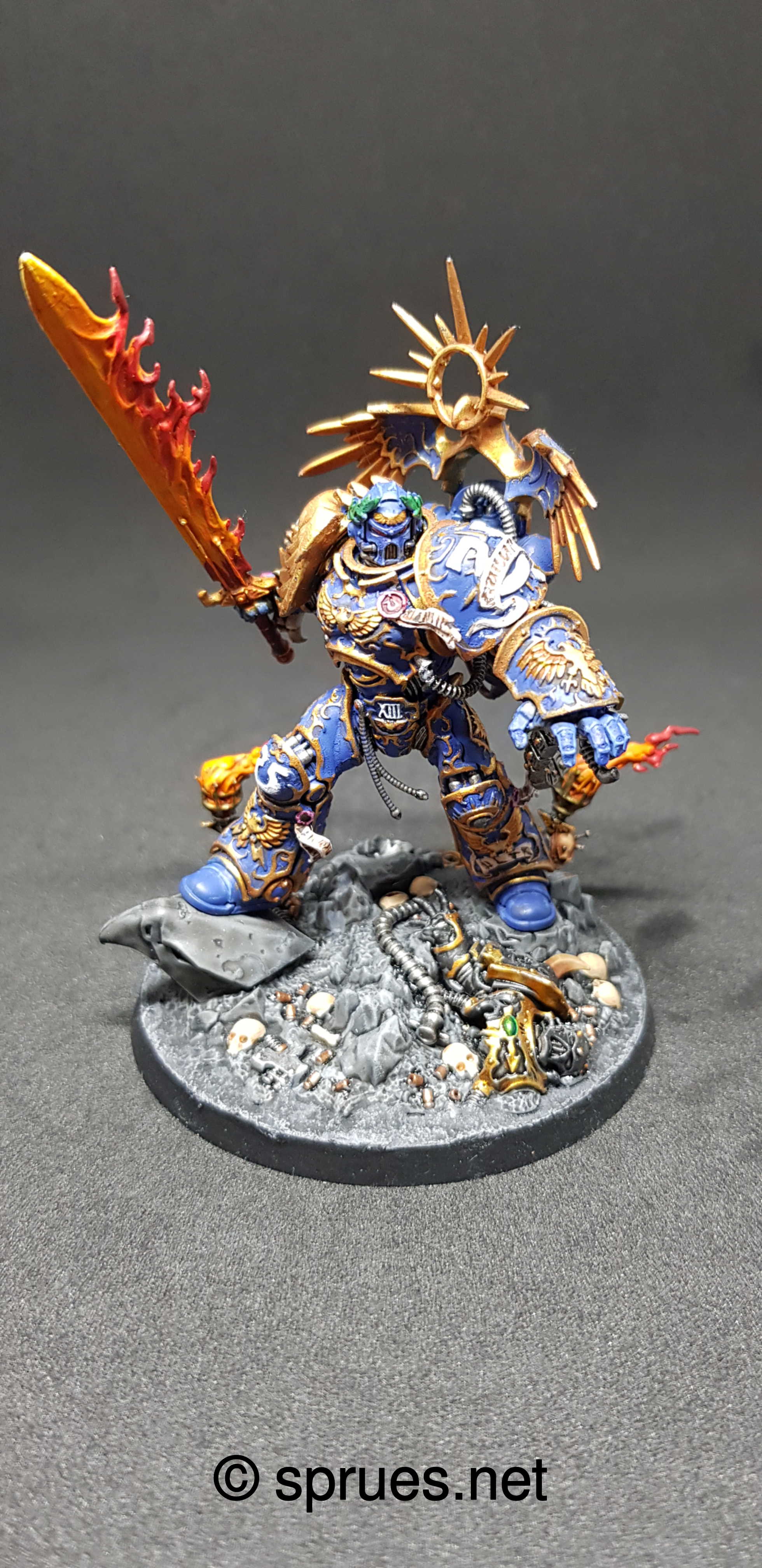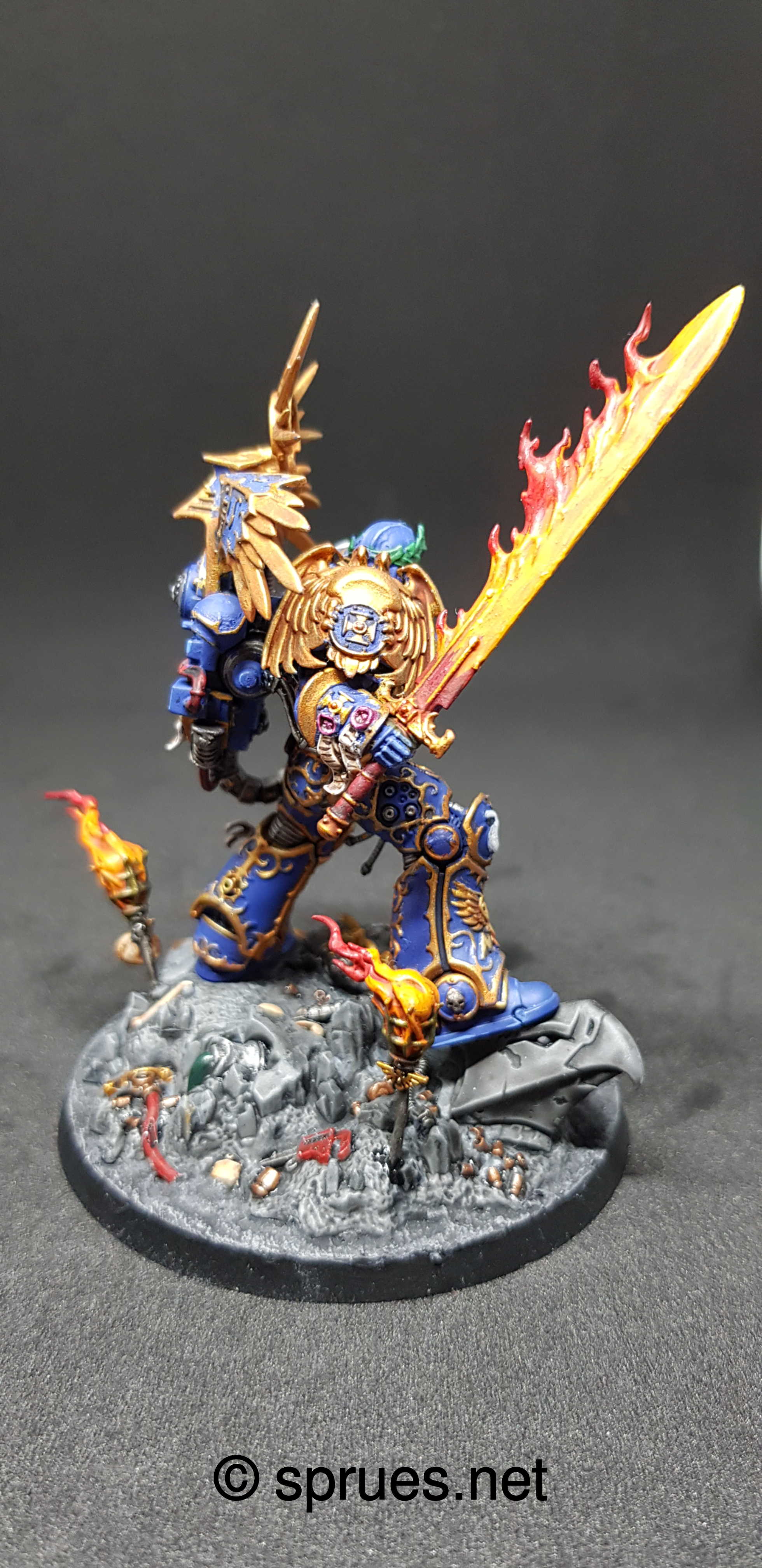 Most annoying model painting so far... The model was sub assembly and blue was chosen as base color. Still not sure which base color is more comfortable to go: blue or gold. Blue basecoat means painting all gold details and at least I can tell you, that’s terrible annoying. Start with gold basecoat means painting all reassess blue, sounds also not easy. However painting these model in sub assembly makes a lot of things easier, except from the cables. The whole painting process takes round about six months. Mostly related to all the gold Details. First four months every other model on the palette was painted, before focusing on Roboute Guilliman himself.