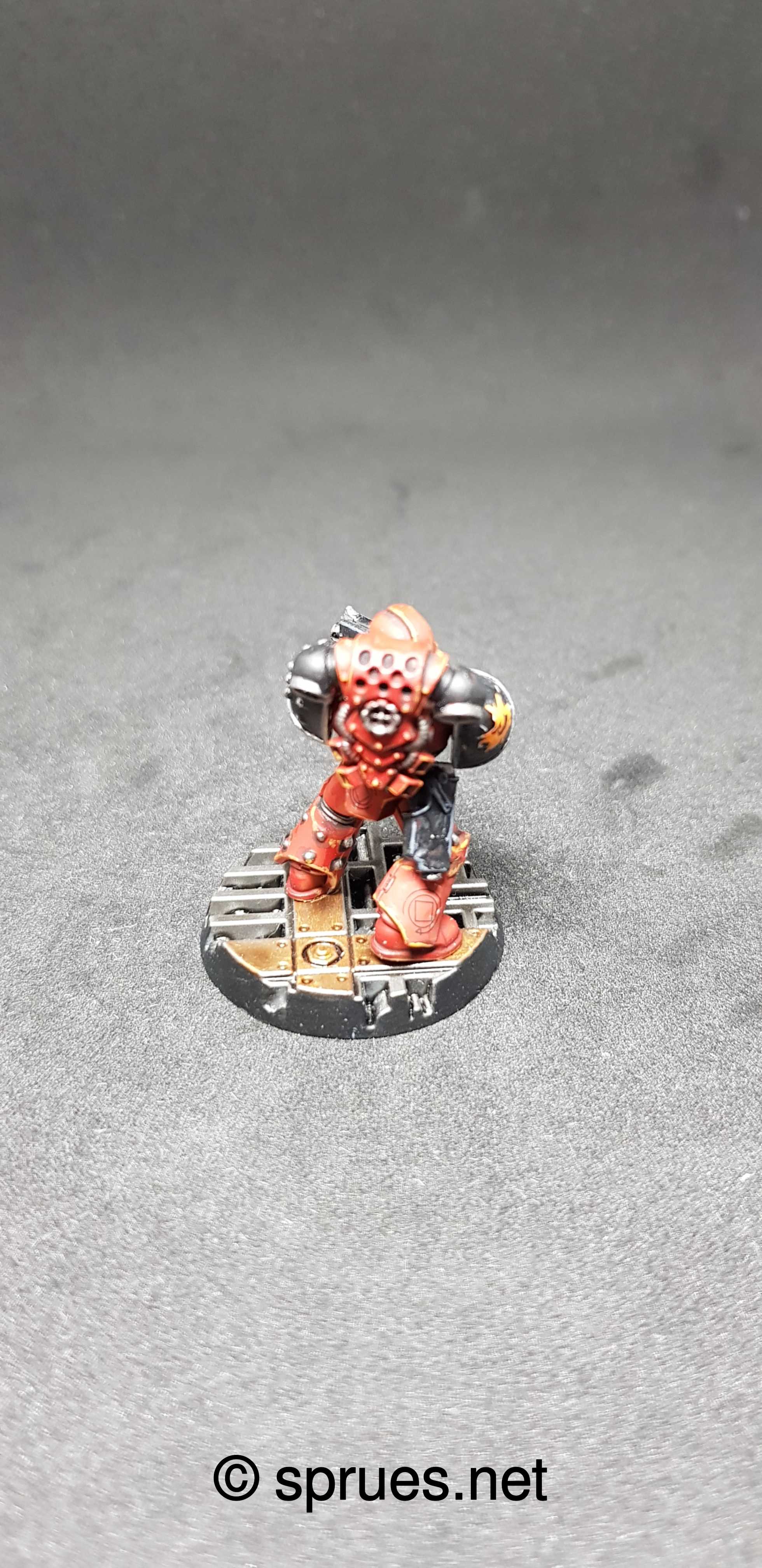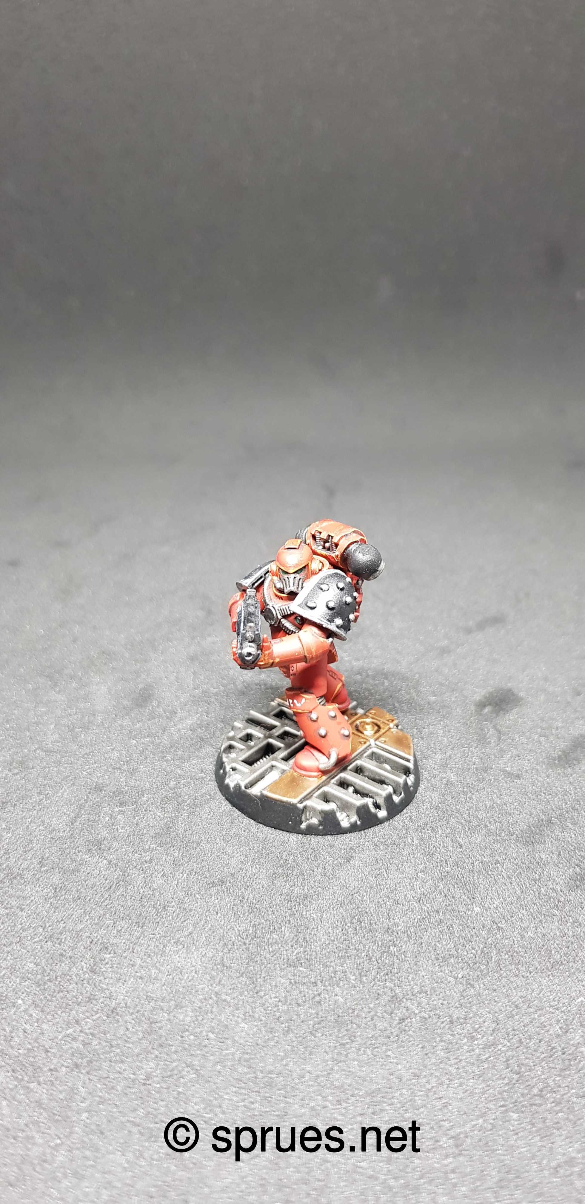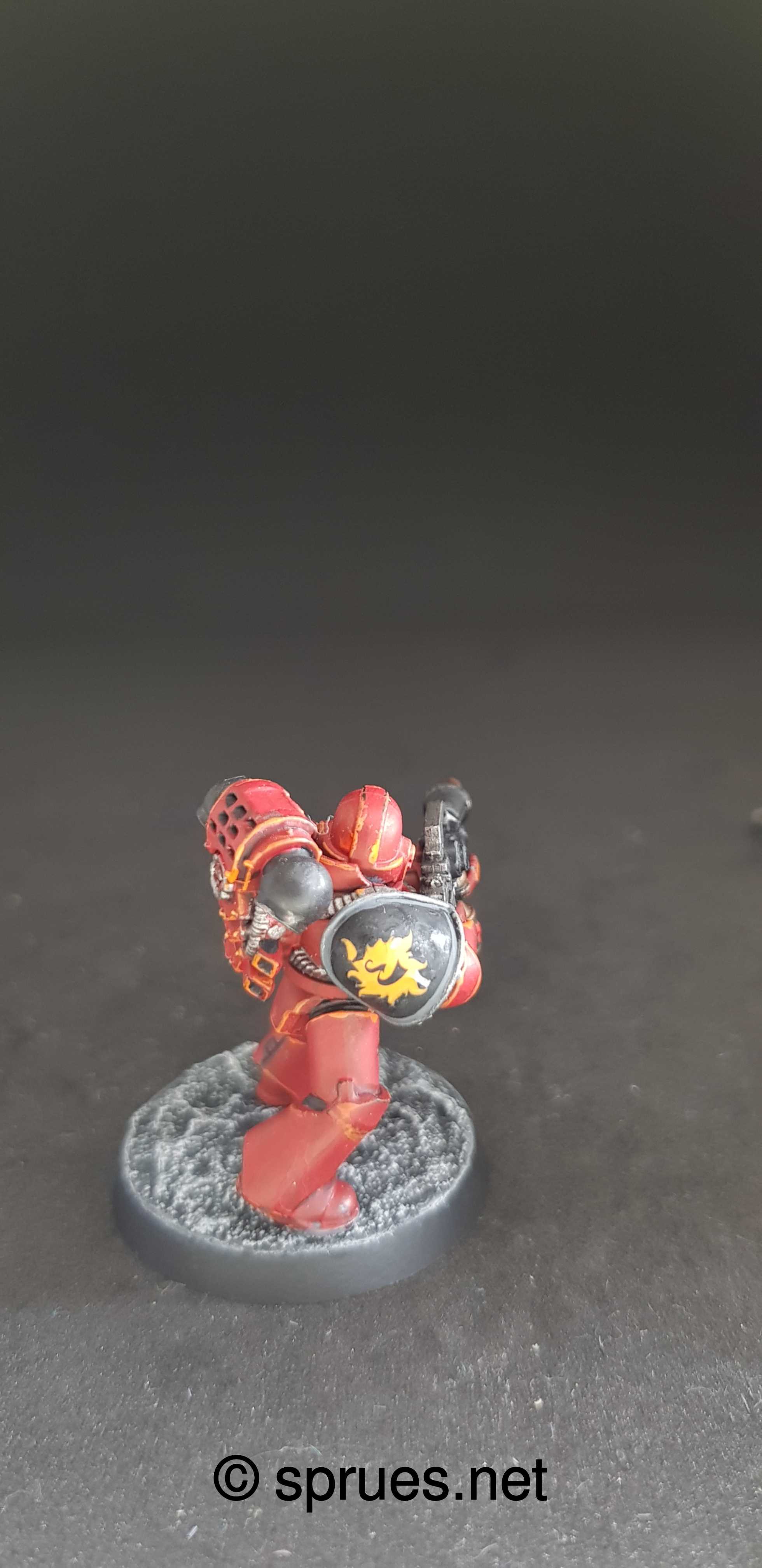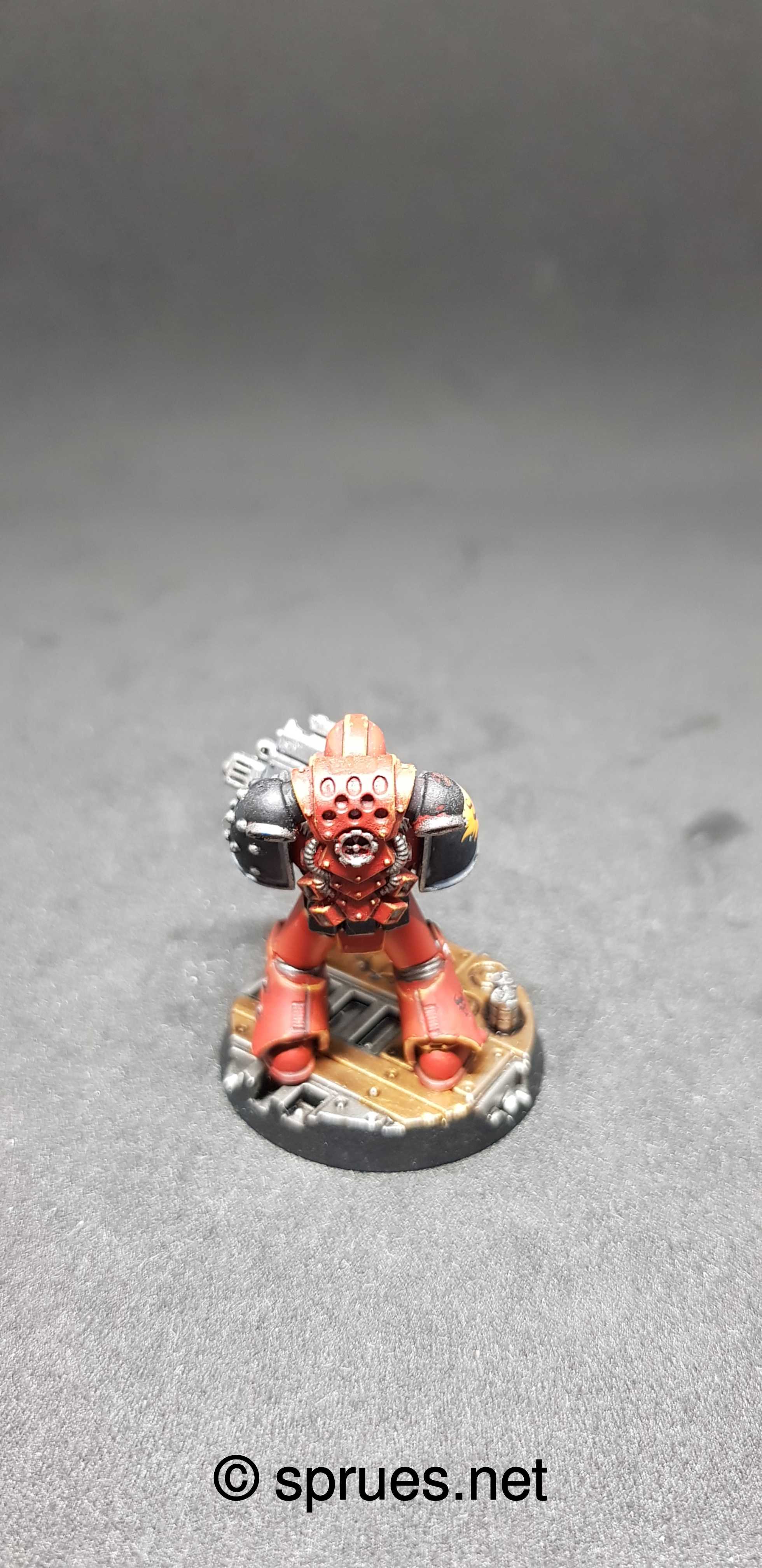 After Kurtha Seed's Legion Veteran Tatical Squad Rho I switch to Squad Sigma. They are really similar to Squad Rho, except from their bases. The basic idea, while Squad Rho is running for their lives on the surface of Calth, Squad Sigma displays a unit which already reach the underground. As they are seems to be more experienced, their armor is way more lettered with signs and scriptures. Also their left shoulder pads are altered with silver bolts. These bolts can also be seen on their legs.