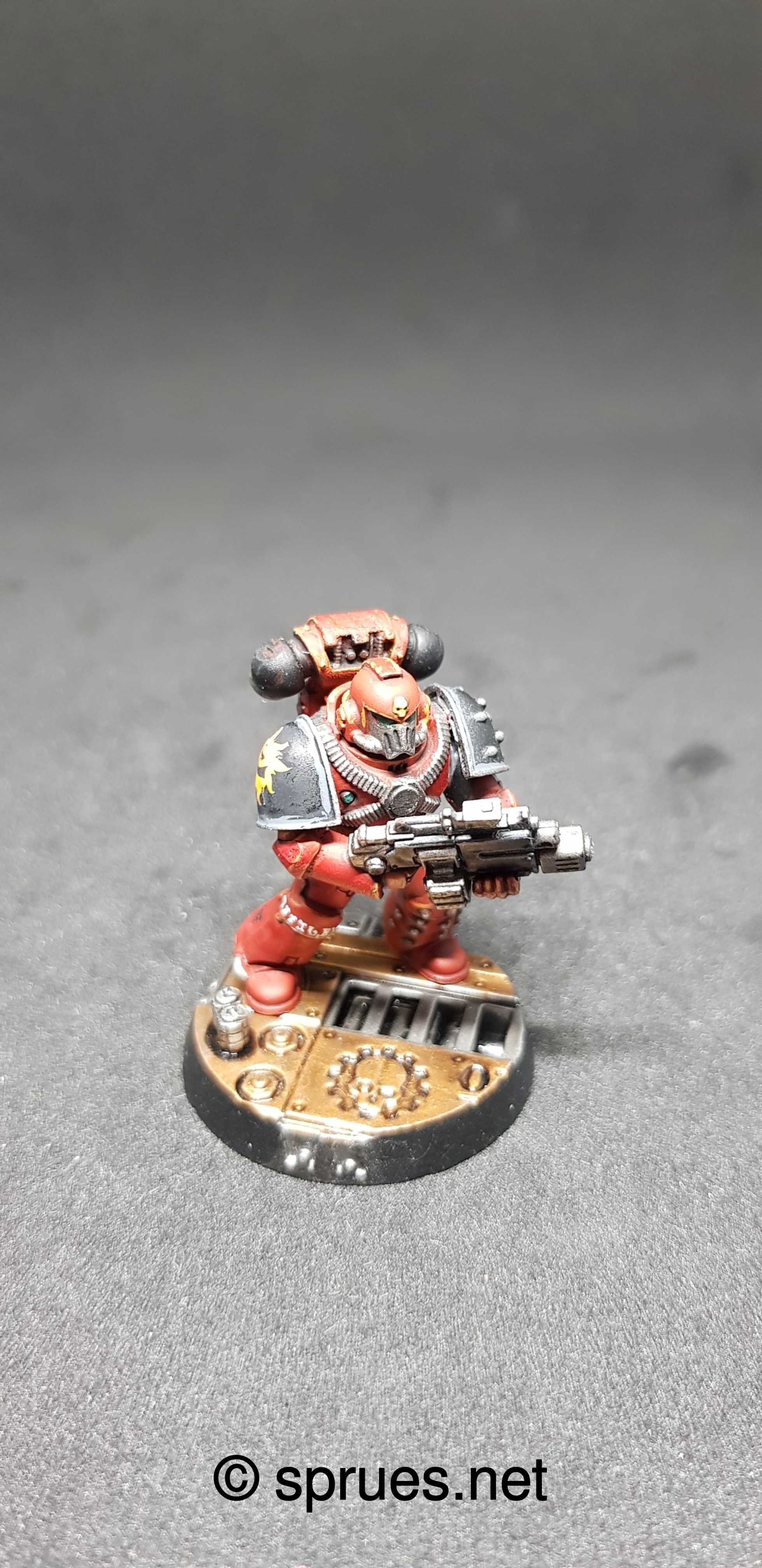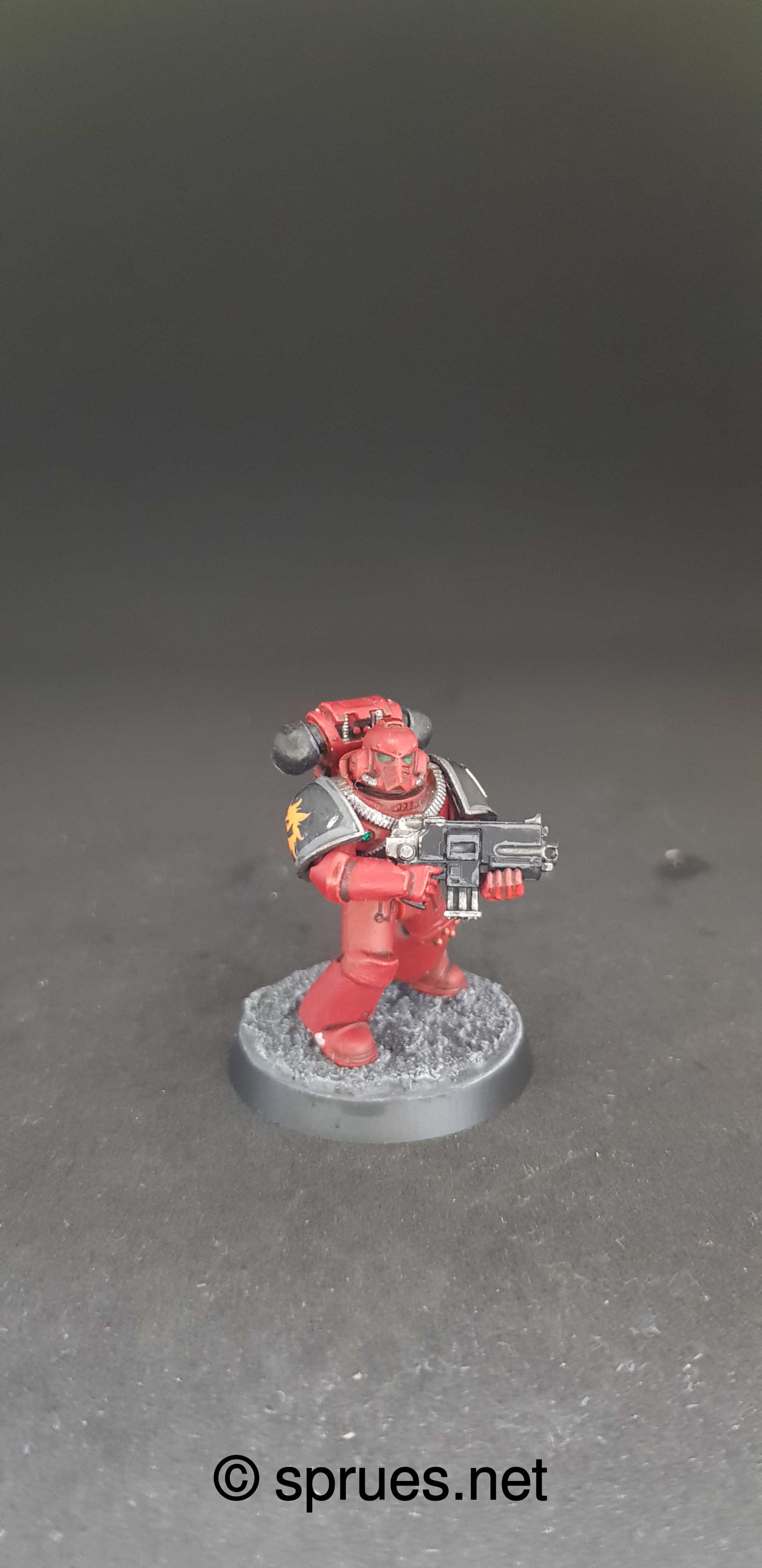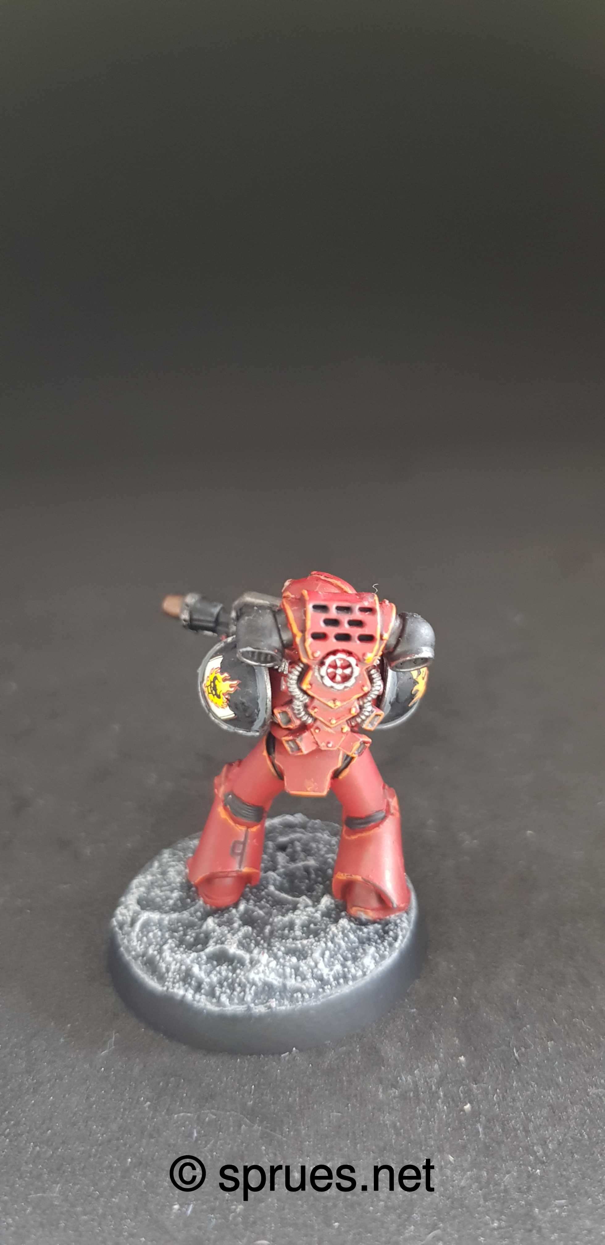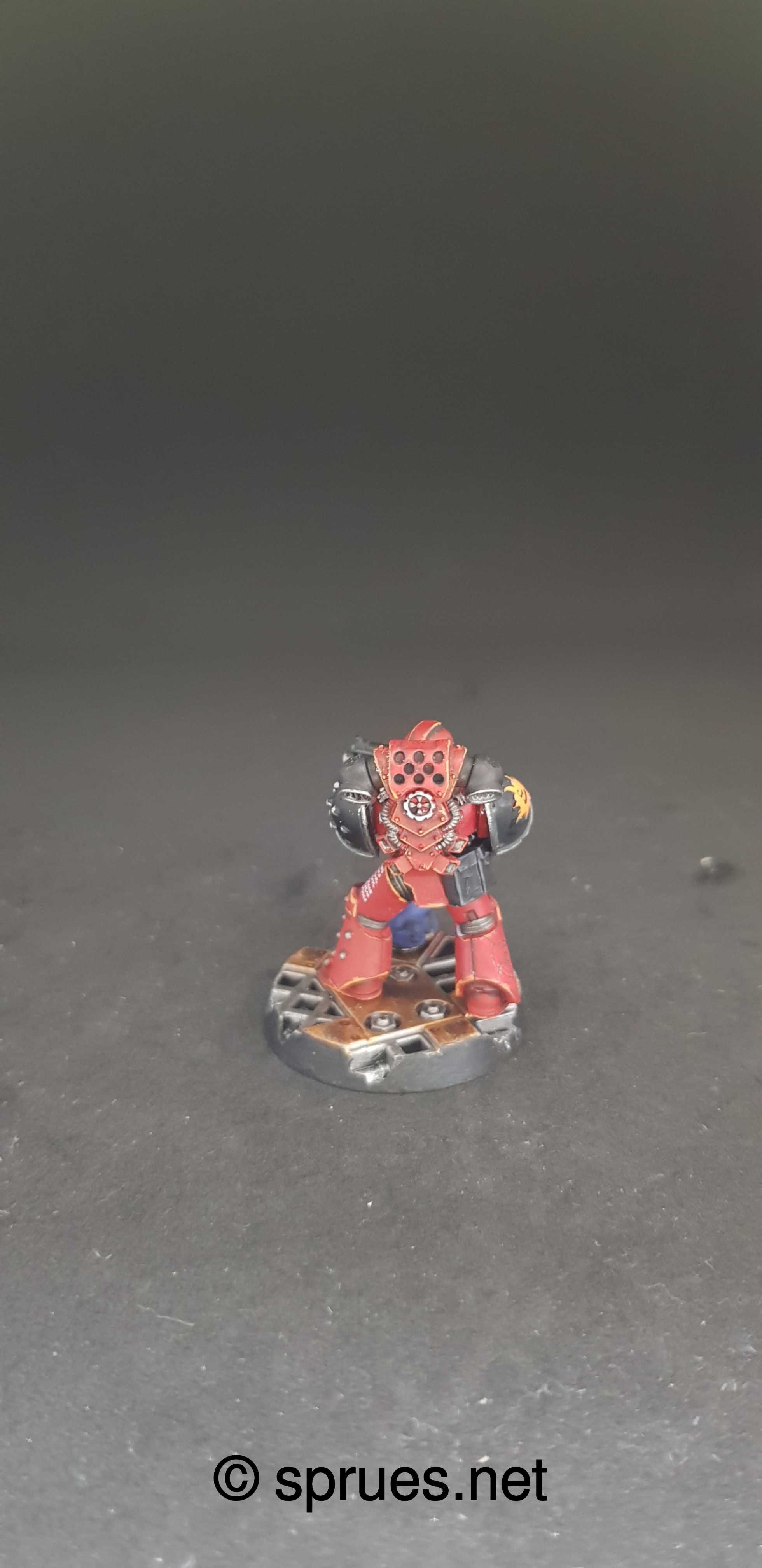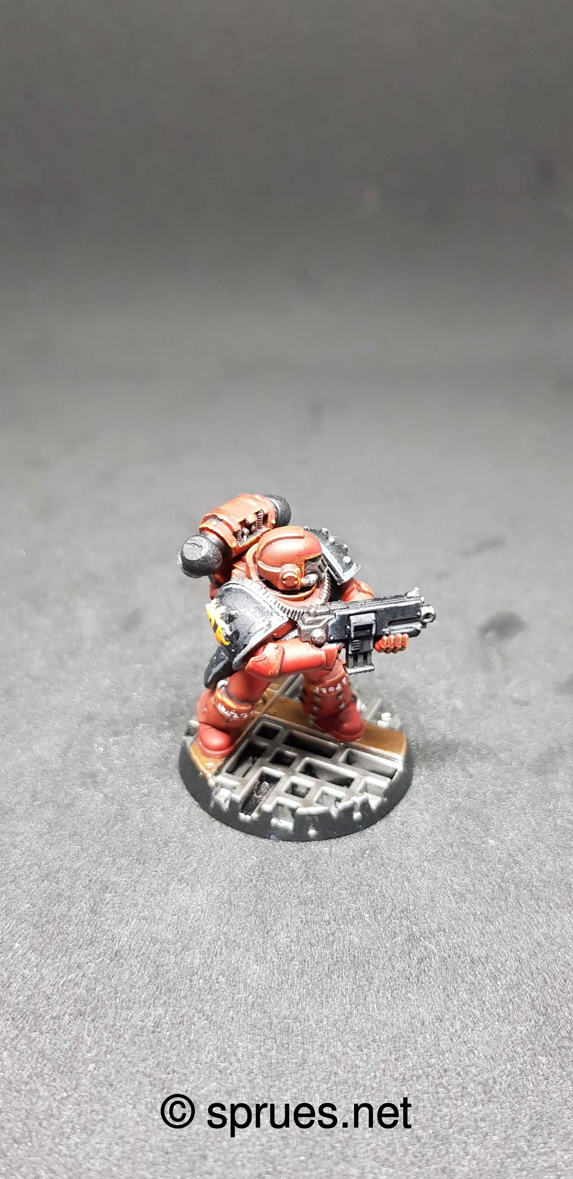 After Kurtha Seed's Legion Veteran Tatical Squad Rho I switch to Squad Sigma. They are really similar to Squad Rho, except from their bases. The basic idea, while Squad Rho is running for their lives on the surface of Calth, Squad Sigma displays a unit which already reach the underground. As they are seems to be more experienced, their armor is way more lettered with signs and scriptures. Also their left shoulder pads are altered with silver bolts. These bolts can also be seen on their legs.