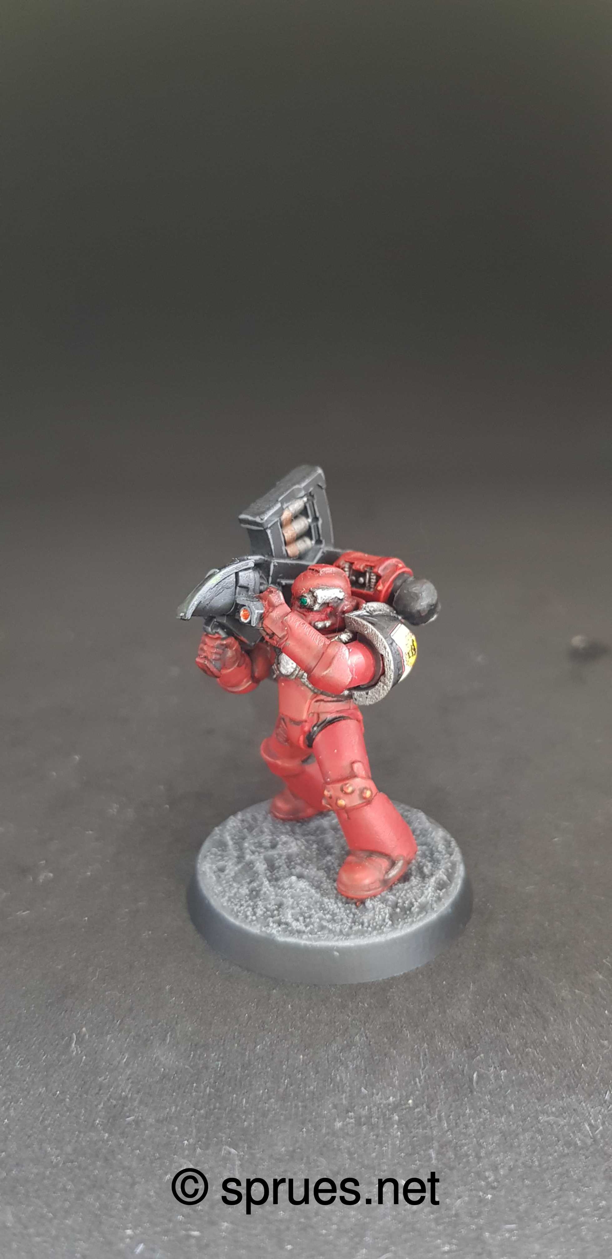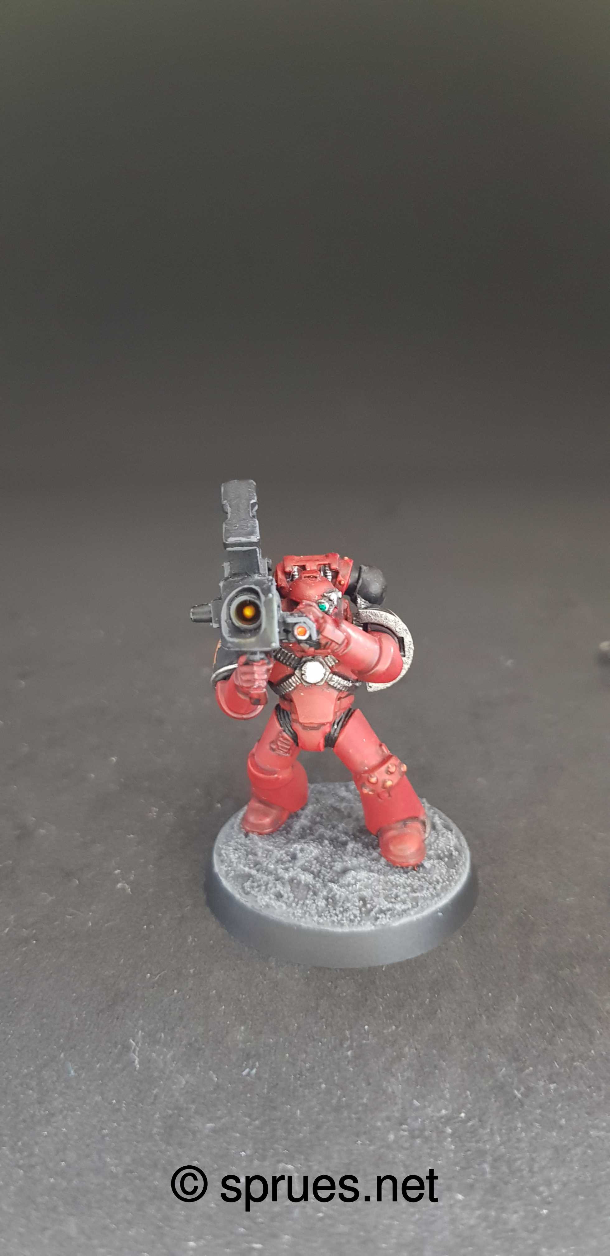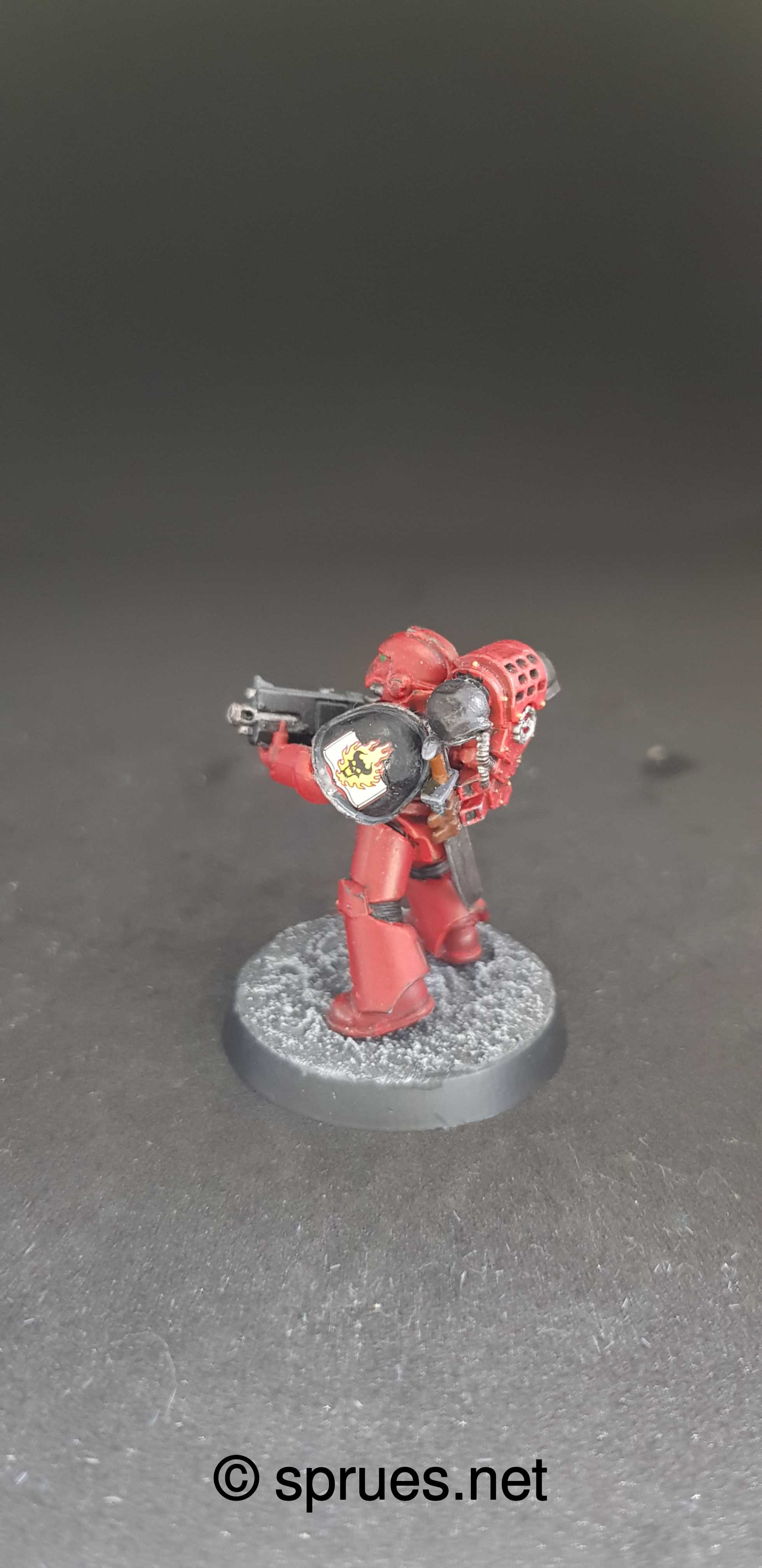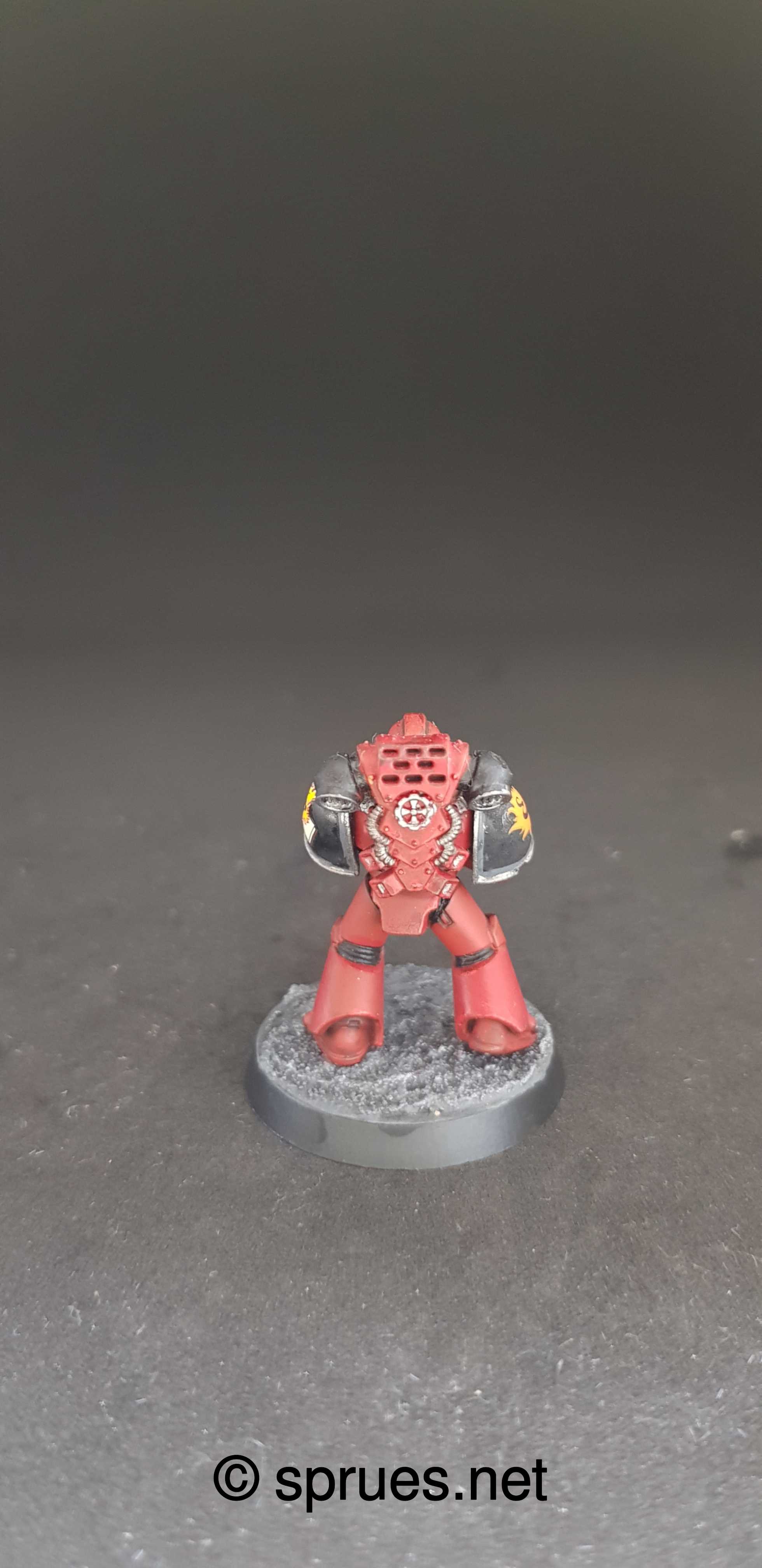 After Kurtha Seed's Legion Veteran Tatical Squad Rho I switch to Squad Sigma. They are really similar to Squad Rho, except from their bases. The basic idea, while Squad Rho is running for their lives on the surface of Calth, Squad Sigma displays a unit which already reach the underground. As they are seems to be more experienced, their armor is way more lettered with signs and scriptures. Also their left shoulder pads are altered with silver bolts. These bolts can also be seen on their legs.