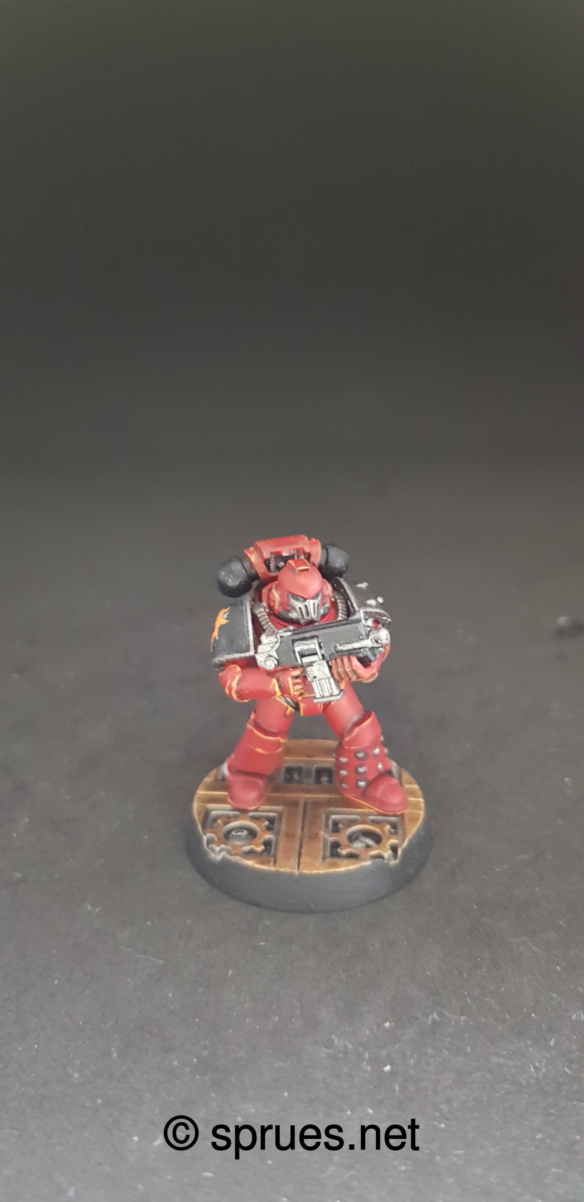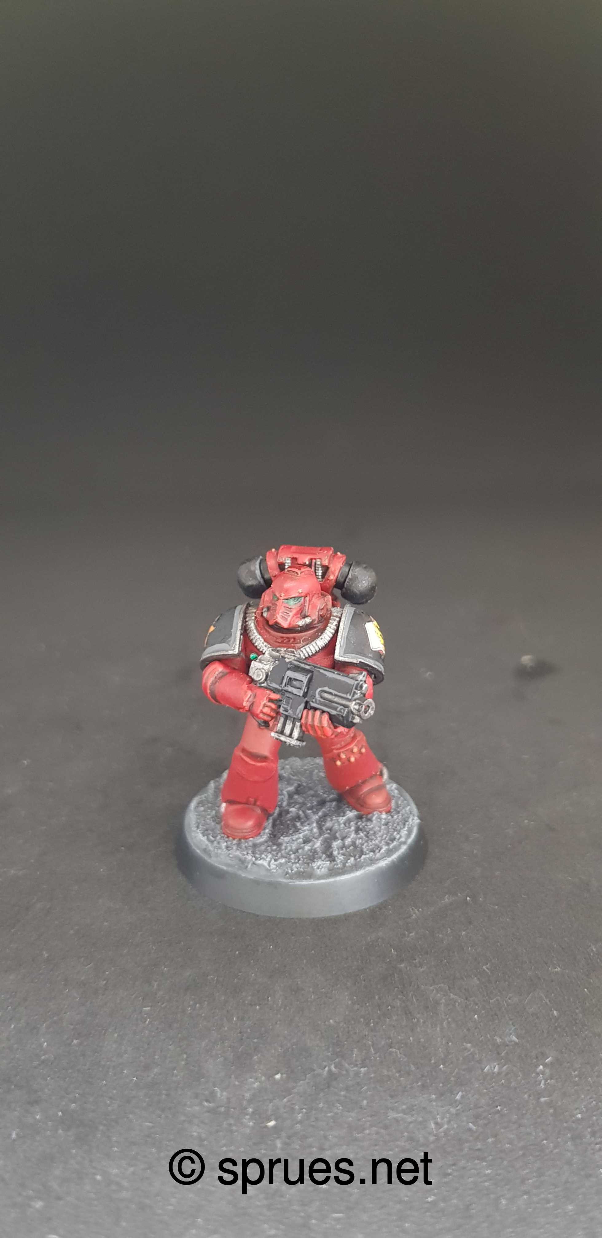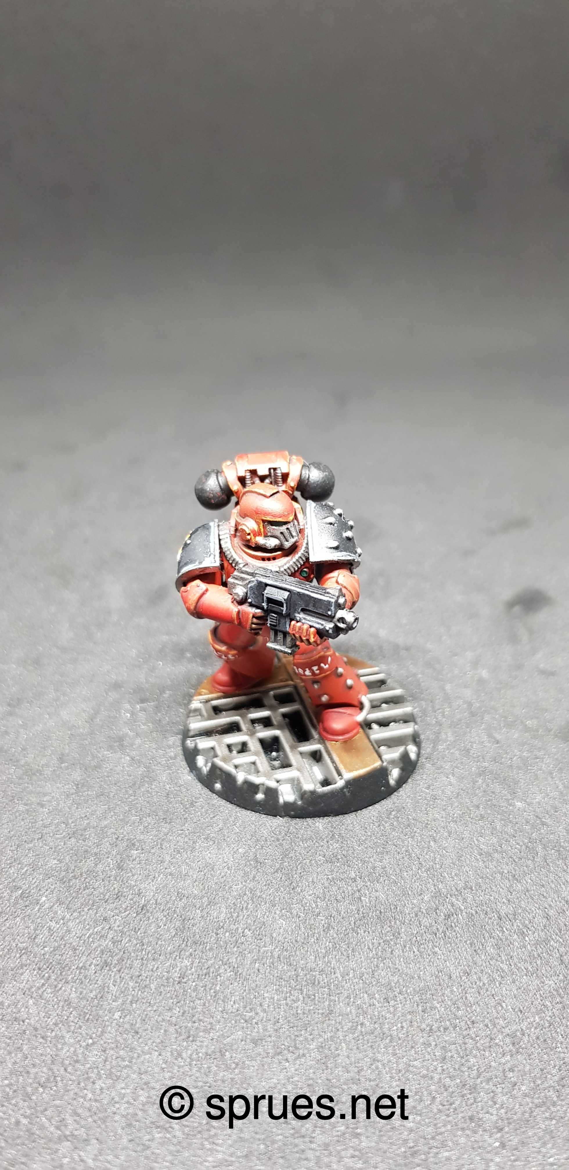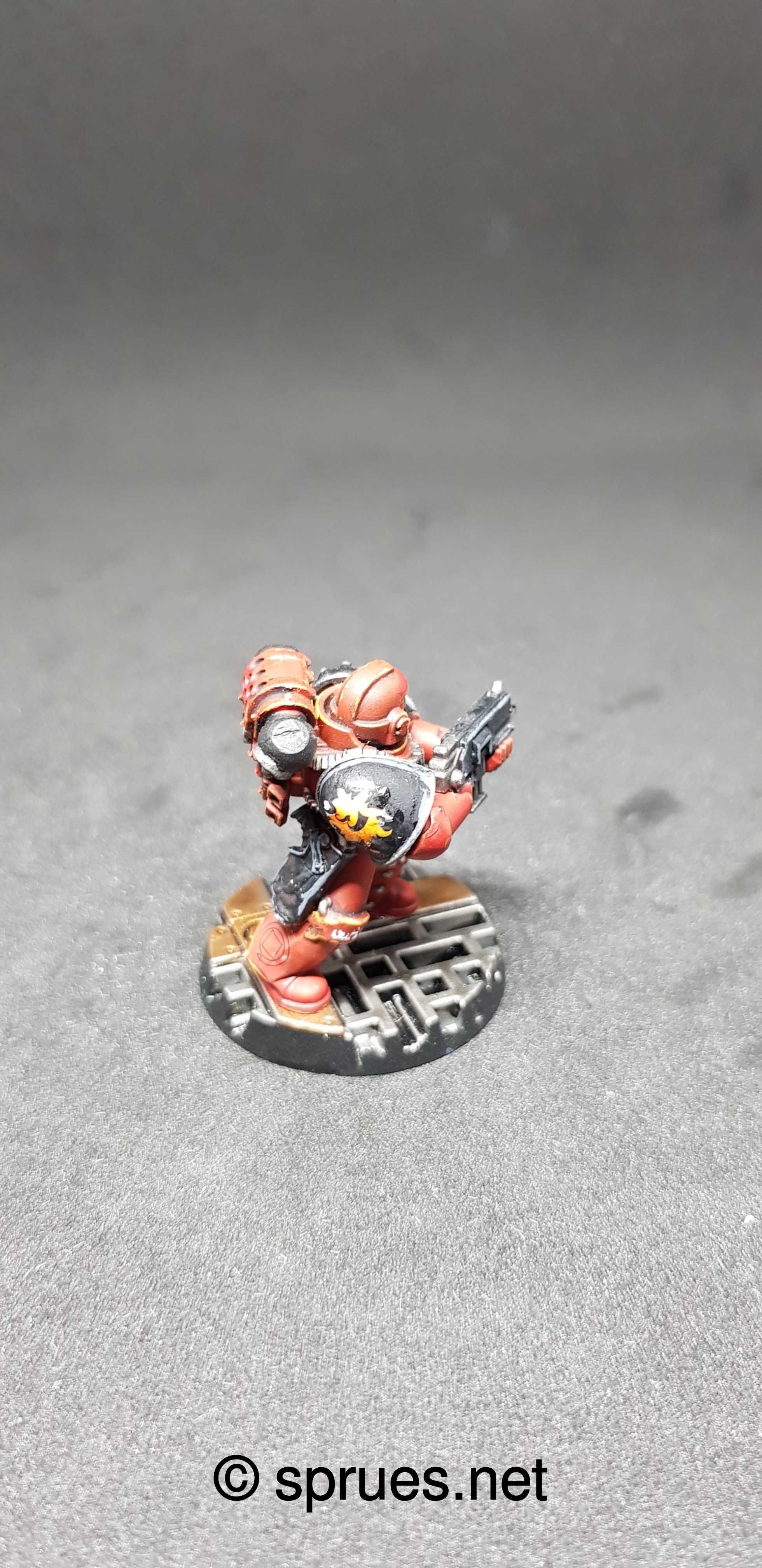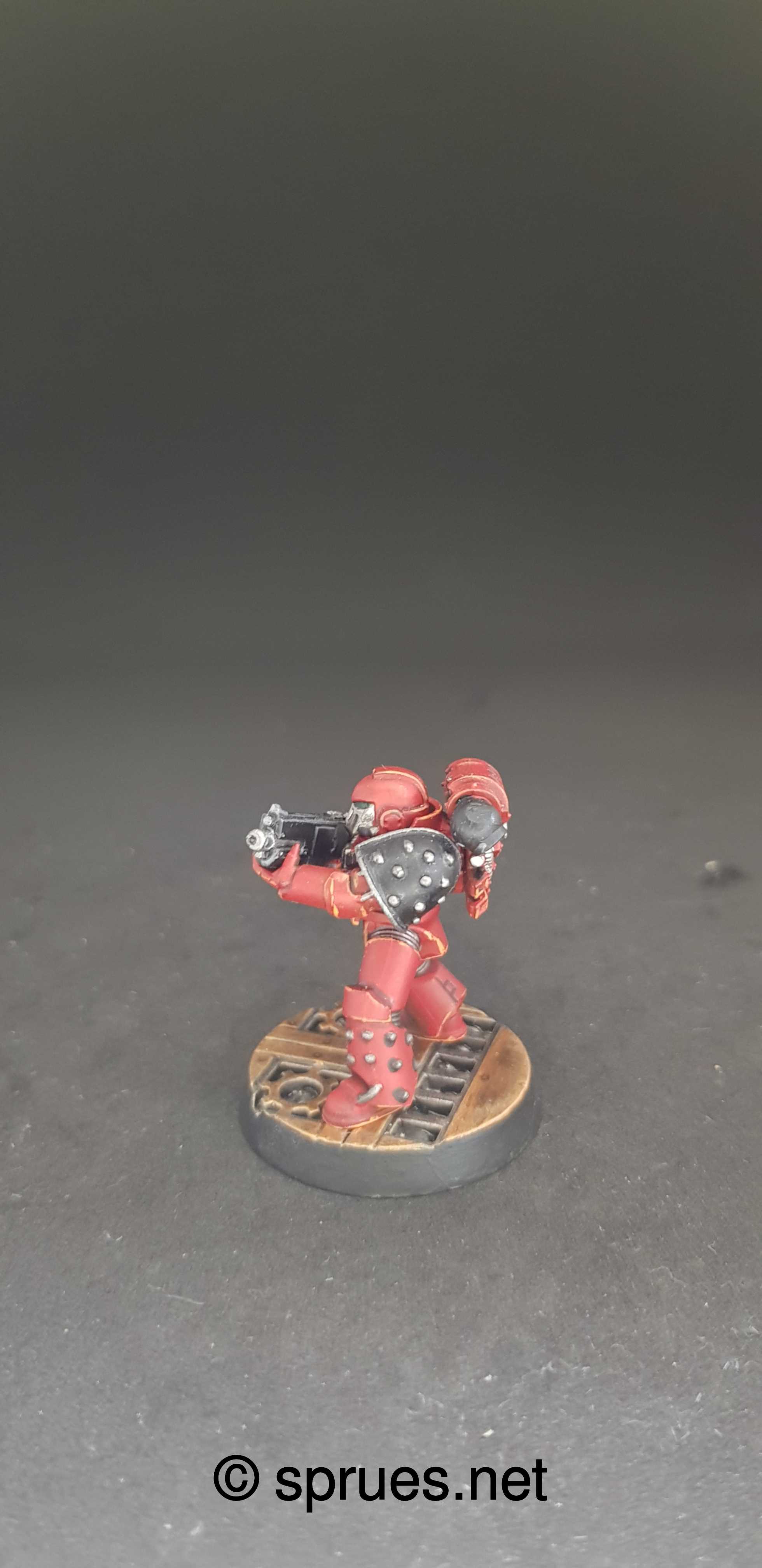 After Kurtha Seed's Legion Veteran Tatical Squad Rho I switch to Squad Sigma. They are really similar to Squad Rho, except from their bases. The basic idea, while Squad Rho is running for their lives on the surface of Calth, Squad Sigma displays a unit which already reach the underground. As they are seems to be more experienced, their armor is way more lettered with signs and scriptures. Also their left shoulder pads are altered with silver bolts. These bolts can also be seen on their legs.