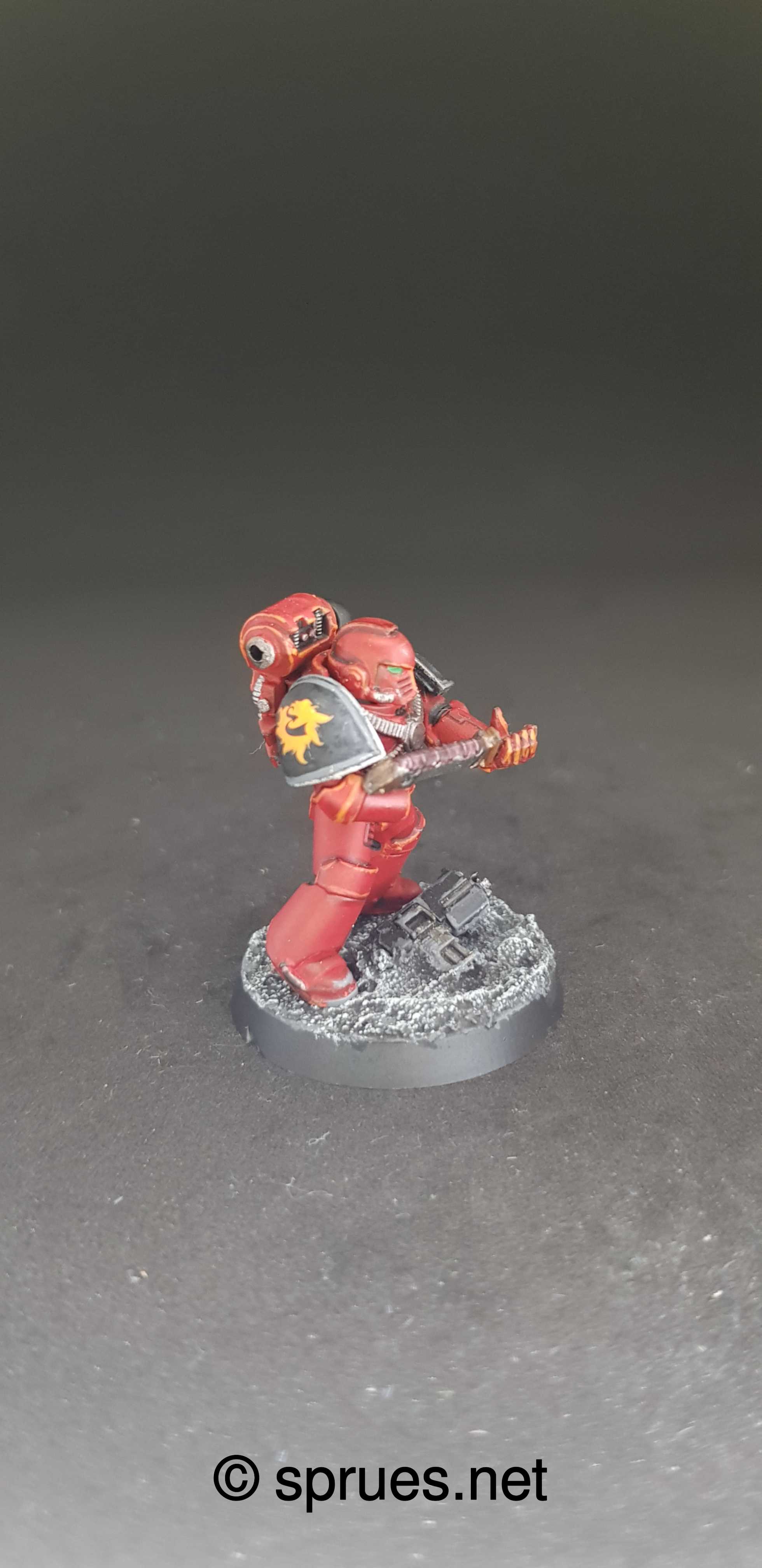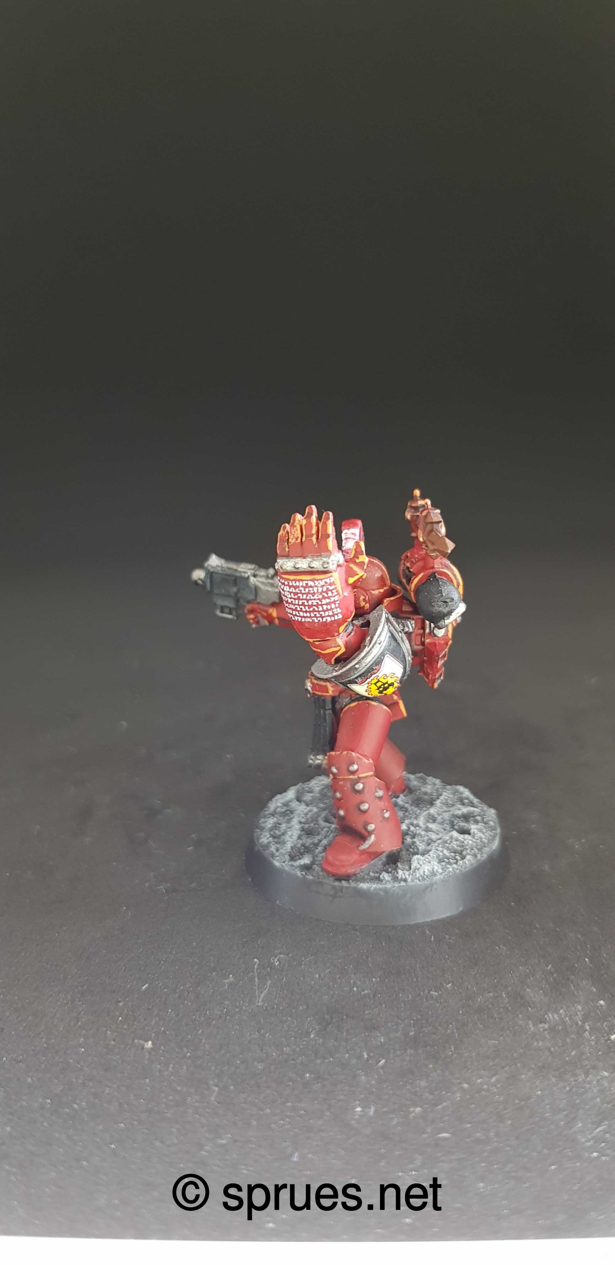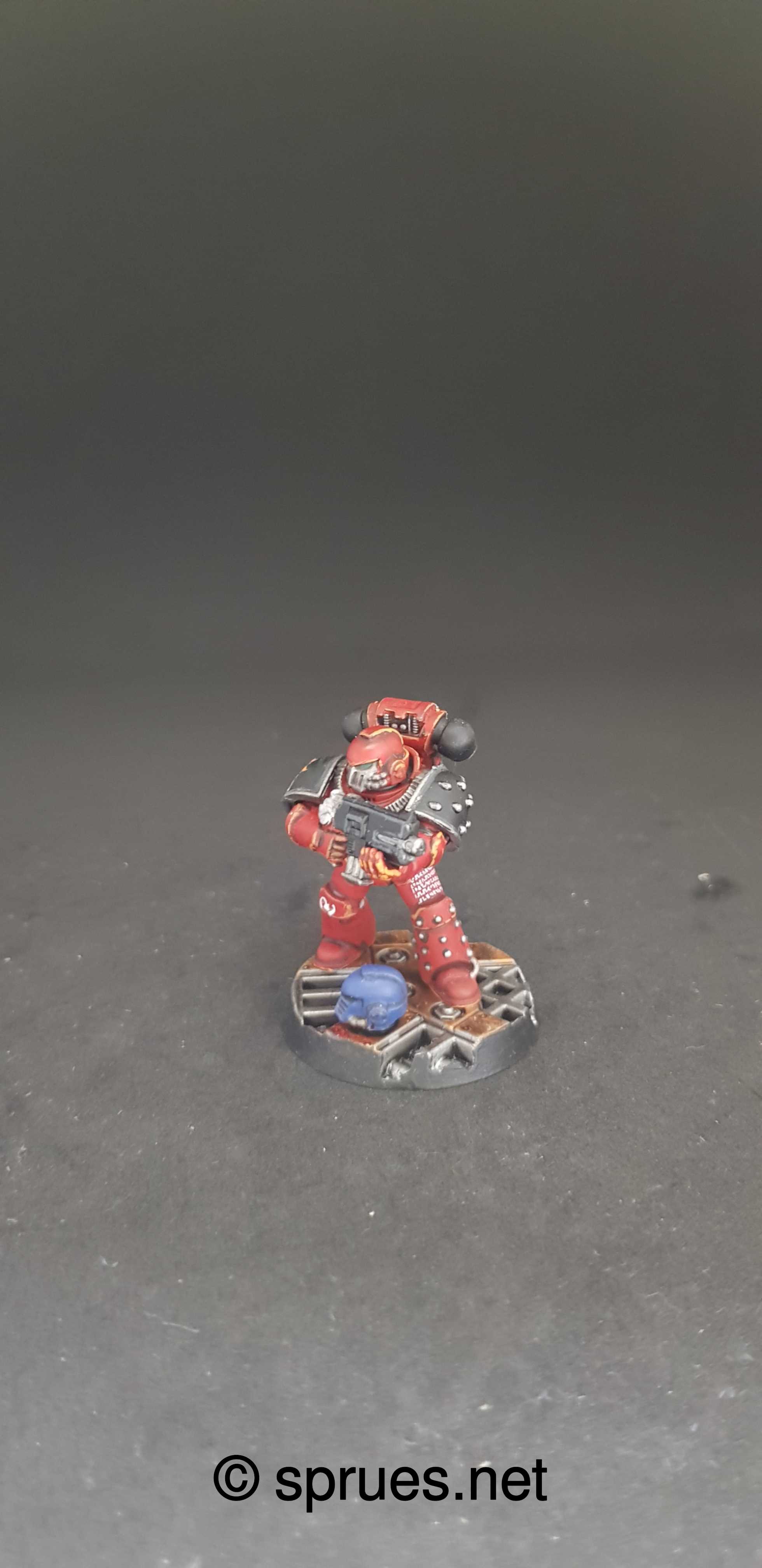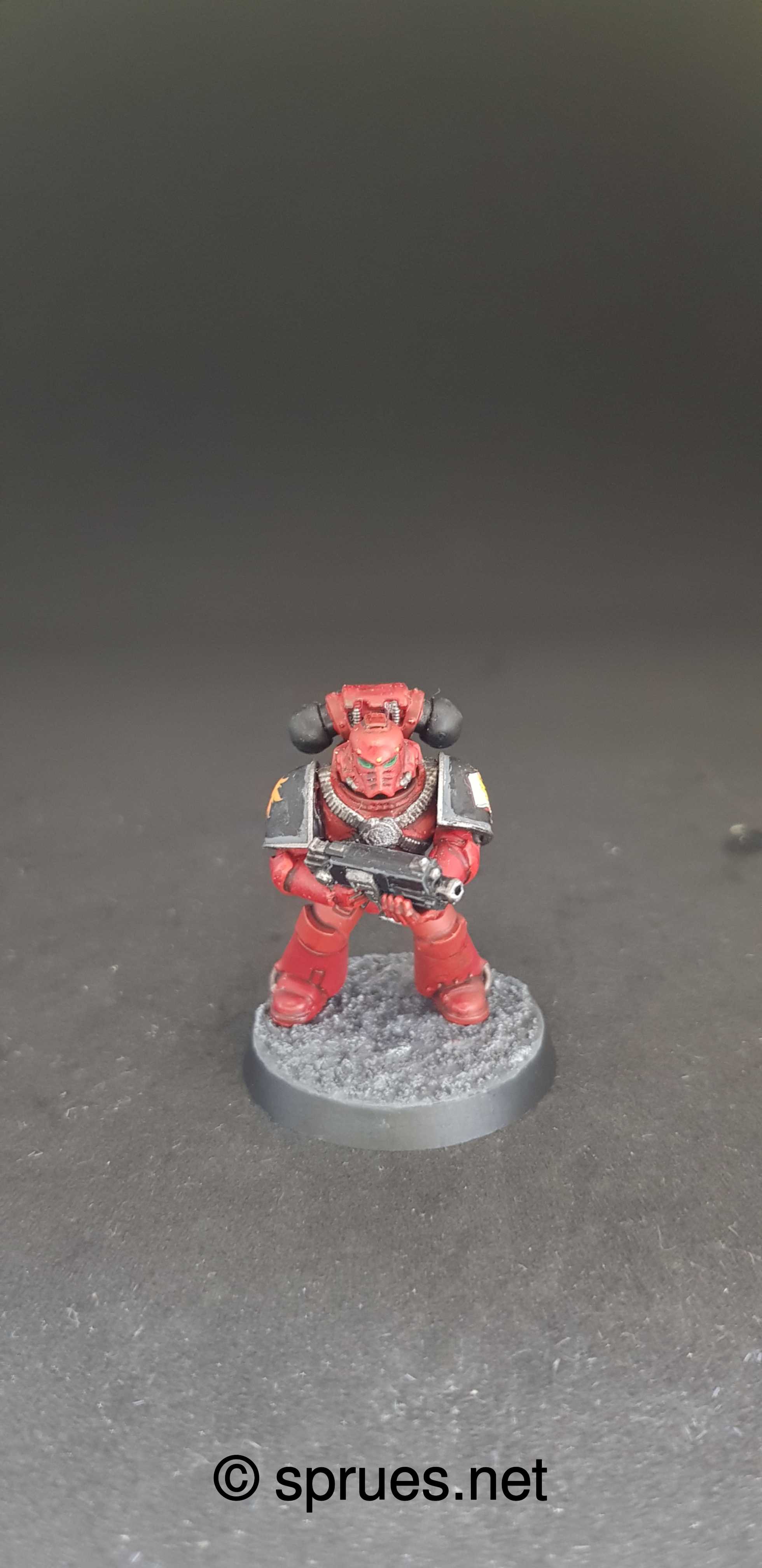 After Kurtha Seed's Legion Veteran Tatical Squad Rho I switch to Squad Sigma. They are really similar to Squad Rho, except from their bases. The basic idea, while Squad Rho is running for their lives on the surface of Calth, Squad Sigma displays a unit which already reach the underground. As they are seems to be more experienced, their armor is way more lettered with signs and scriptures. Also their left shoulder pads are altered with silver bolts. These bolts can also be seen on their legs.