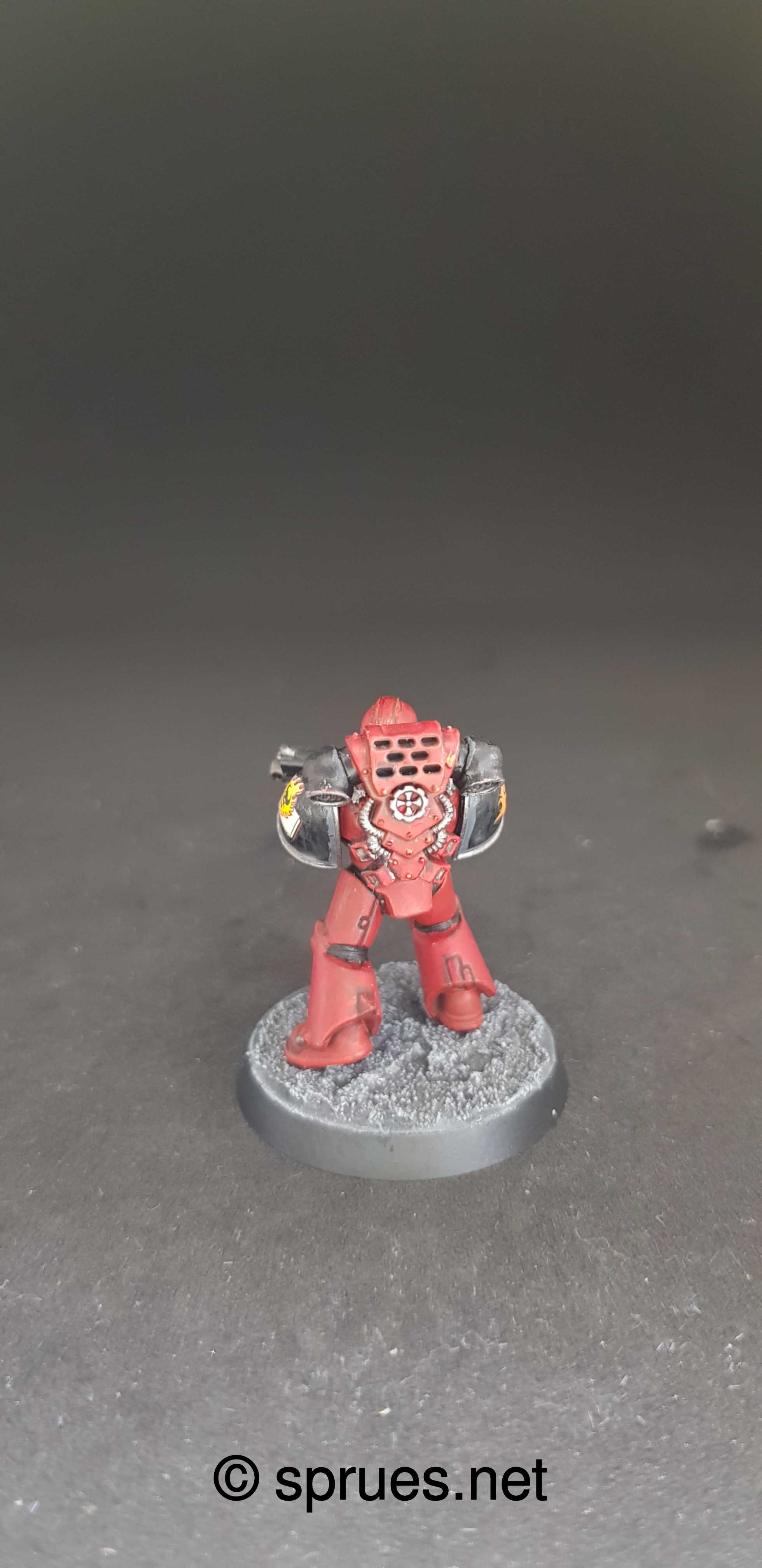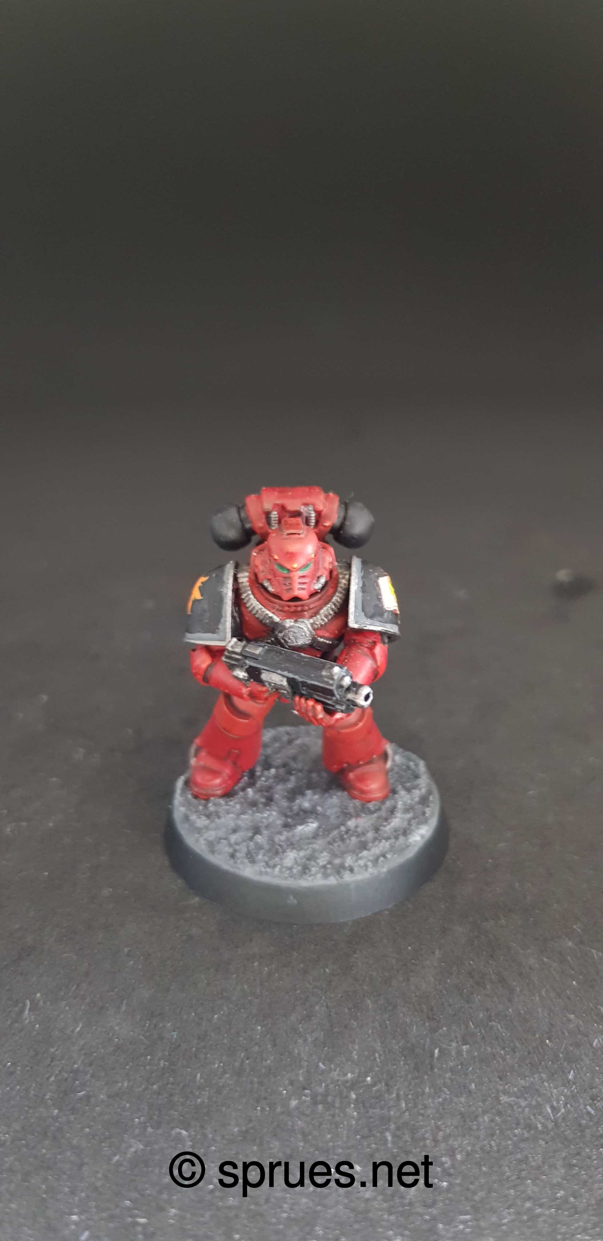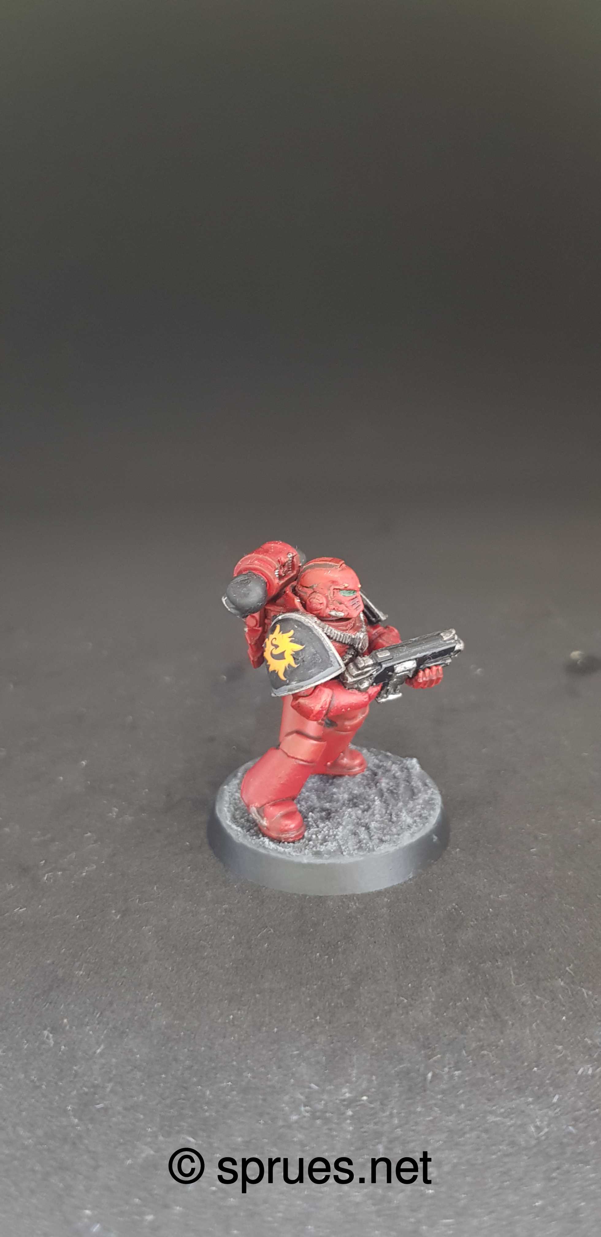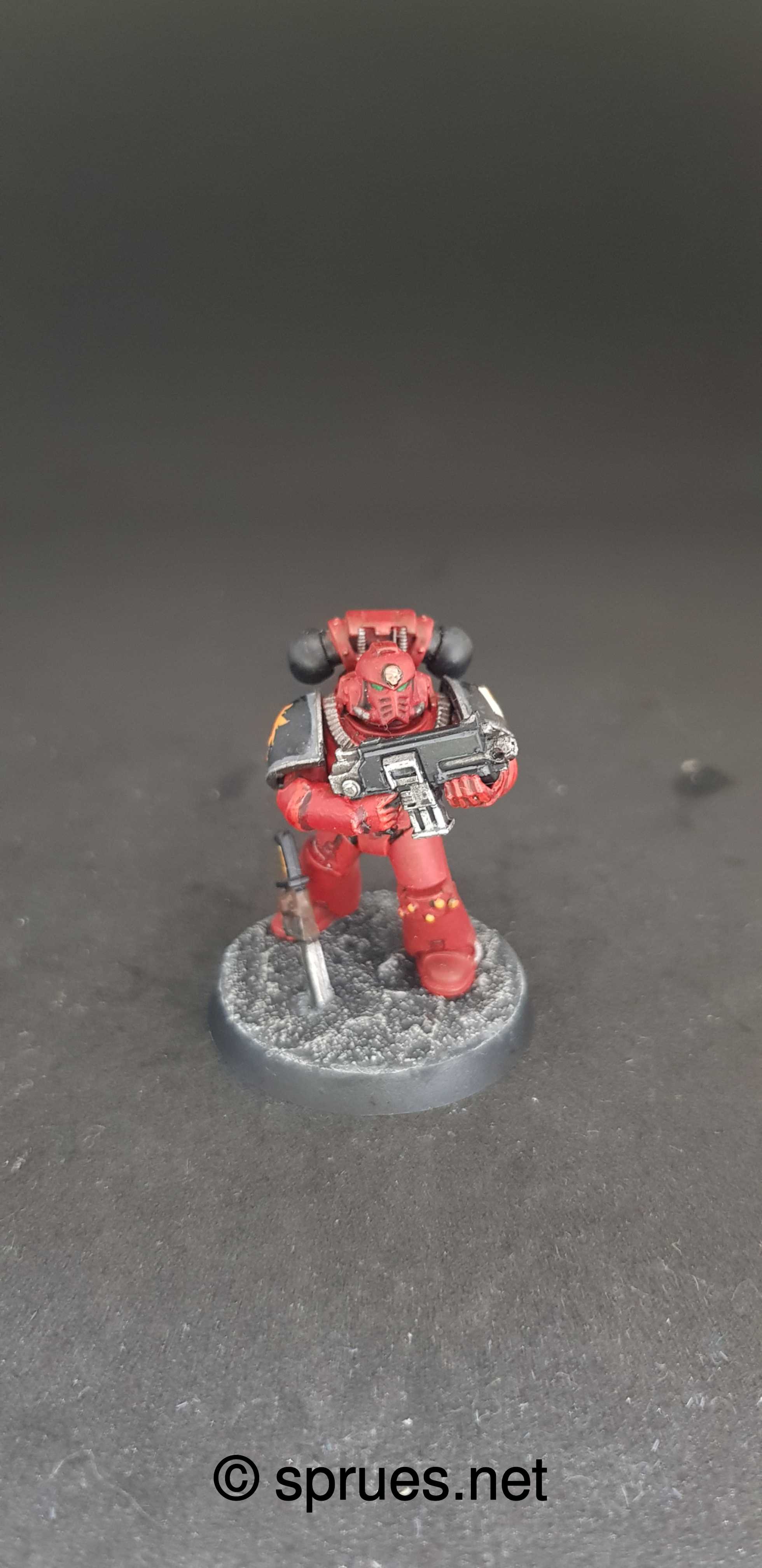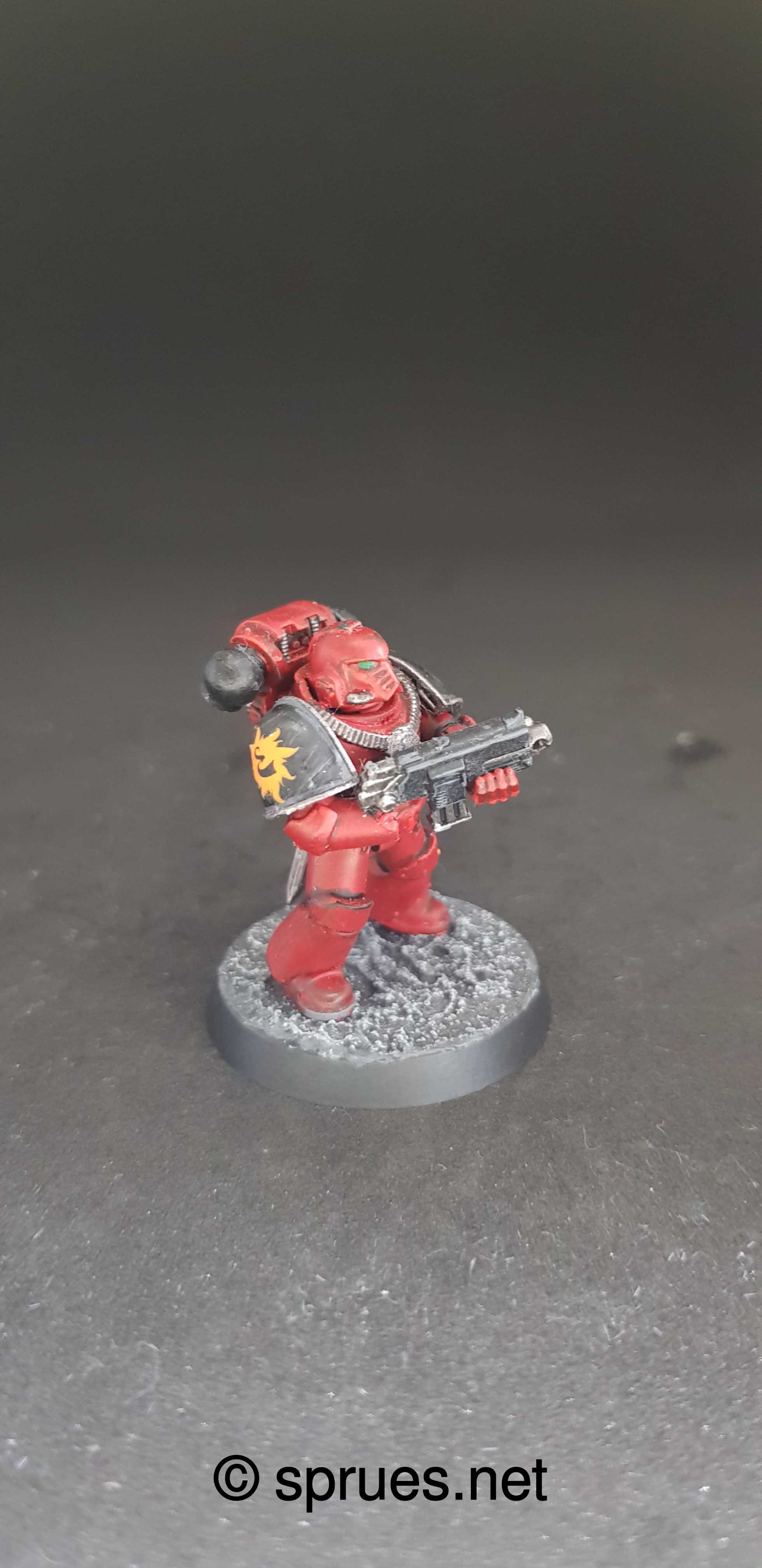 After Kurtha Seed's Legion Veteran Tatical Squad Rho I switch to Squad Sigma. They are really similar to Squad Rho, except from their bases. The basic idea, while Squad Rho is running for their lives on the surface of Calth, Squad Sigma displays a unit which already reach the underground. As they are seems to be more experienced, their armor is way more lettered with signs and scriptures. Also their left shoulder pads are altered with silver bolts. These bolts can also be seen on their legs.