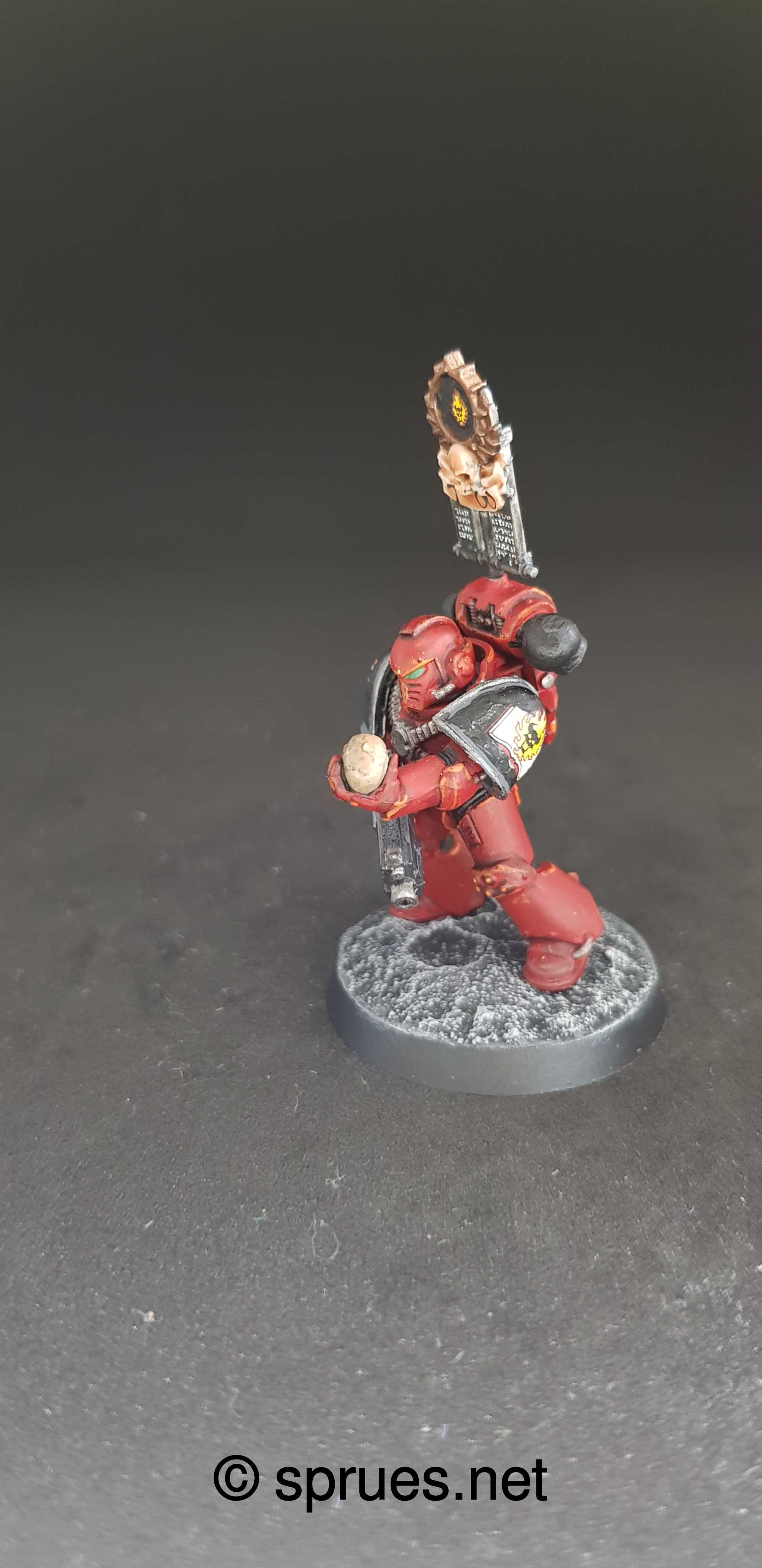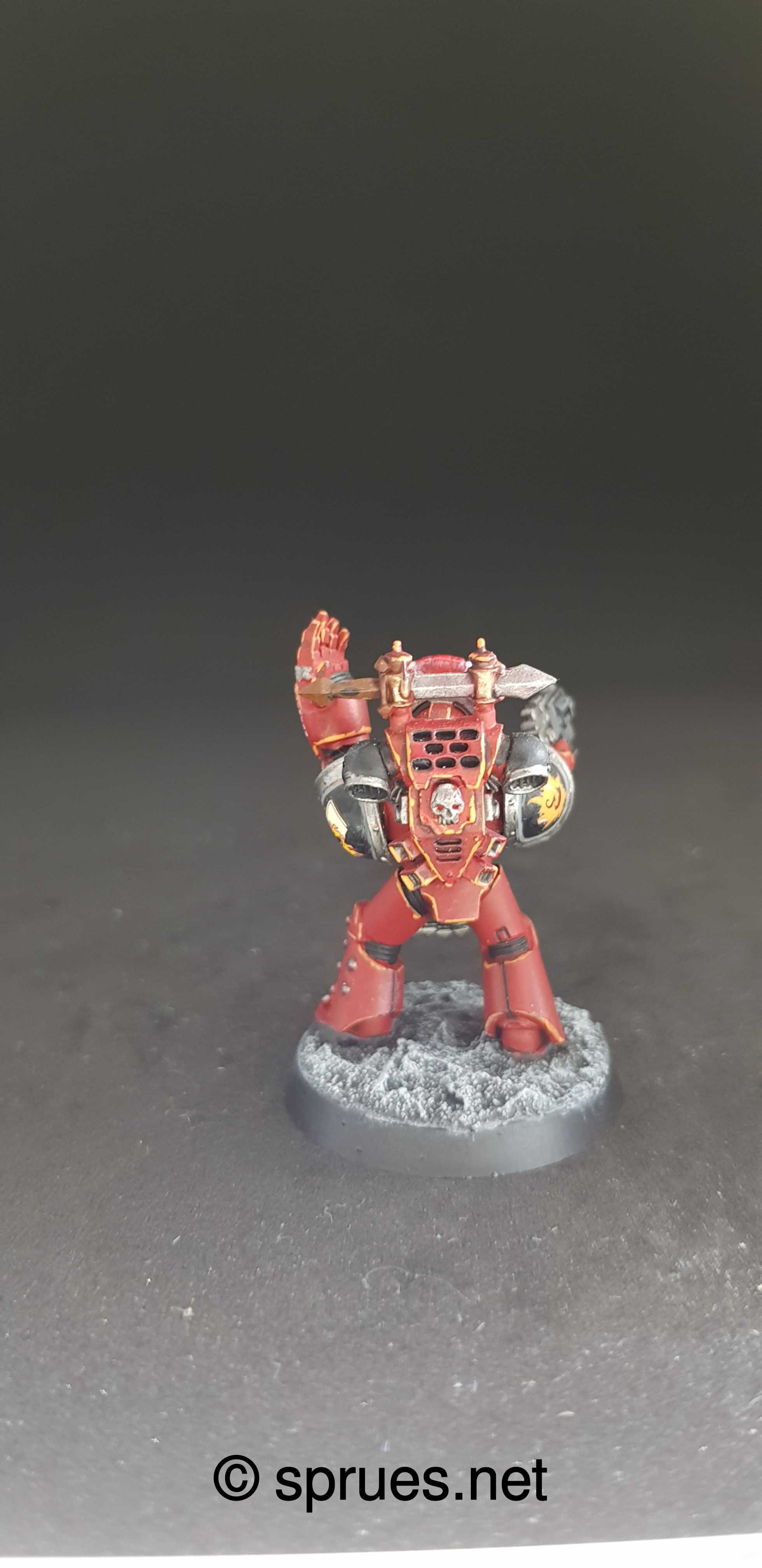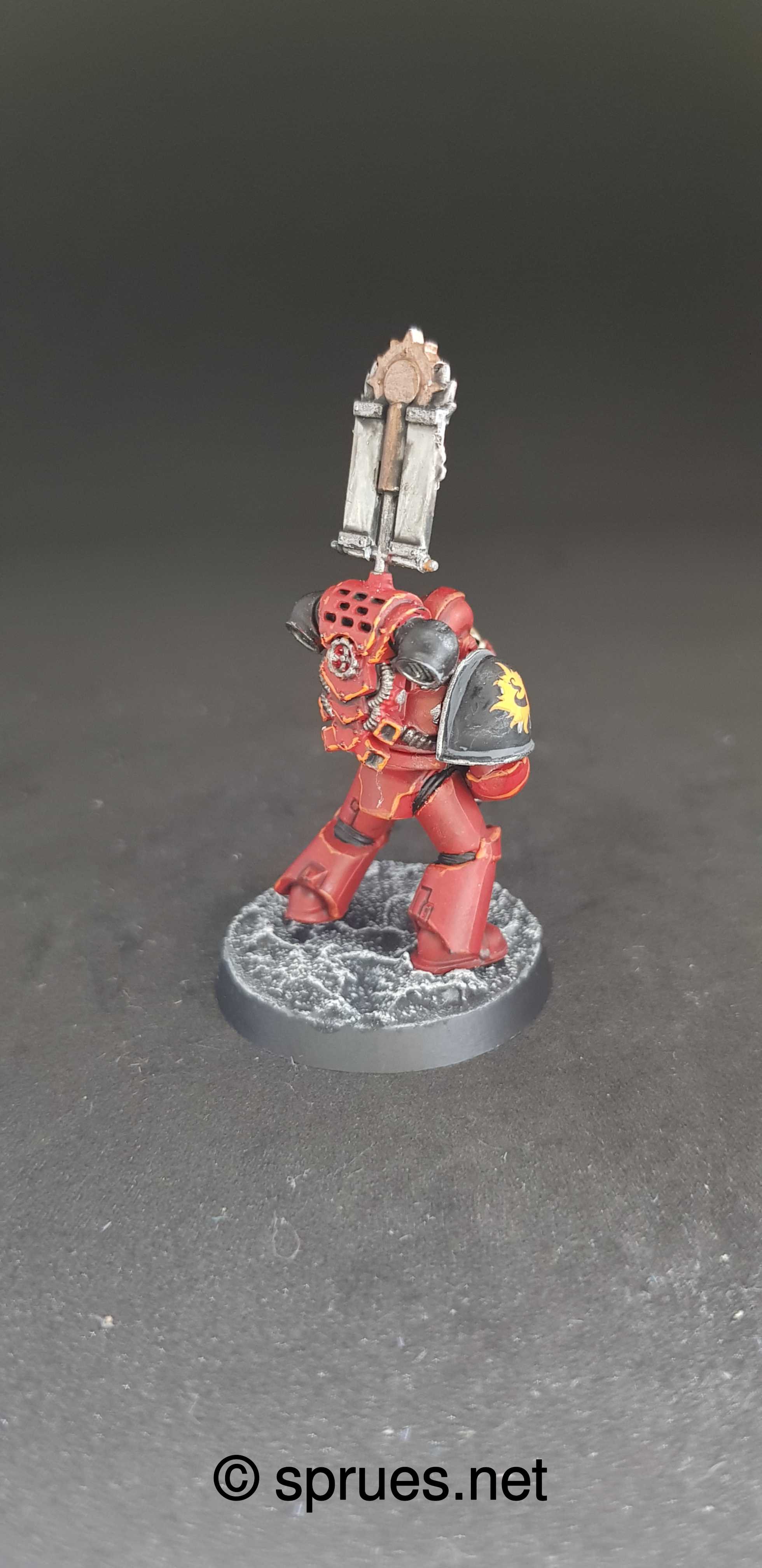 Kurtha Seed's Legion Veteran Tatical Squad Rho consists out of ten Tactical Marines. It takes some time until every marine was completely painted. Armory was chosen depending on the Betral at Calth rules, so seven Marines carry a bolter. While the remaining Members taken a melter, rocket launcher and power fist. The Sergeant carriers a lettered power fist and a bolt pistol. His backpack were taken from some #DarkAngels sprue. Furthermore take a look at the banner bearer, with his lowered bolter and fascinated field of vision. Maybe you already notice the marine equipped with rocket launcher and eye lenses. As there are Word Bearers who served the dark Gods, even a more cultism marine who already sacrifice his hand is there.